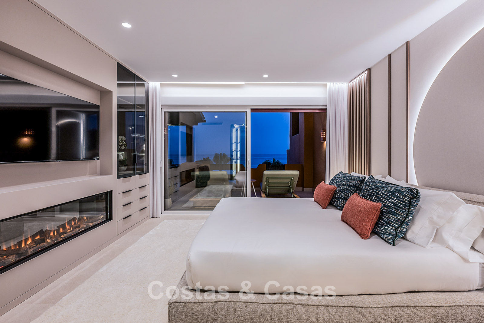 Autres caractéristiques : Climatisation pour le refroidissement et le chauffage. 2 cheminées électriques. Système audio Bang & Olufsen. Meubles encastrés sur mesure. Éclairage LED.