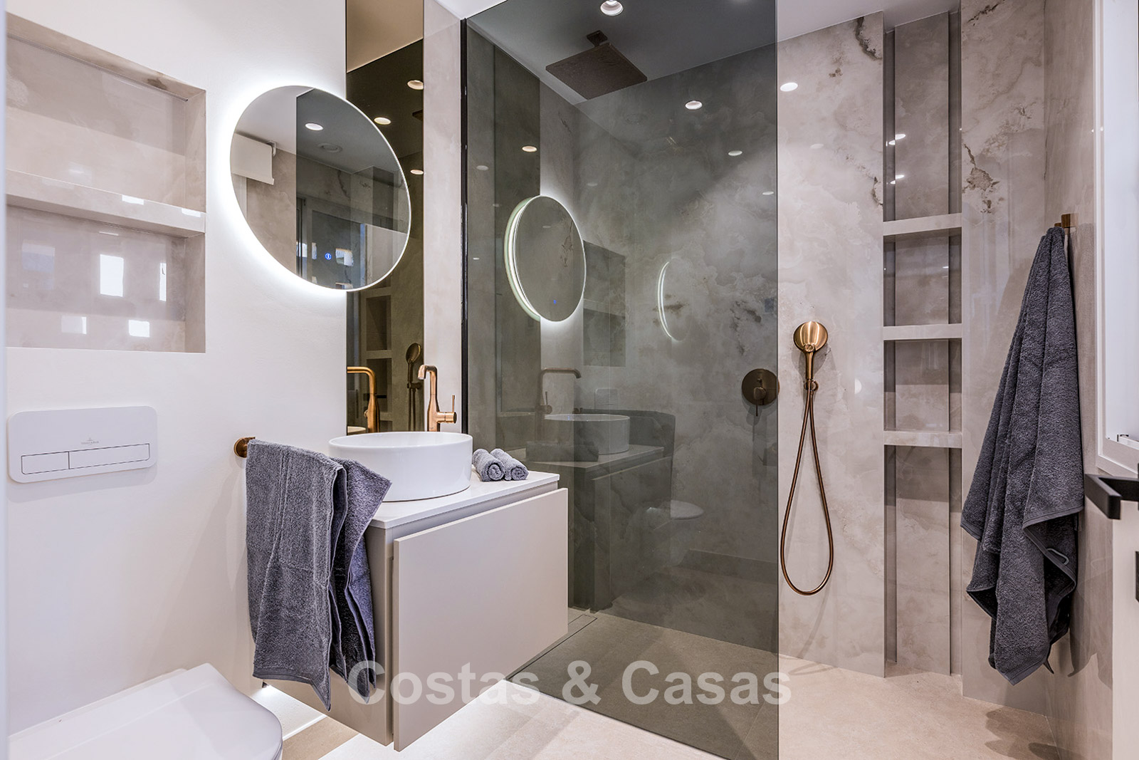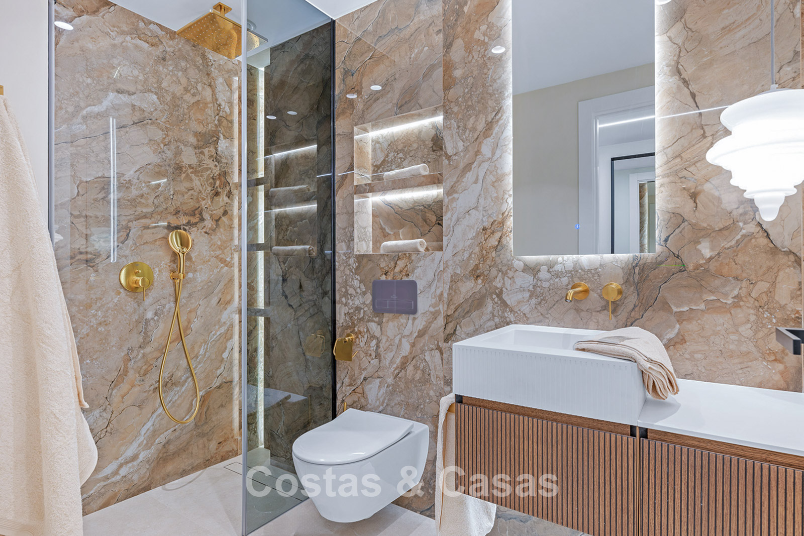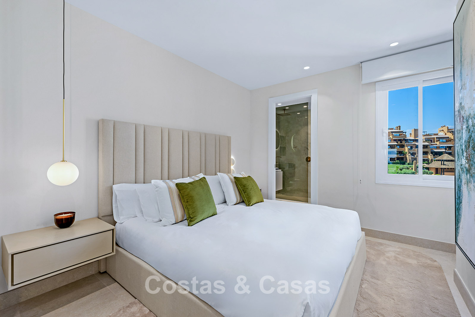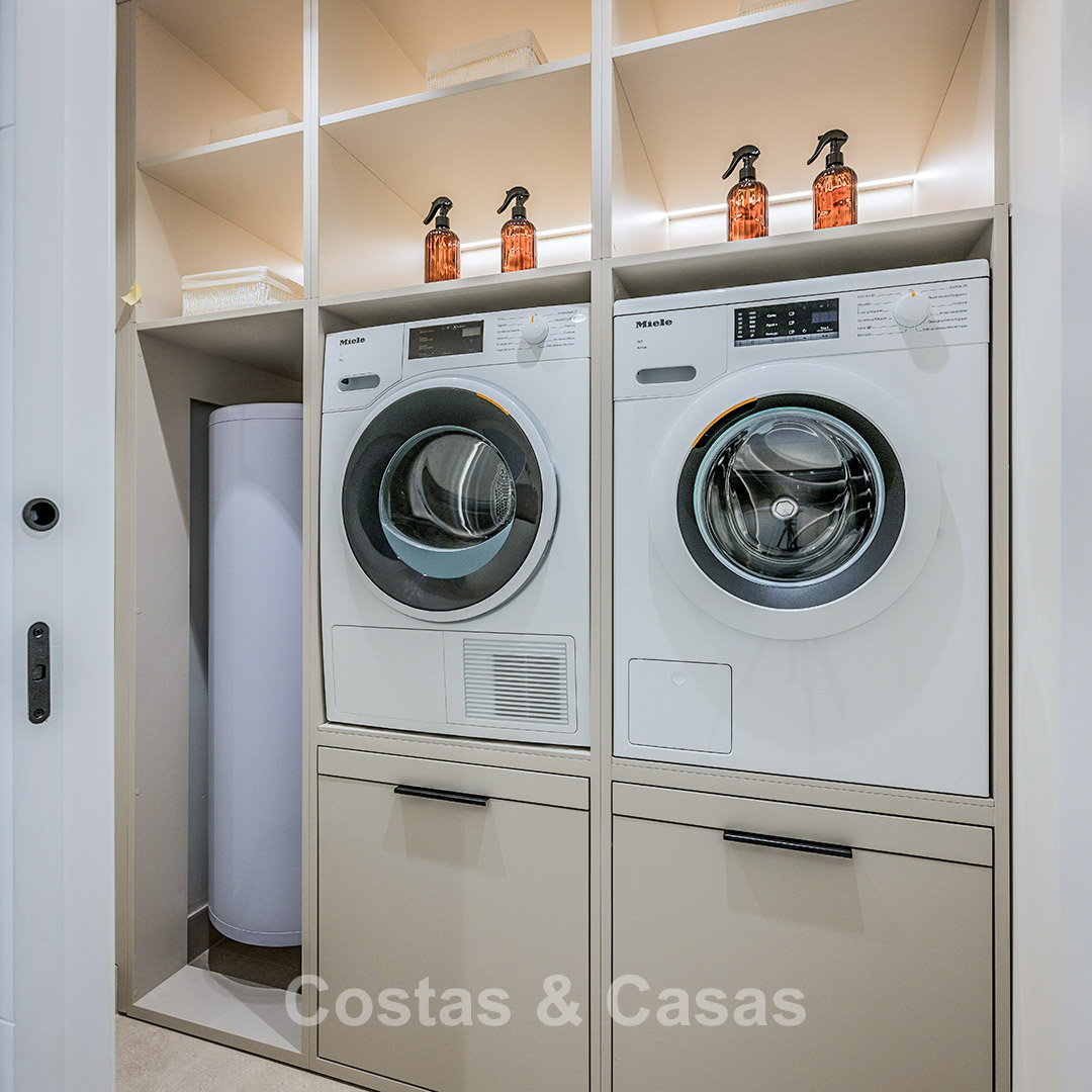 Situé dans une résidence haut de gamme en bord de mer, sur le très convoité New Golden Mile, un emplacement privilégié alliant tranquillité et accessibilité. À quelques minutes à pied ou à vélo, vous trouverez le centre commercial rénové Laguna avec son club de plage et le centre animé d'Estepona, où vous pourrez profiter de l'atmosphère authentique et du charme local. Depuis le complexe, vous accédez directement à la plage. À proximité immédiate, vous trouverez toutes les commodités imaginables : des écoles internationales aux boutiques en passant par les restaurants gastronomiques, tout est à portée de main. Les amateurs de golf trouveront un large choix de clubs de golf renommés à proximité. San Pedro et l'emblématique Puerto Banús sont également facilement accessibles en voiture, à seulement quinze minutes. La résidence offre un cadre de vie serein et luxueux avec de vastes jardins méditerranéens et de nombreux équipements. Parmi ceux-ci, un élégant restaurant, une piscine intérieure chauffée, deux grandes piscines extérieures, une salle de sport entièrement équipée, un espace bien-être avec sauna, hammam et jacuzzi, ainsi qu'un service de sécurité 24h/7 pour une tranquillité d'esprit optimale.