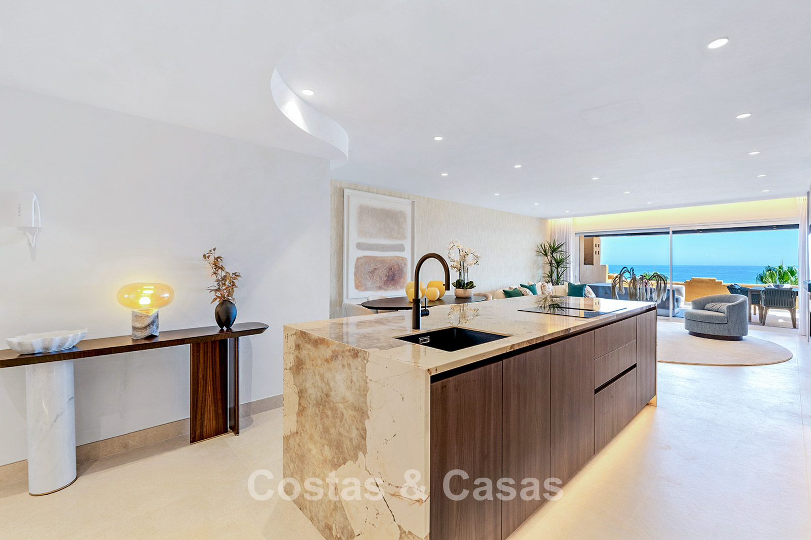 Complexe en bord de mer avec accès exclusif à la plage et à la promenade.