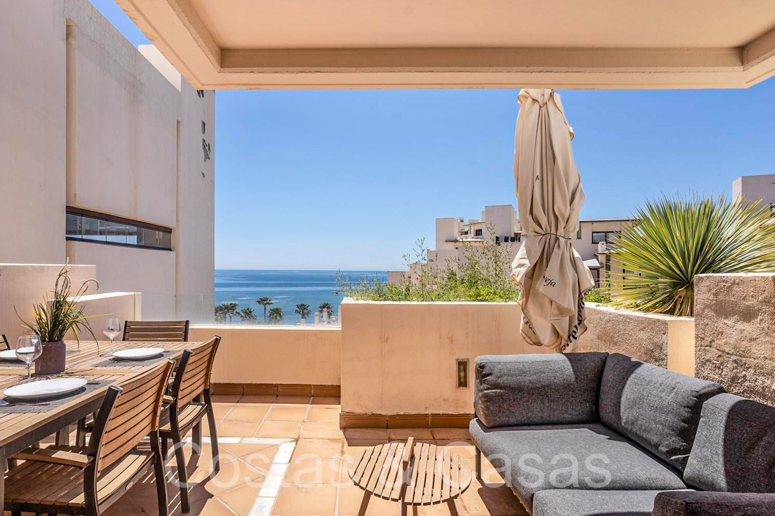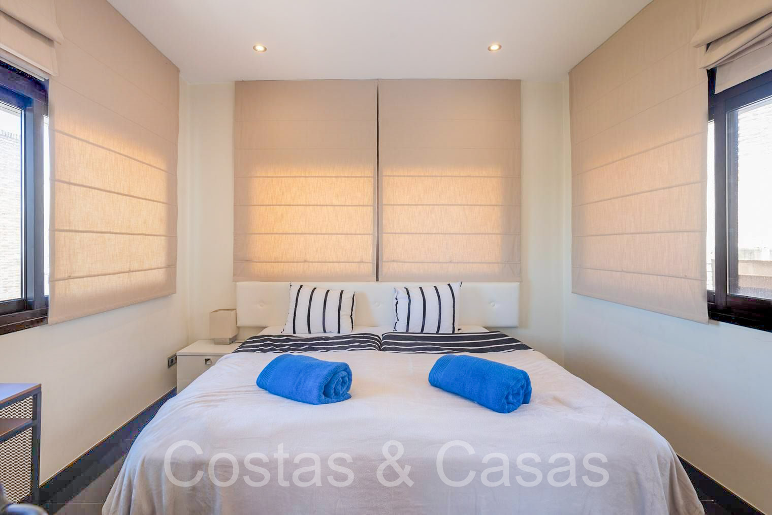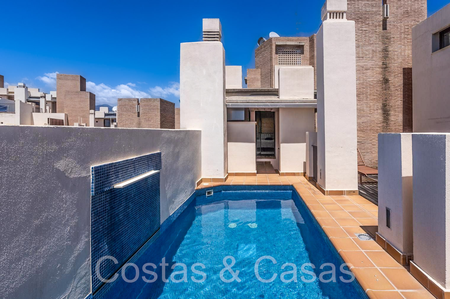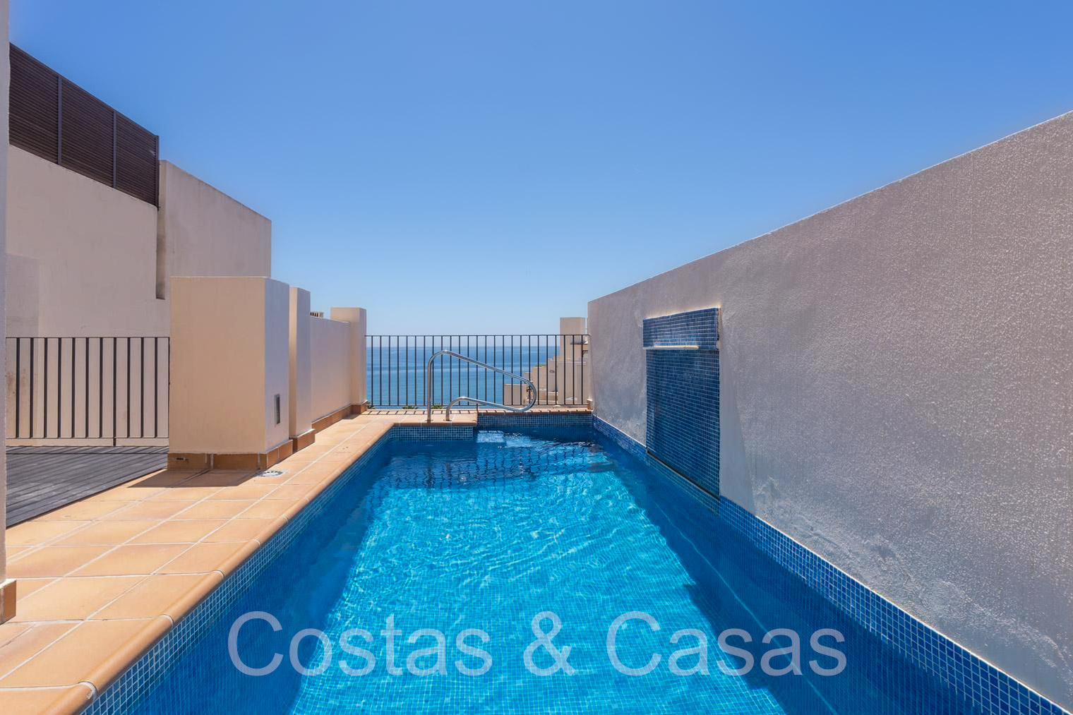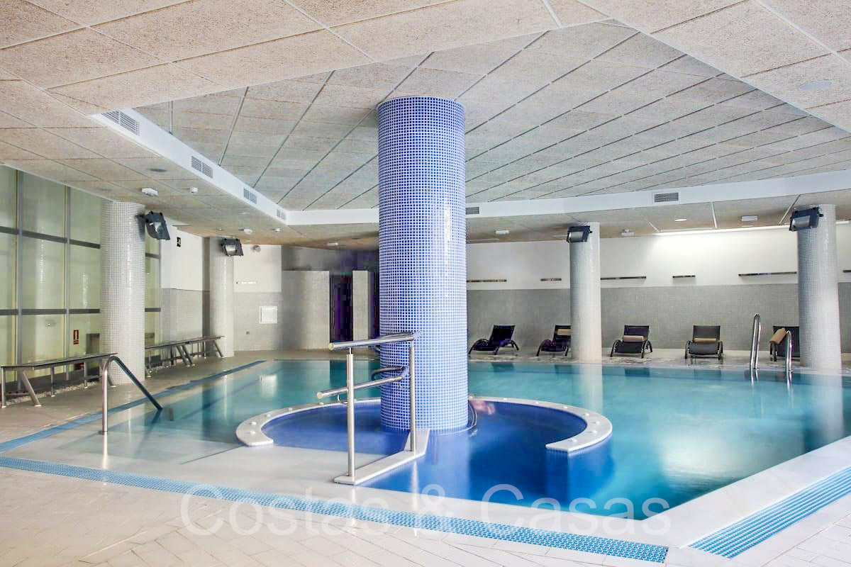 Penthouse en duplex spacieux sur 2 étages. Utilisation de matériaux et de finitions de qualité. Au dernier étage, vous pourrez profiter d'une terrasse ensoleillée et d'une piscine privée intégrée. Les hautes fenêtres coulissantes génèrent beaucoup de lumière naturelle et donnent sur les terrasses. Exposition sud avec vue sur la mer. Séjour confortable avec salon TV et accès direct à la terrasse principale. Cuisine pratiquement équipée avec une fenêtre ouvrant sur le séjour. Buanderie. Coin repas intégré. 2 chambres, 2 salles de bains. Toilette séparée. Débarras et garage inclus.