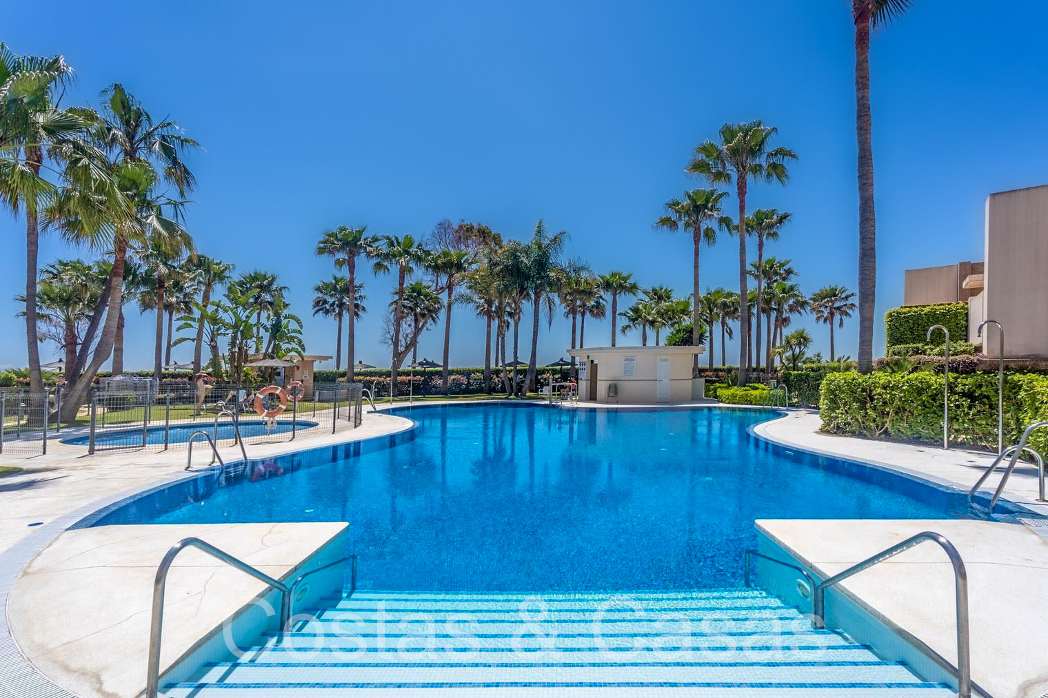 Emplacement convoité dans un complexe en première ligne de plage sur le New Golden Mile, entre Marbella et le centre d'Estepona. À distance de vélo et à pied d'Estepona et de tout ce que ce centre animé a à offrir. À distance de marche du Kempinski et du Laguna Village Resort. Le complexe bénéficie d'un accès direct à la plage et d'une belle promenade avec de nombreuses options de restaurants et de magasins à proximité. Le complexe dispose de 2 piscines extérieures, d'une piscine intérieure chauffée avec espace détente, d'un sauna à vapeur, d'une salle de fitness et d'un court de paddle intérieur. Équipements supplémentaires : réception 24h/24, Wi-Fi dans toutes les zones communes et caméras de sécurité.