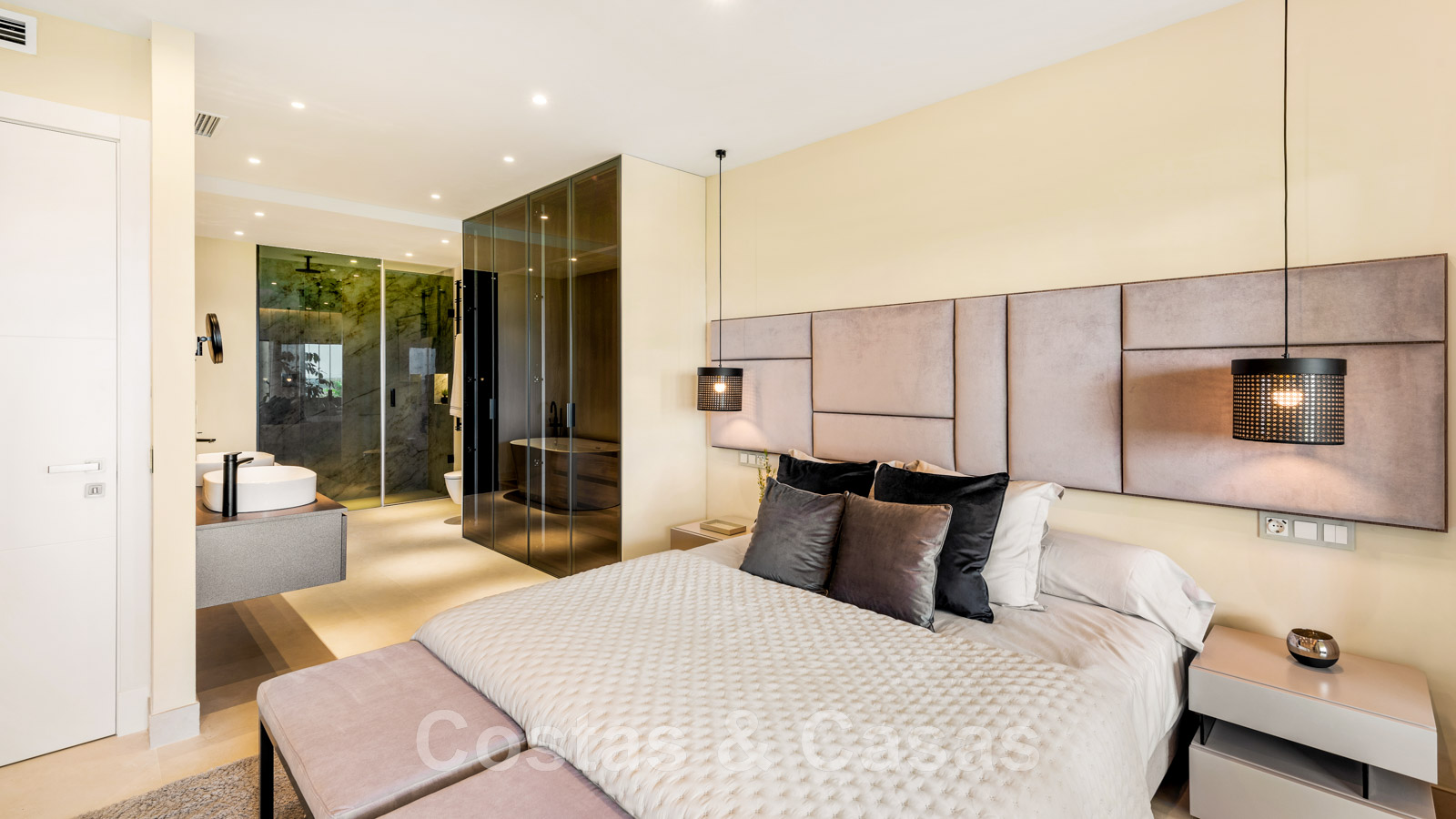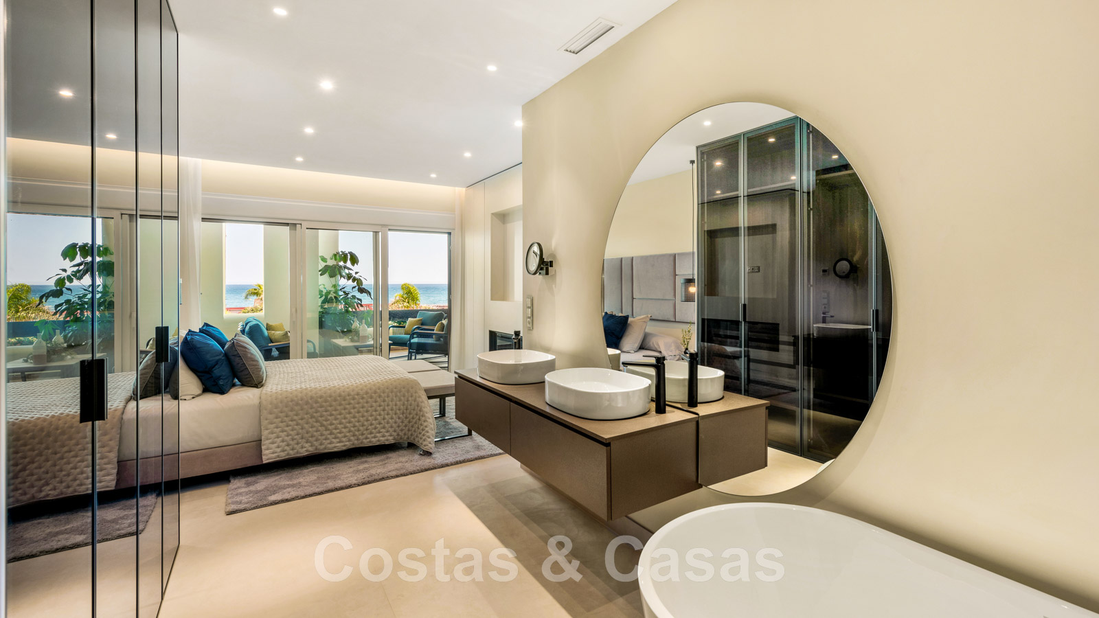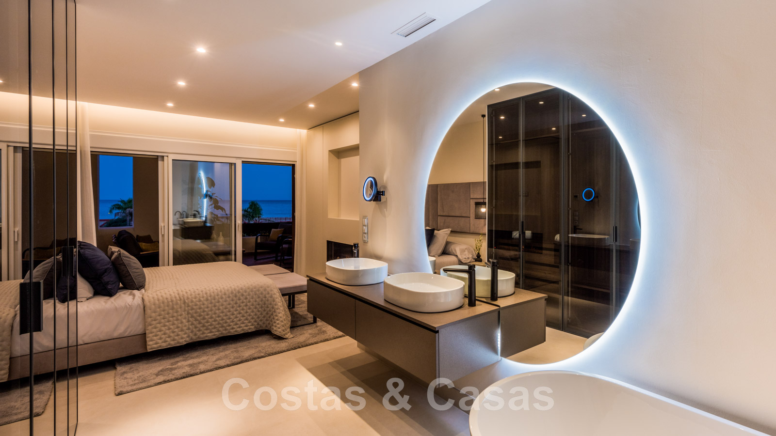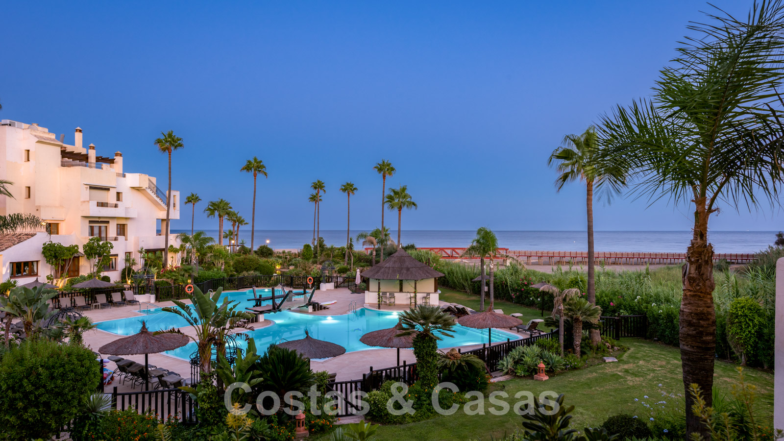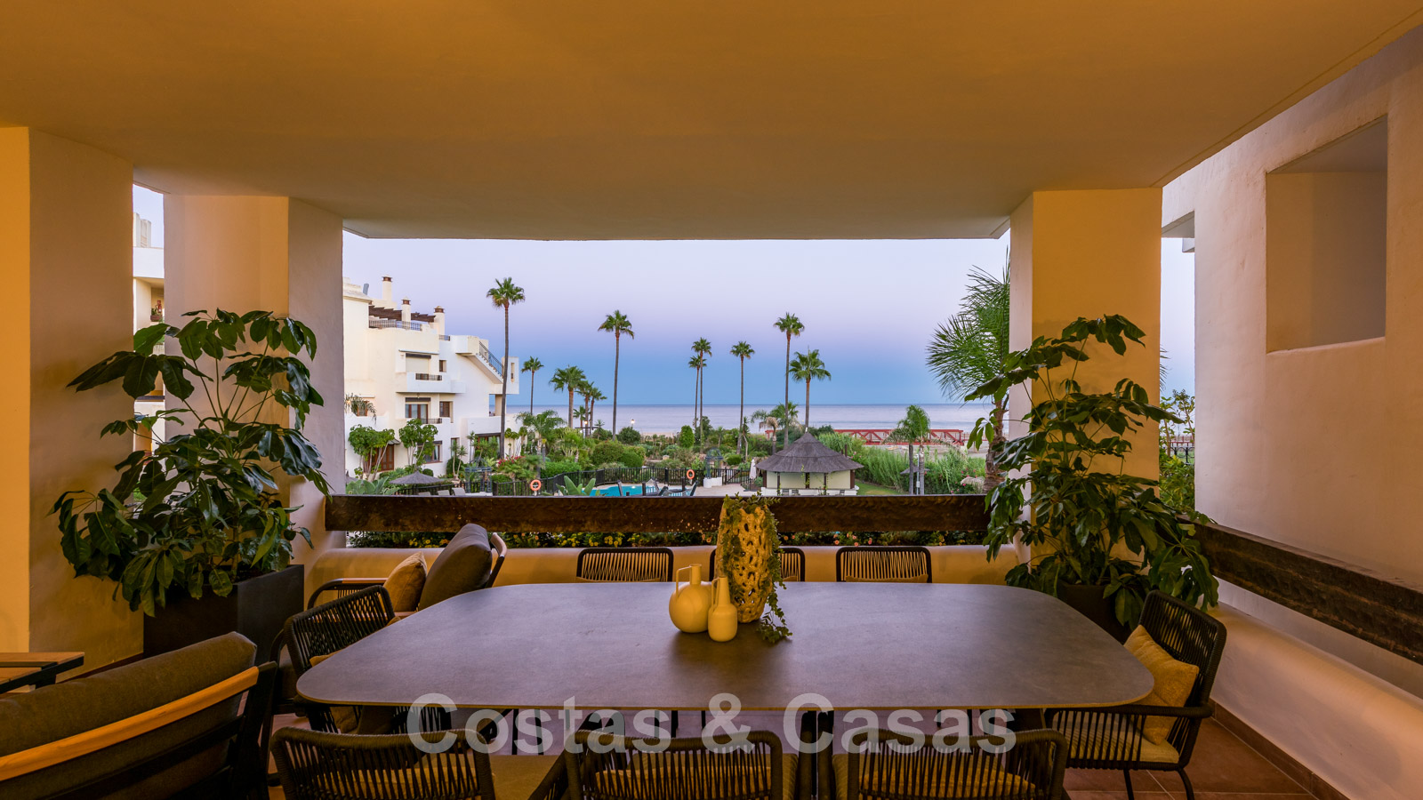 Spacieux et luxueux appartement à vendre dans un complexe sécurisé, en première ligne de plage, avec de belles vues sur la mer, sur le Golden Mile entre Marbella et Estepona