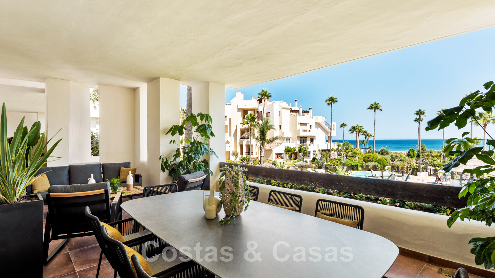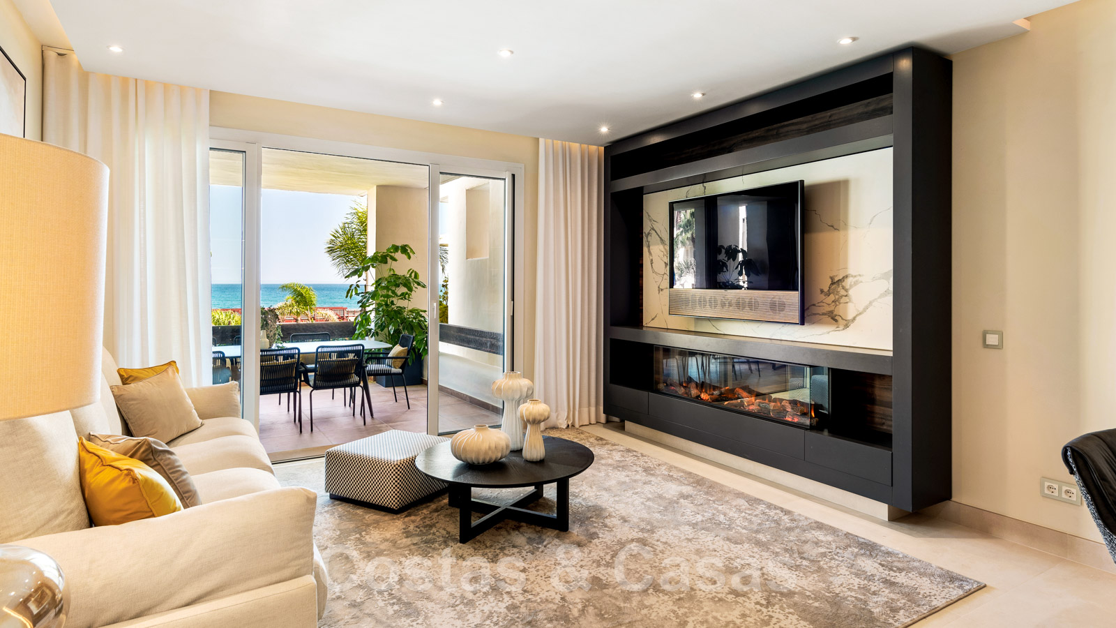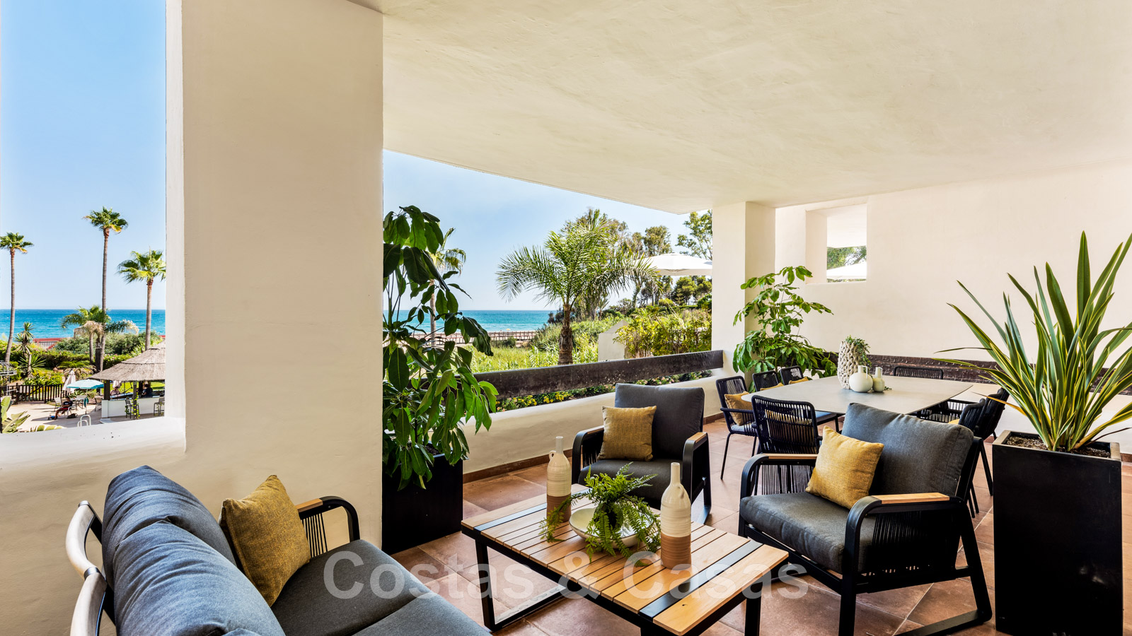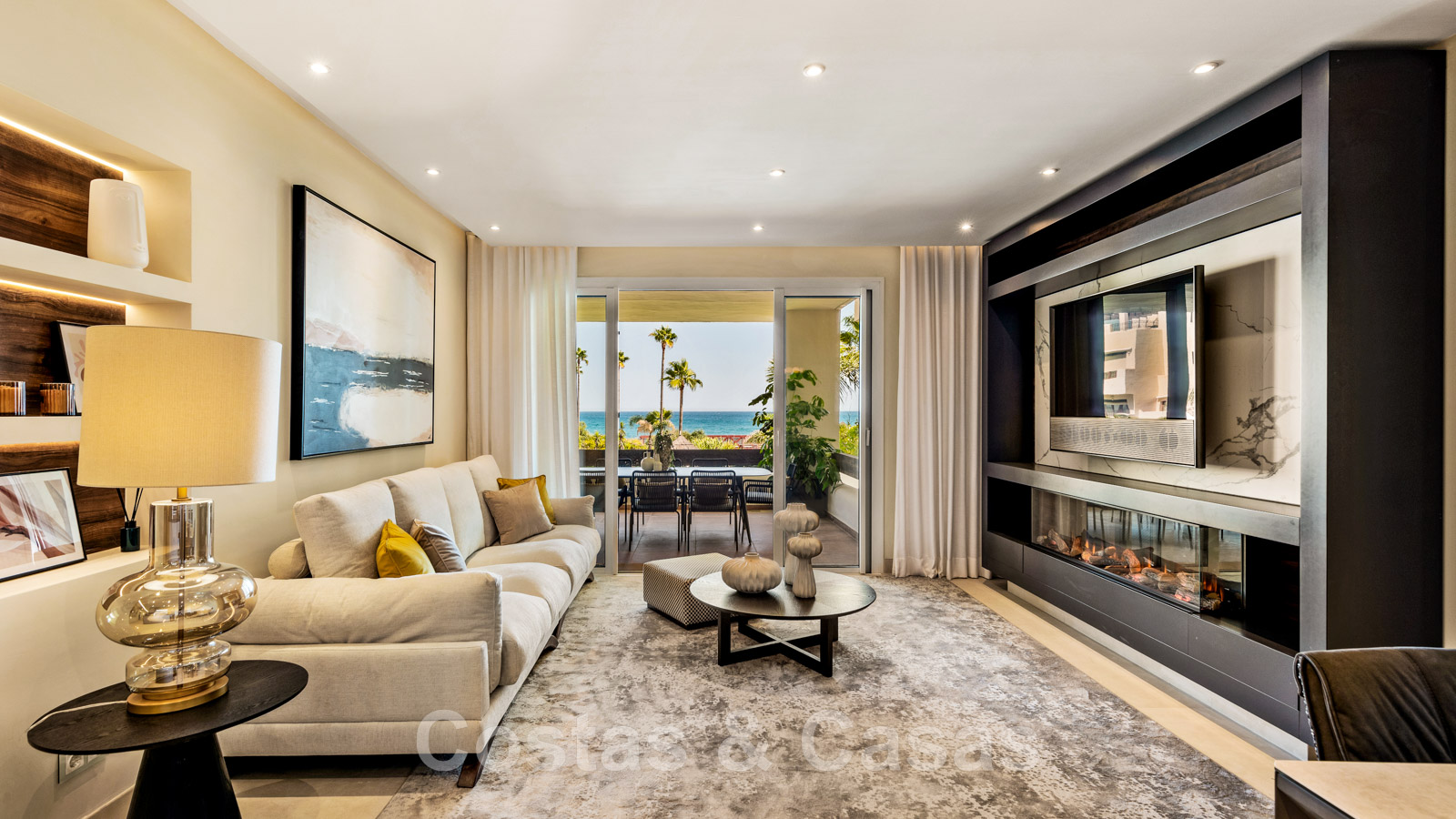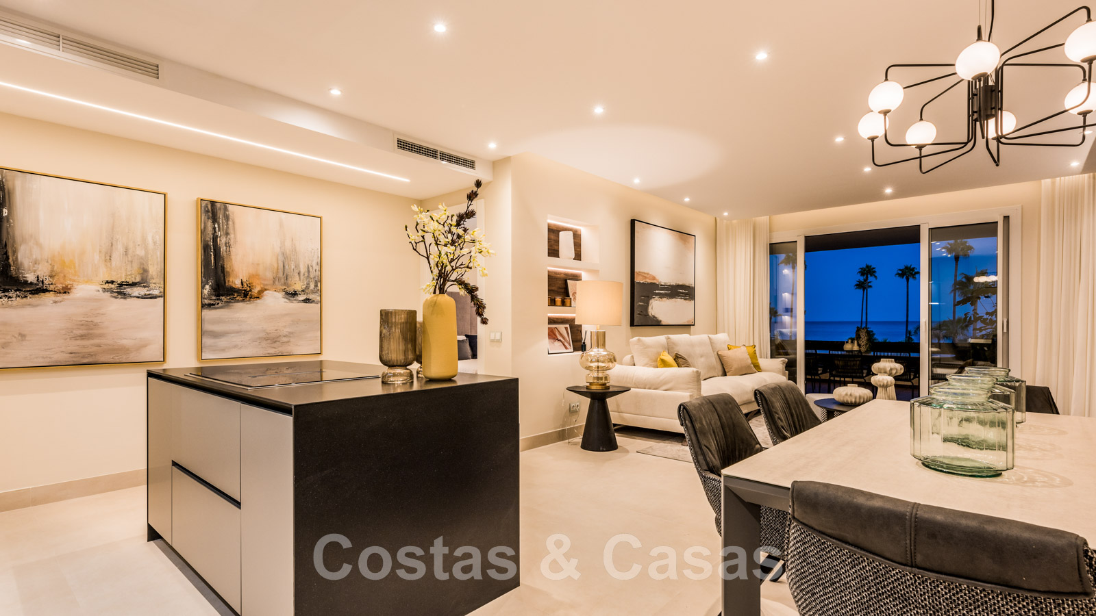 Appartement contemporain de 3 chambres à vendre, récemment rénové, dans un complexe de plage en première ligne sur le Golden Mile de Marbella