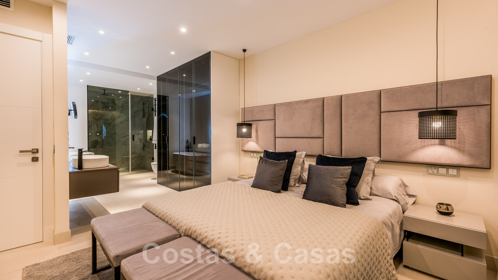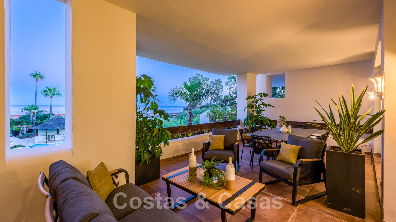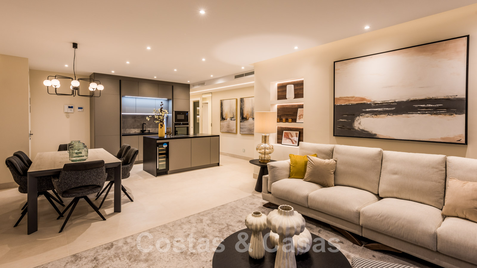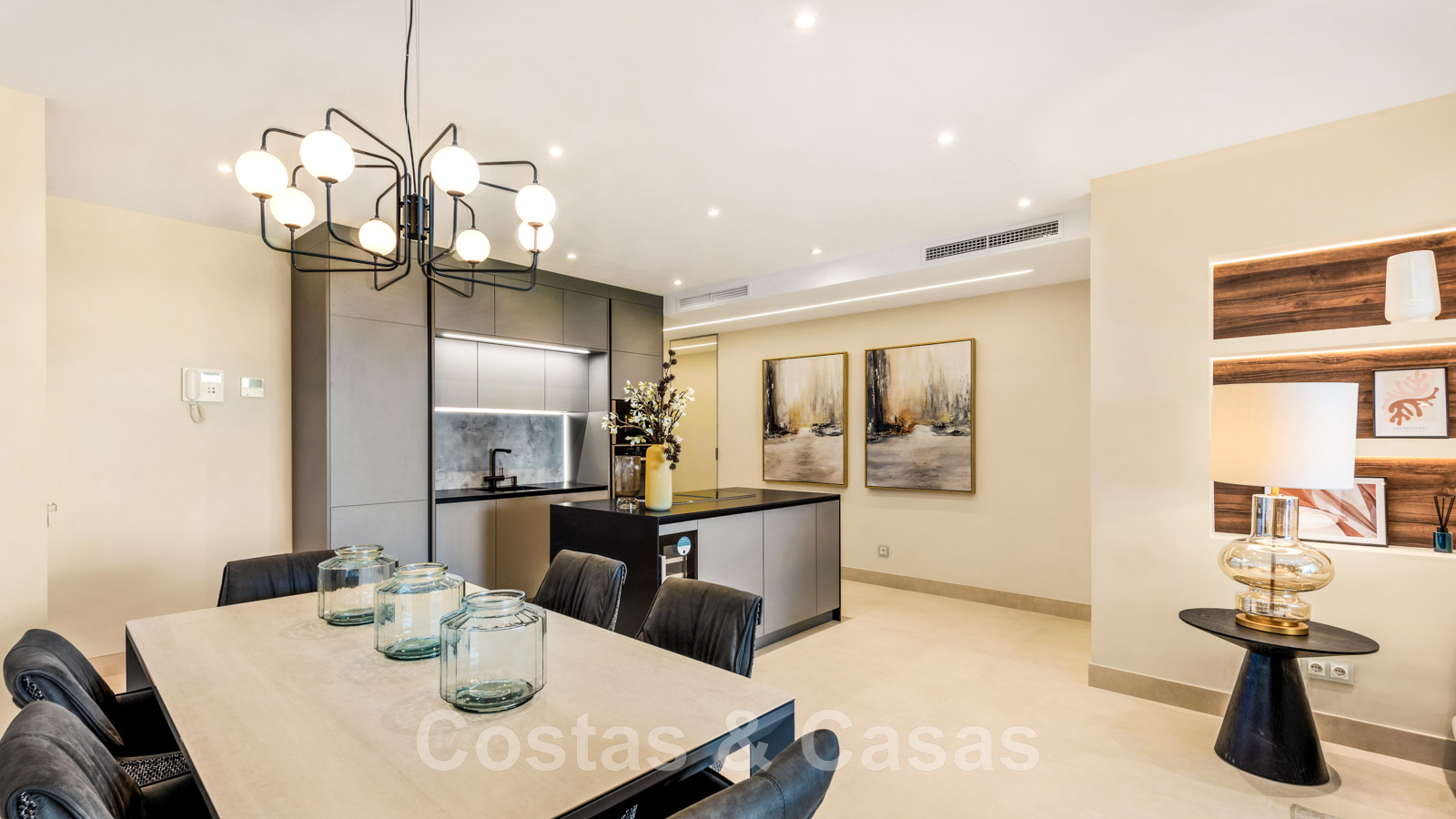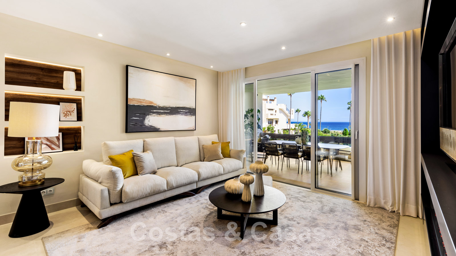 Appartement contemporain de 3 chambres à vendre, récemment rénové, dans un complexe de plage en première ligne sur le Golden Mile de Marbella