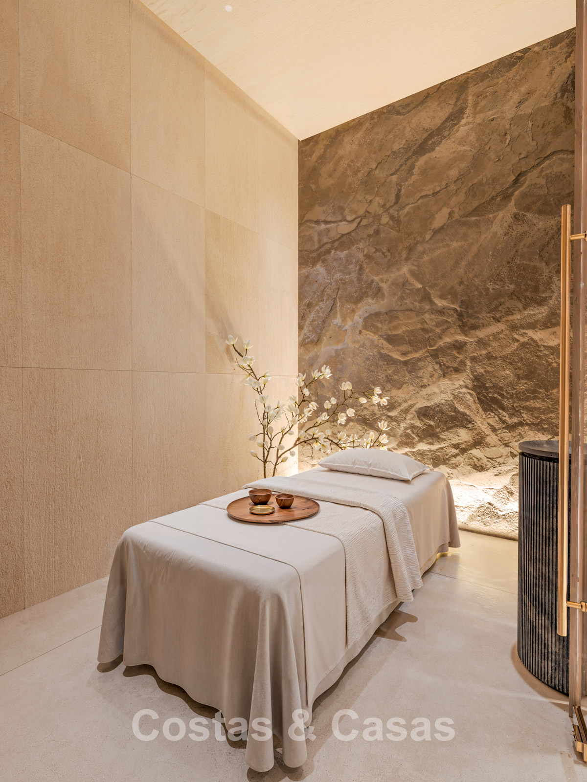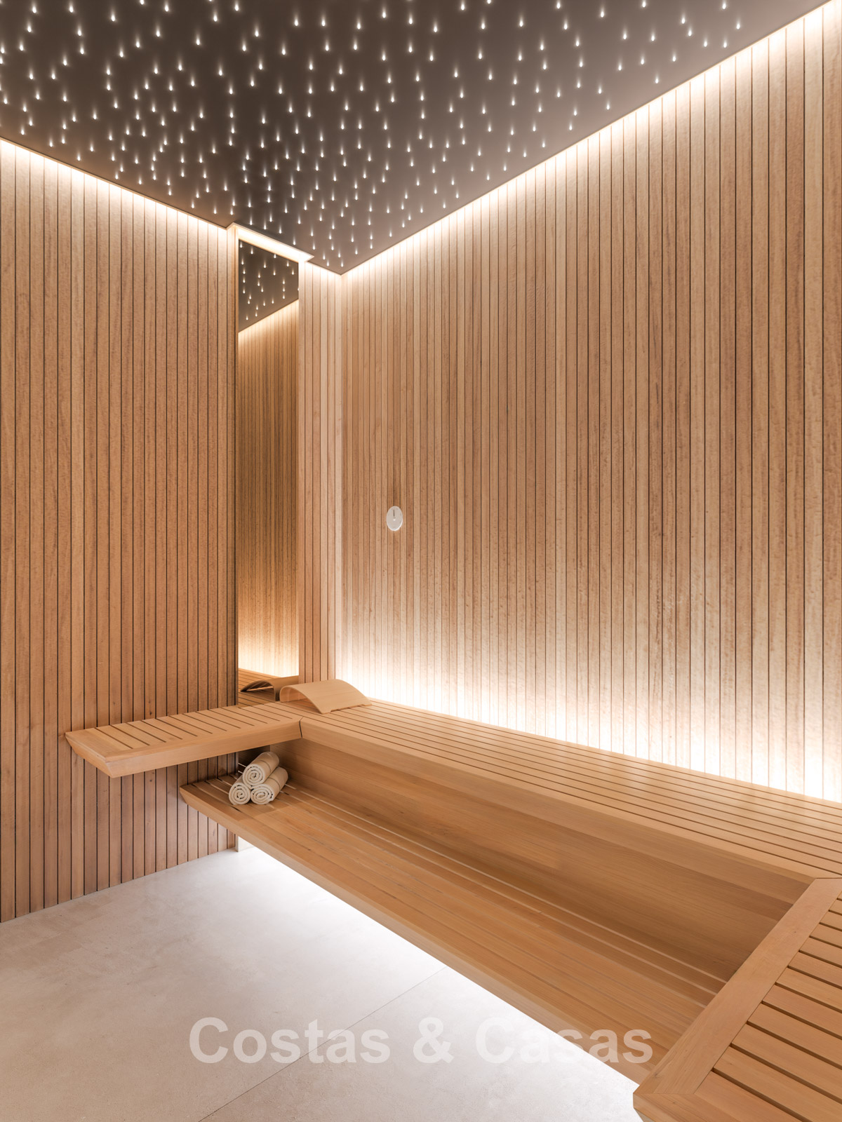 Situé sur la prestigieuse New Golden Mile, à seulement 500 mètres à pied de la plage, entouré de resorts haut de gamme, de bars chaleureux et d’excellents restaurants. À proximité immédiate, vous trouverez un large éventail de commodités telles que des écoles, centres commerciaux et supermarchés, facilement accessibles en voiture. Le centre d’Estepona se trouve à seulement 5 minutes en voiture. Les prestations exclusives de la résidence sécurisée avec service 24h comprennent : piscine intérieure et extérieure commune entourée de jardins paysagers, salle de sport professionnelle, bain glacé, studio de Pilates, spa, espace de coworking, salle de jeux, cinéma et restaurant.
