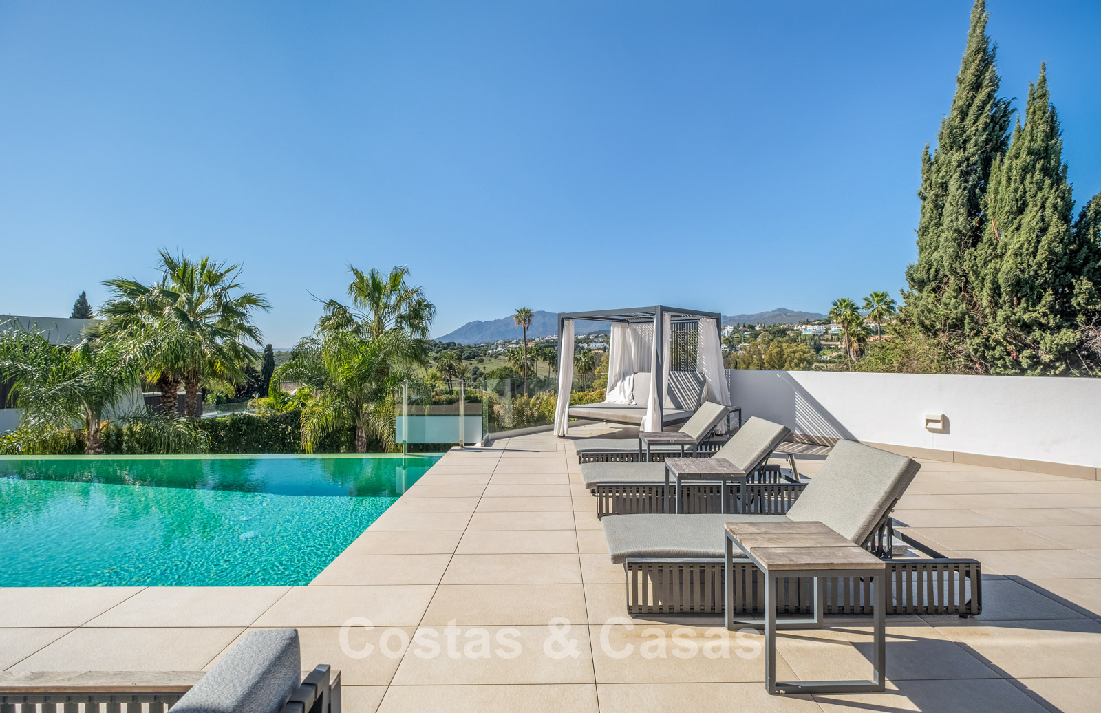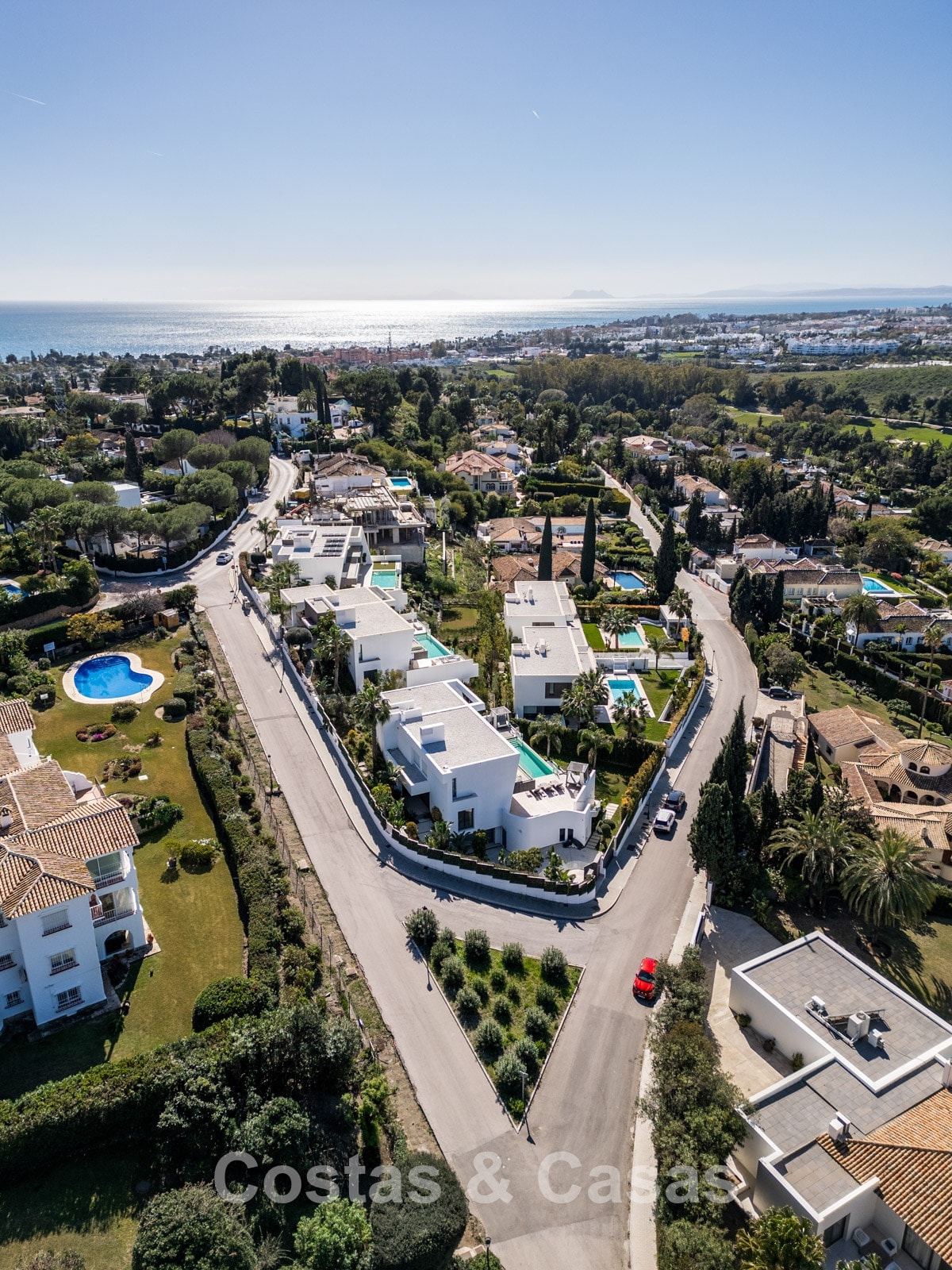 Toutes les commodités quotidiennes et une sélection de magnifiques plages se trouvent à quelques minutes en voiture. À proximité immédiate, plusieurs complexes de golf renommés, dont El Paraíso Golf Club, Atalaya Golf & Country Club et le prestigieux Los Flamingos Golf. Le charmant village de Benahavís, réputé pour sa gastronomie, se situe à environ dix minutes. San Pedro de Alcántara et Puerto Banús sont également proches, offrant plages, boutiques de luxe, El Corte Inglés, restaurants gastronomiques et vie nocturne animée.