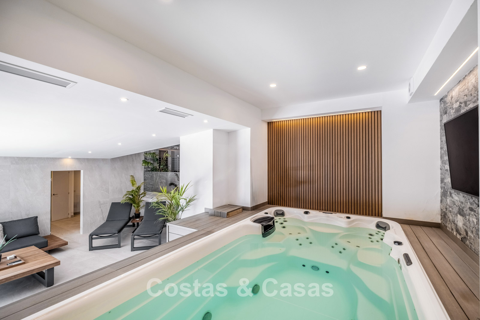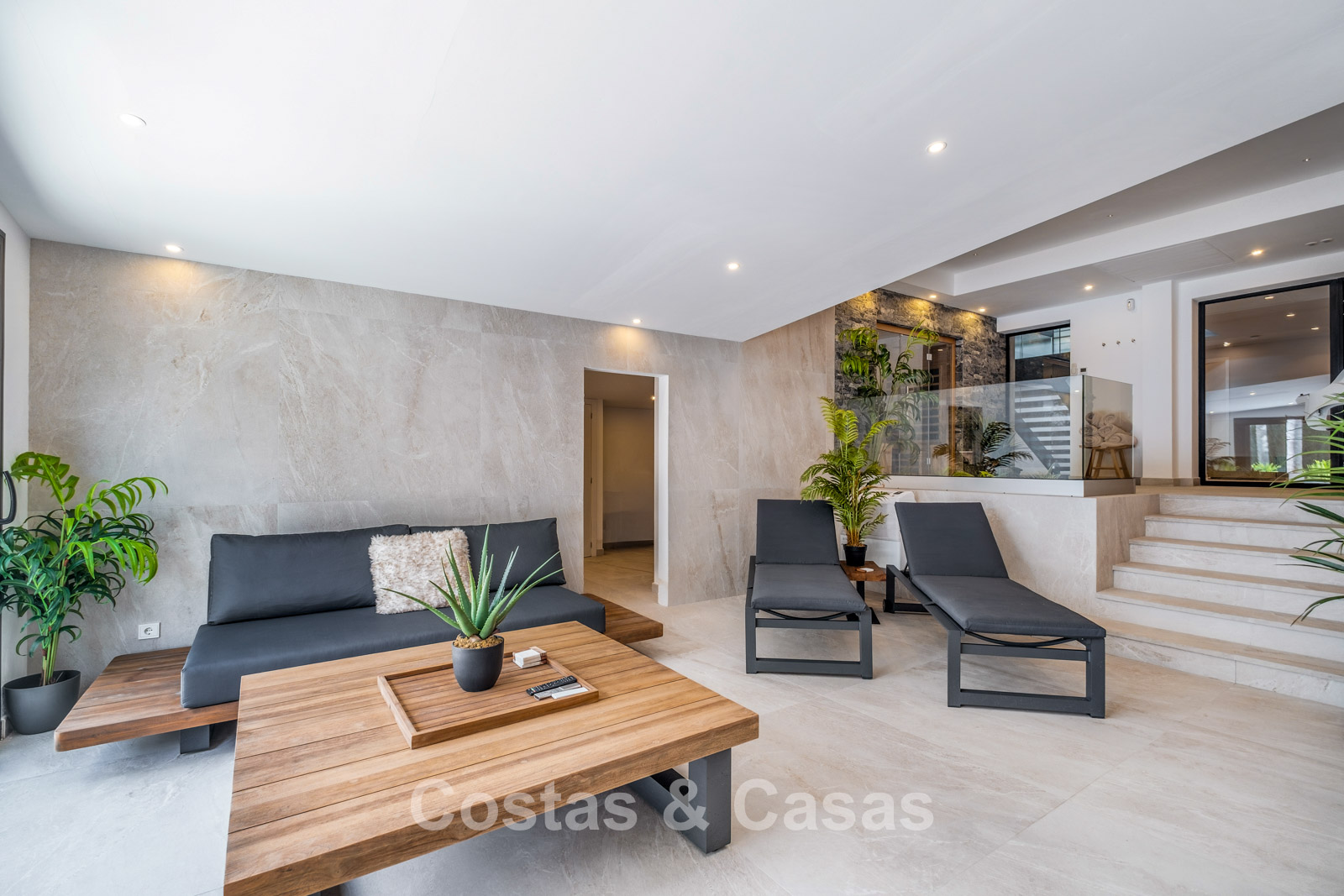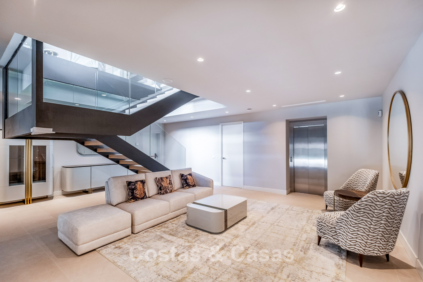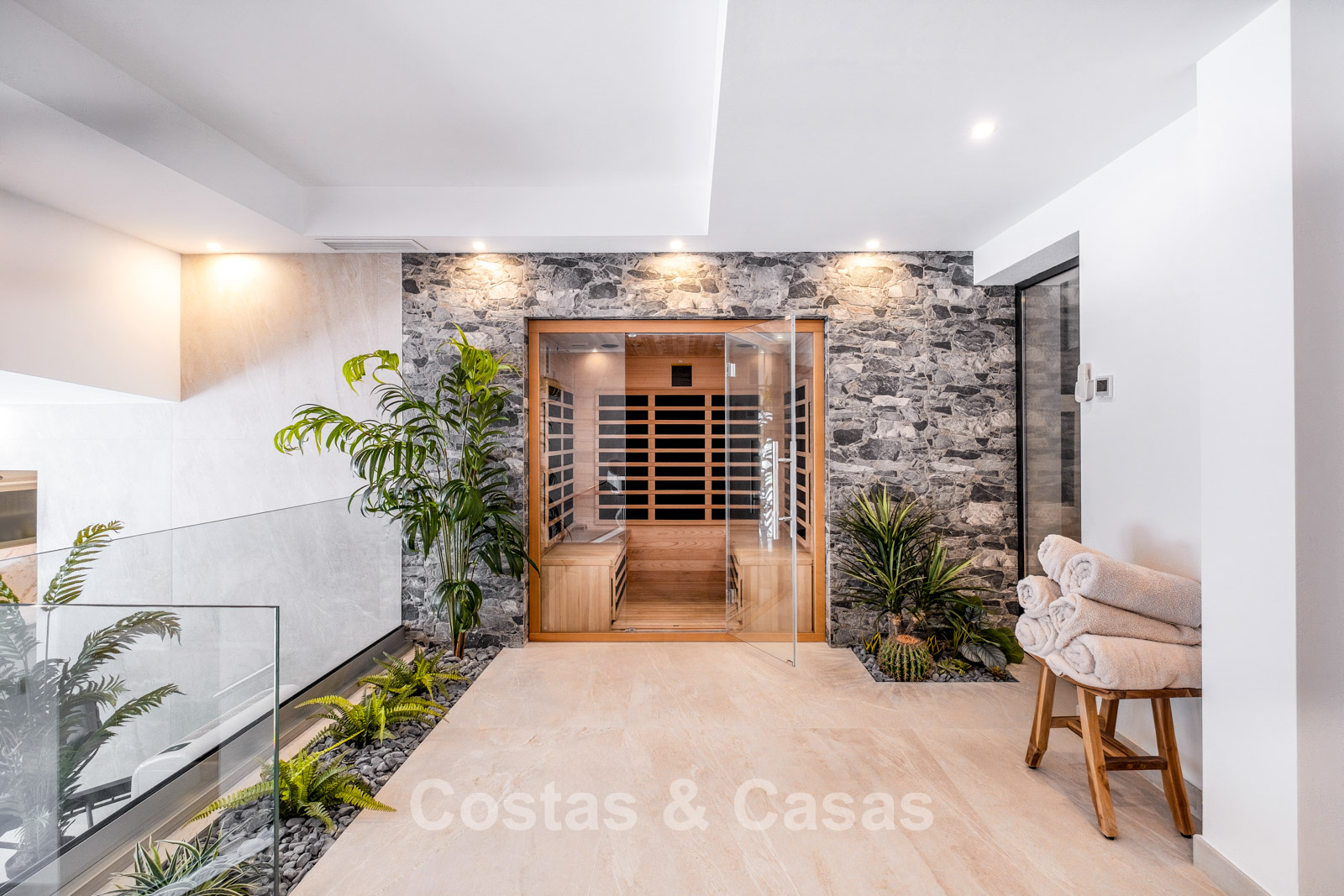Autres caractéristiques : Ascenseur privé Climatisation chaud/froid Chauffage au sol (électrique dans les salles de bains) Système aérothermique Cheminée Placards sur mesure Double vitrage Garde-corps en verre Système domotique avancé Stores électriques et vitrage de sécurité Éclairage LED intérieur et extérieur
