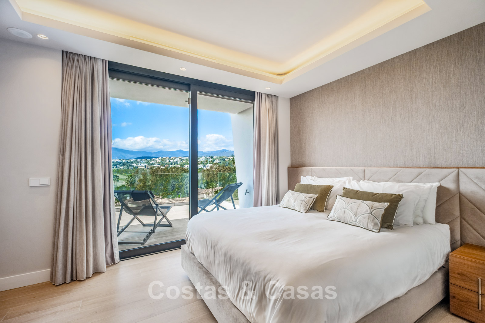 Cette villa incarne l’architecture moderne et épurée. Construite avec des matériaux de très haute qualité. Intérieur lumineux et raffiné avec un agencement ouvert. Baies vitrées coulissantes du sol au plafond reliant intérieur et extérieur. Grand séjour avec cheminée et salle à manger séparée. Cuisine design entièrement équipée avec îlot central et mobilier sur mesure. 6 chambres, 6 salles de bains et 2 toilettes invités. Suite parentale avec terrasse privée et baignoire balnéo. Sols en carrelage haut de gamme avec chauffage au sol. Sous-sol offrant des espaces modulables. Possibilité de créer un home cinéma ou une salle de sport. Espace de rangement. Garage privé pour deux voitures et stationnement supplémentaire.