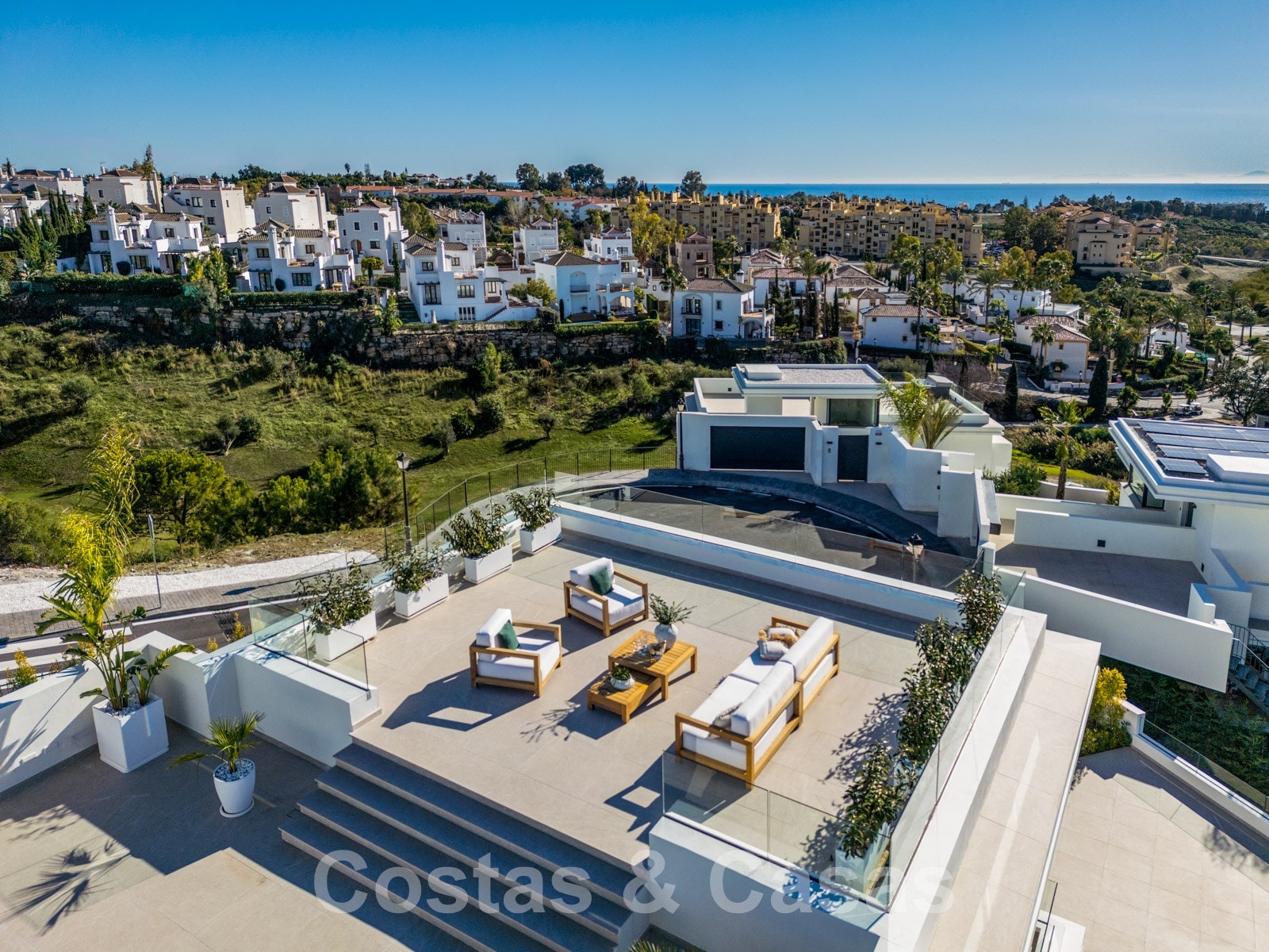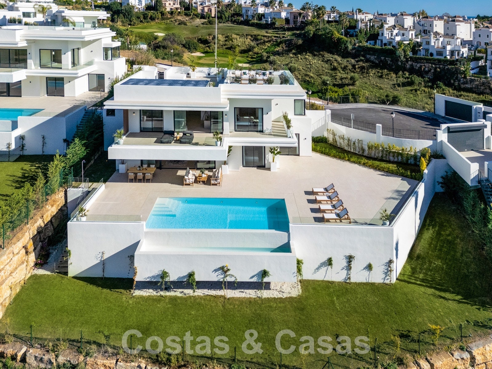Superbes villas ultramodernes à vendre avec vue panoramique sur la mer, entourées d'un terrain de golf sur le nouveau Golden Mile entre Marbella et Estepona