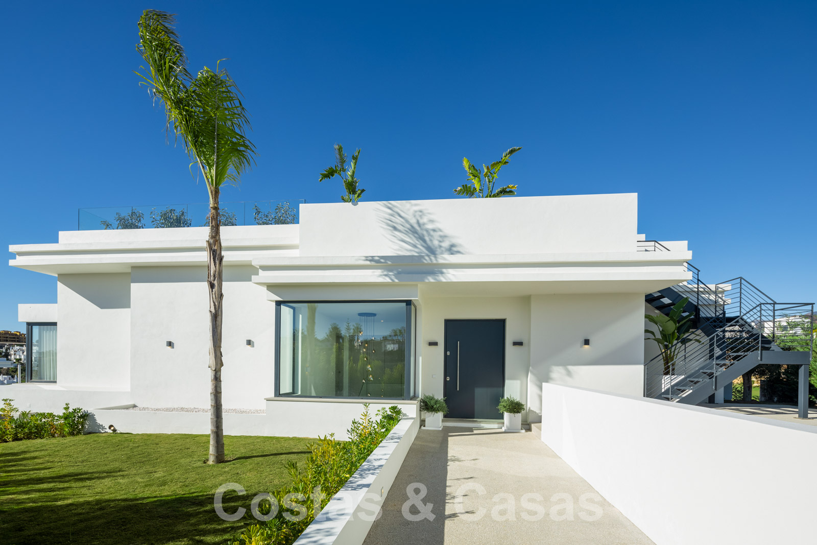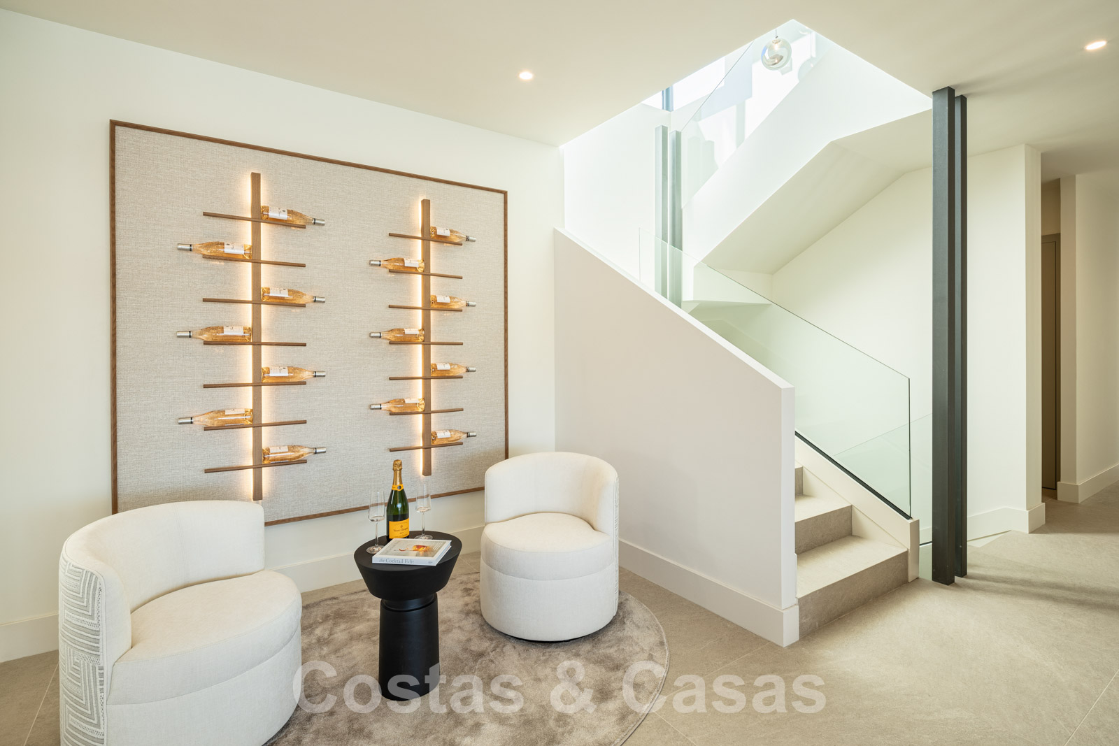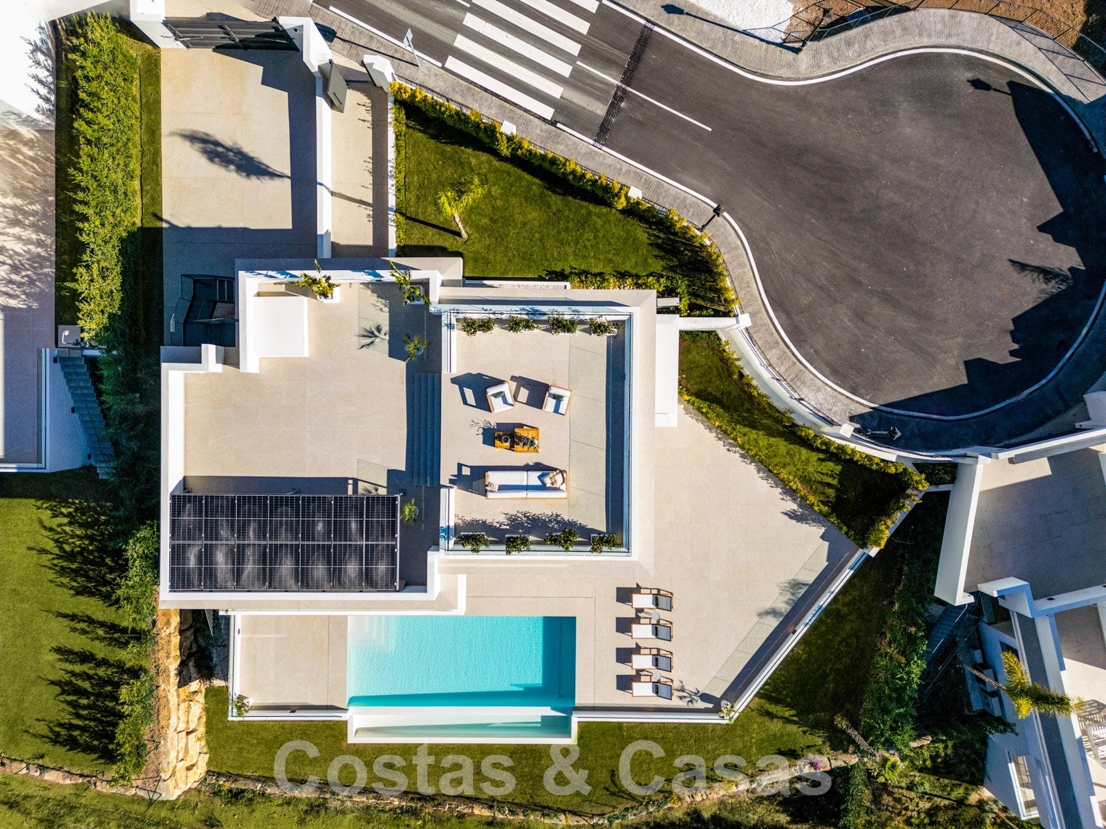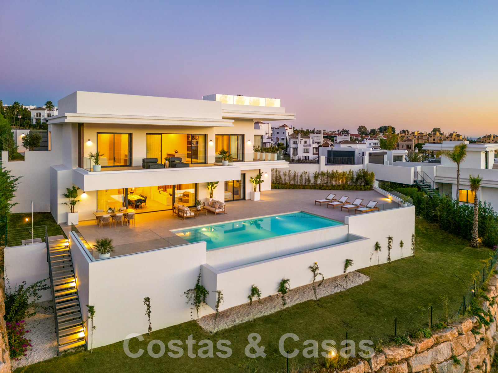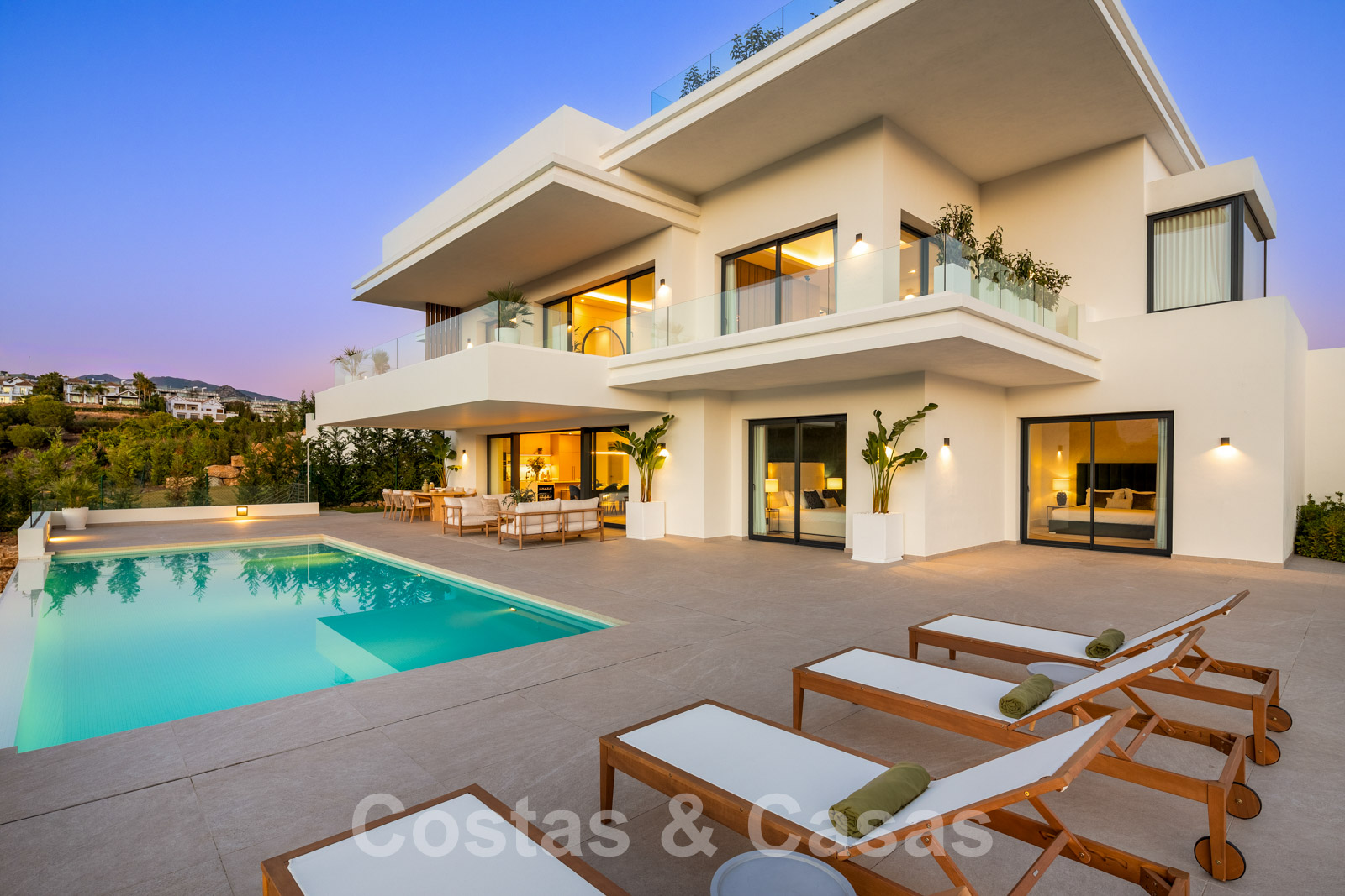Ascenseur. Balustrades en verre. Système d'alarme avec caméras de surveillance. Système de musique. Système domotique sophistiqué. Appareils de cuisine Gaggenau et Miele. Pré-installation d'une station de recharge pour voitures électriques. Pré-installation pour la climatisation de la piscine. Chauffage au sol. Climatisation. Éclairage extérieur. Système d'interphone.