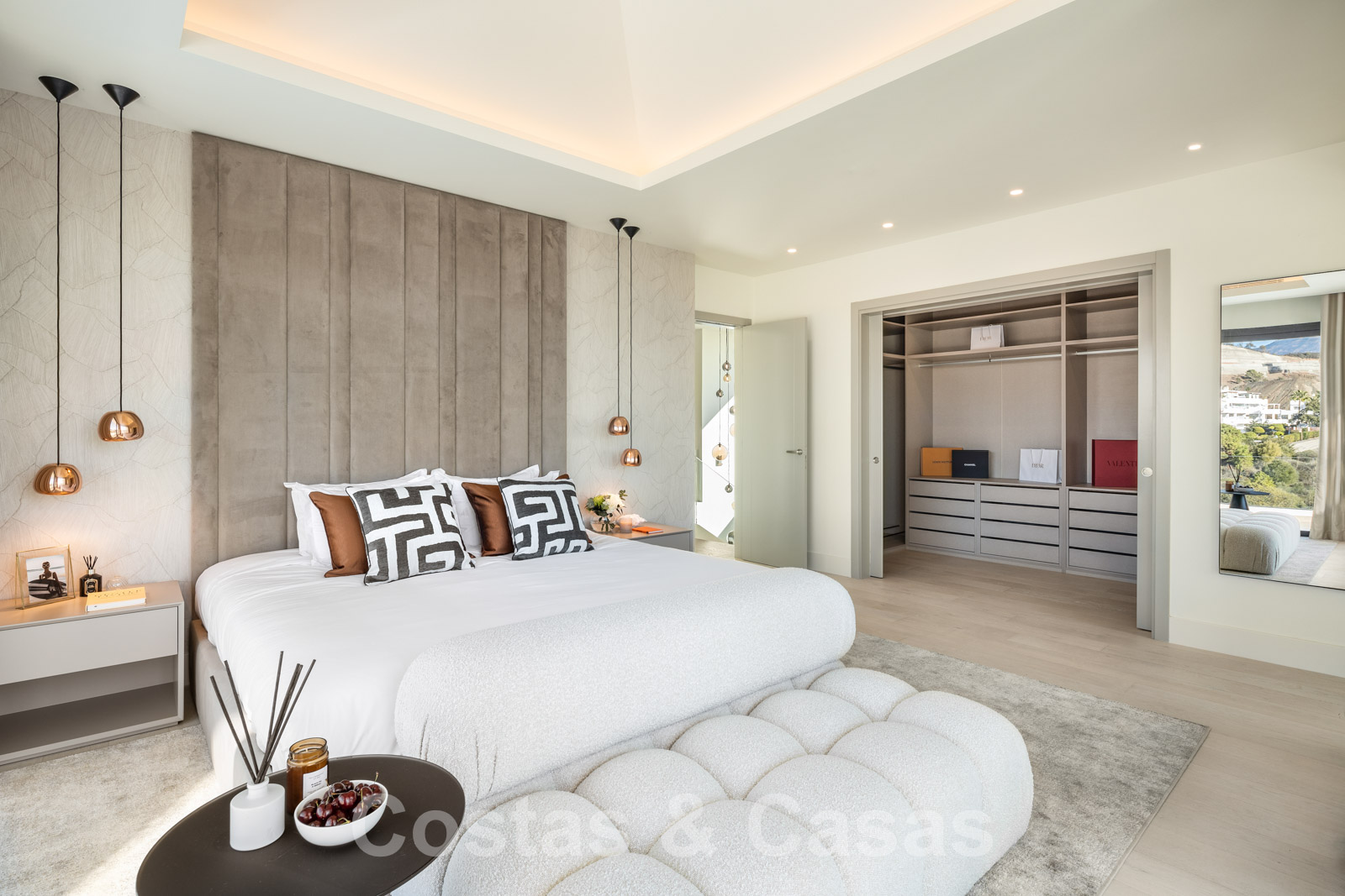 Étage supérieur Escaliers et ascenseur. Chambre à coucher en-suite. Suite principale avec un grand dressing. 2ème salon TV.