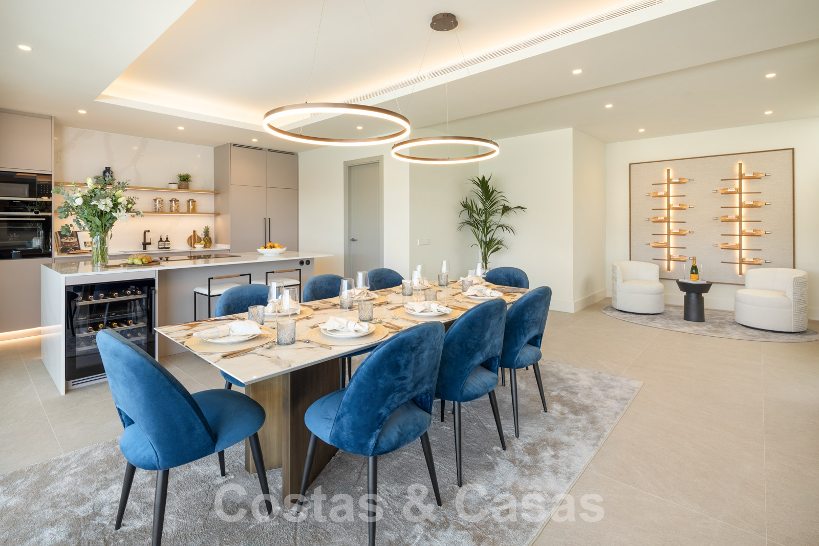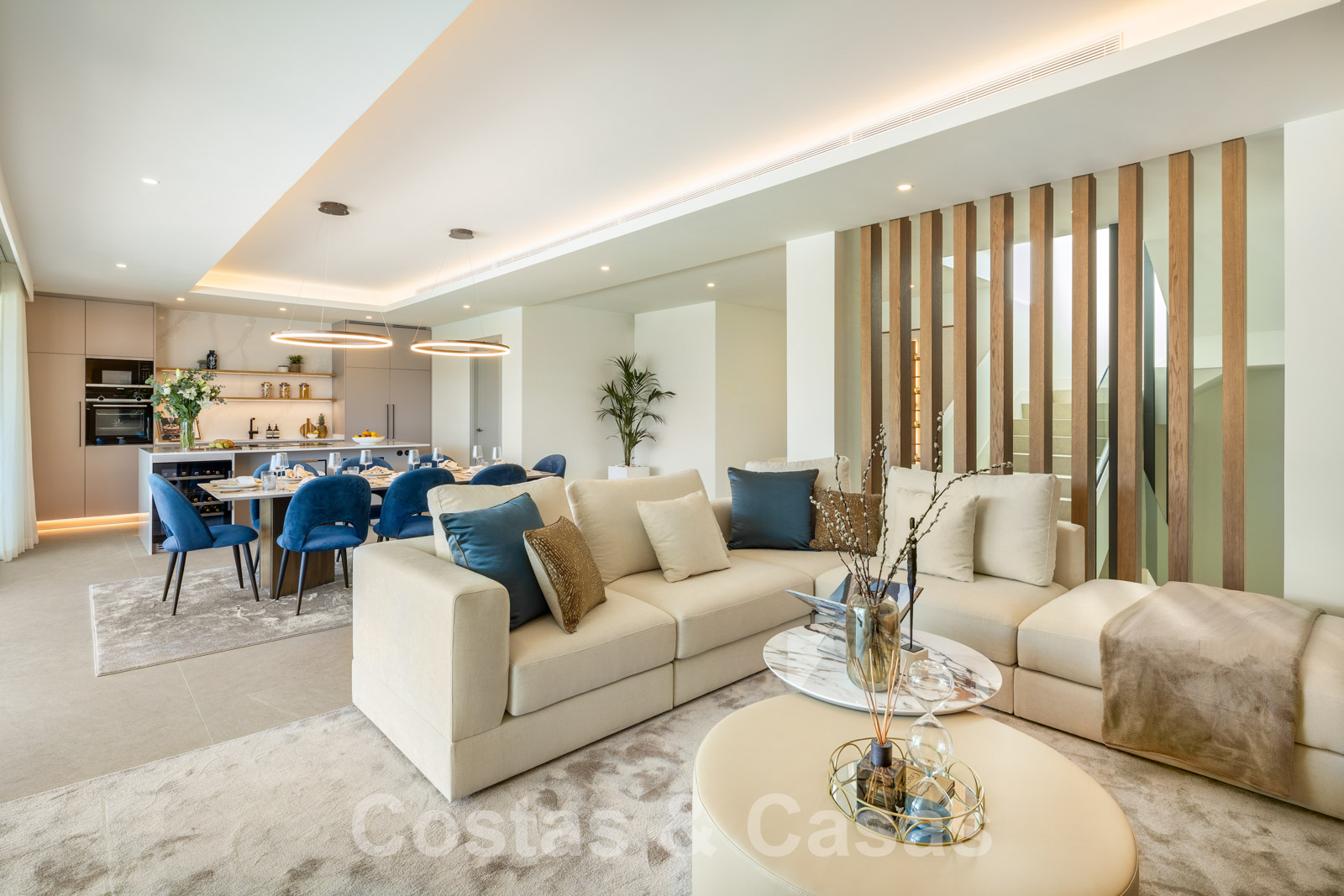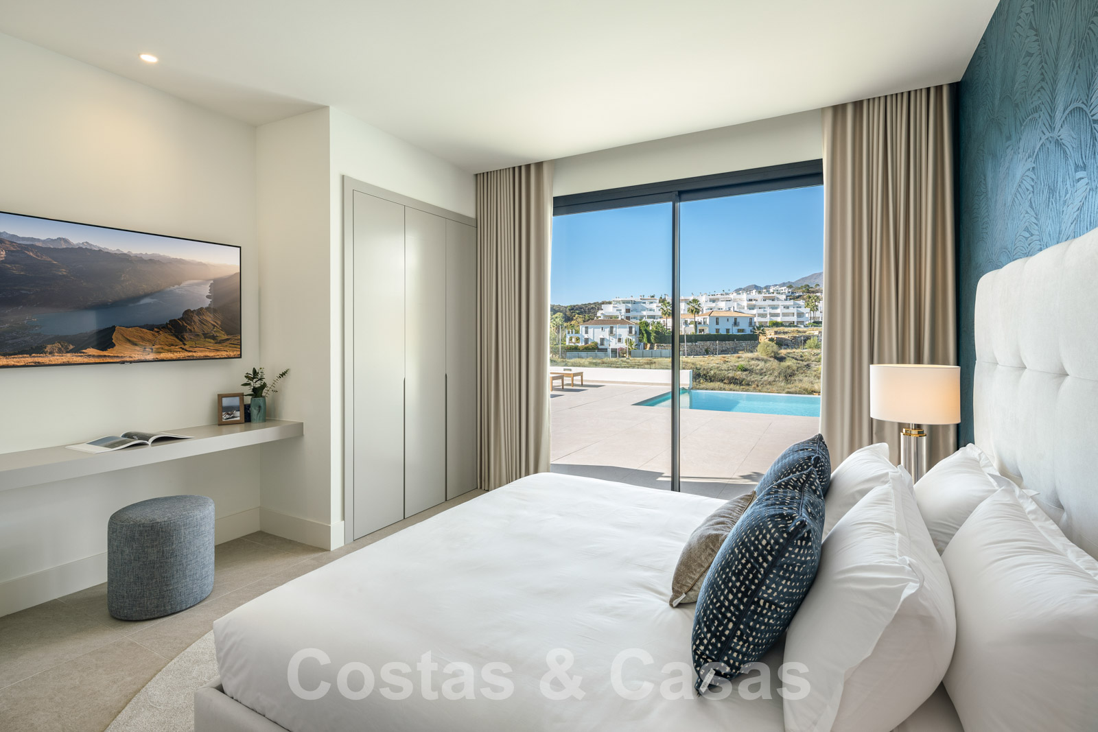 Nouvelle villa individuelle de luxe de style contemporain. Construite avec des matériaux très exclusifs et avec le souci du détail. Un intérieur élégant avec un design ouvert. La combinaison d'espaces ouverts et de grandes fenêtres coulissantes offre une lumière naturelle et une ventilation abondantes. Revêtement de sol intérieur et extérieur en porcelaine, de couleur beige. 4 chambres, 3, 4 ou 5 salles de bain.