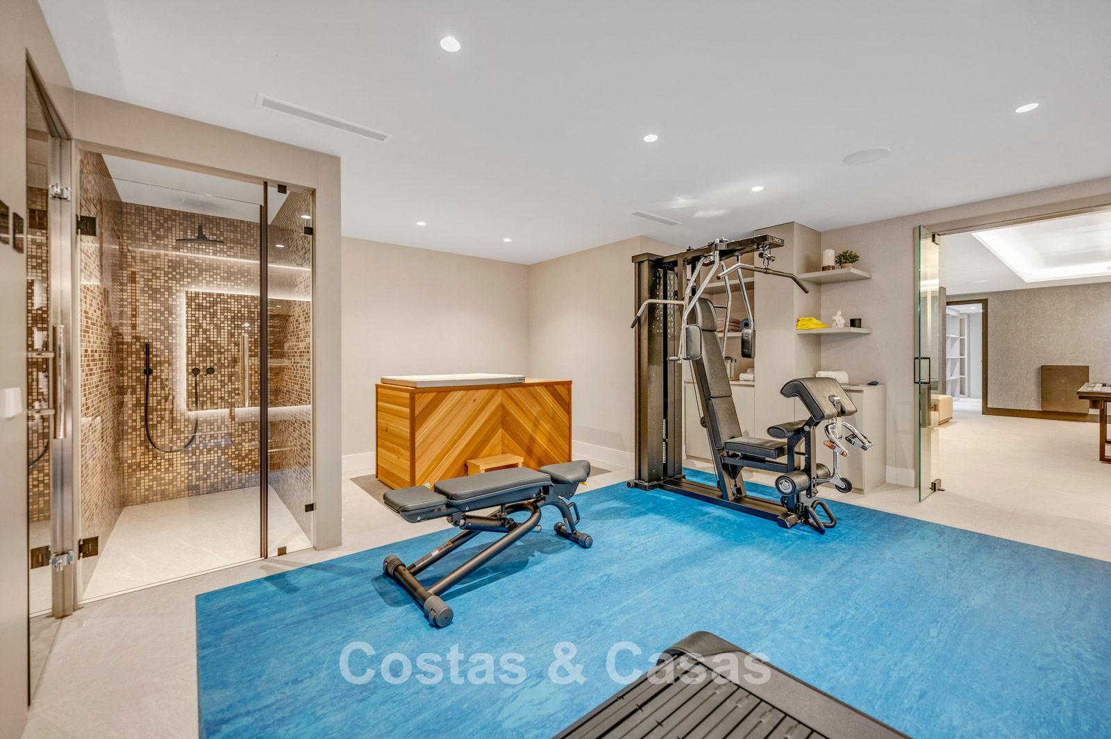 Villa individuelle à l’architecture contemporaine et épurée Matériaux haut de gamme et finitions de grande qualité Baies vitrées coulissantes toute hauteur assurant une parfaite continuité entre intérieur et extérieur et une luminosité optimale Design intérieur moderne et raffiné Espace de vie dynamique avec salon TV et salle à manger intégrée Cuisine ouverte de haute qualité équipée d’électroménagers Siemens et d’un agencement fonctionnel 6 chambres, 6 salles de bains et 2 toilettes invités Salle de sport entièrement équipée avec sauna, hammam et bassin de plongée froide Espace de loisirs avec salon TV, zone de jeux et bar élégant Cave à vin vitrée sur mesure Salle de sécurité (panic room) Plusieurs espaces de rangement Local technique Abri pour 2 voitures