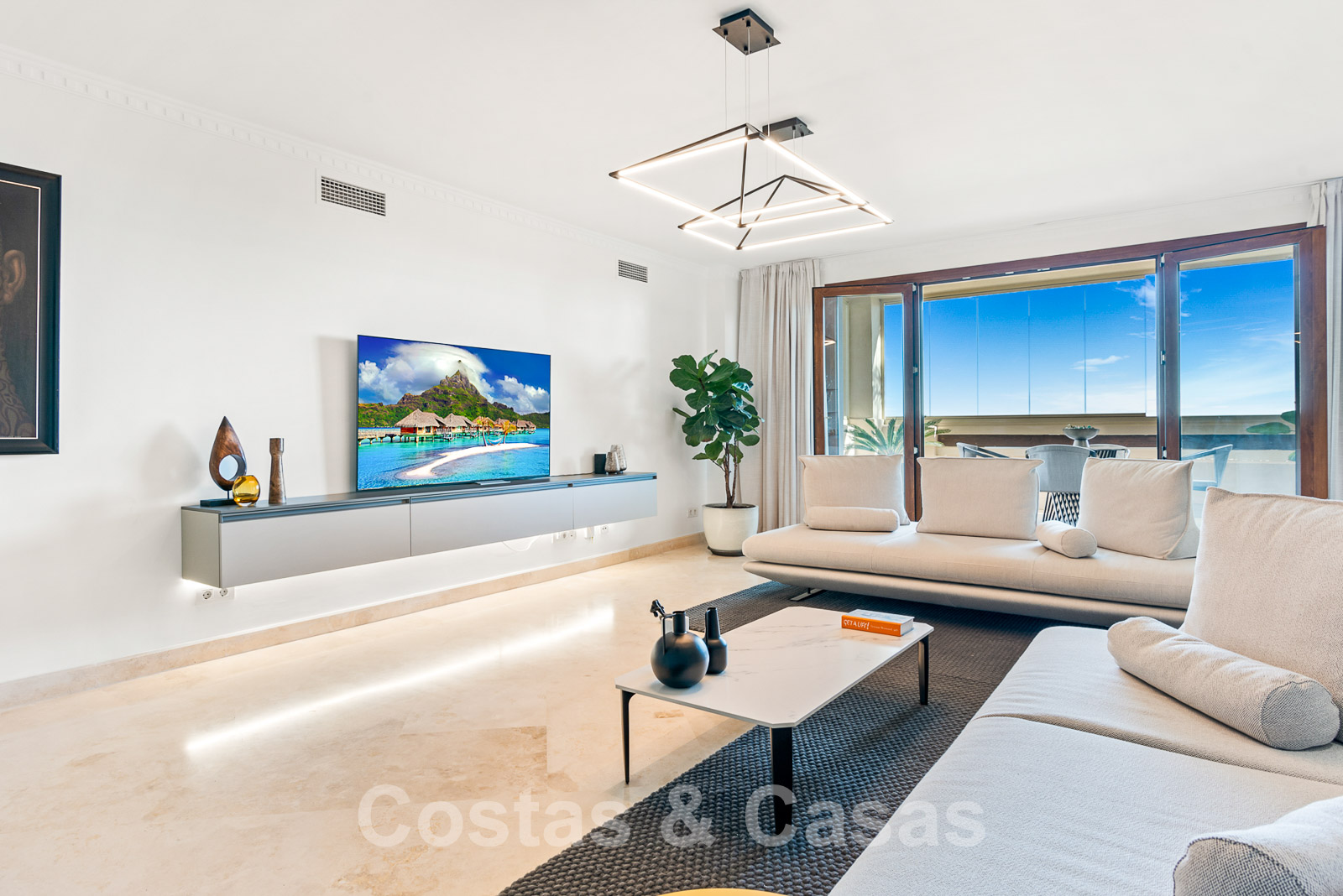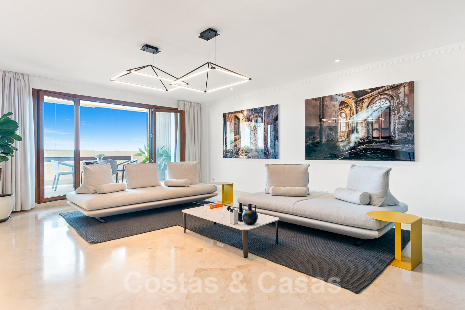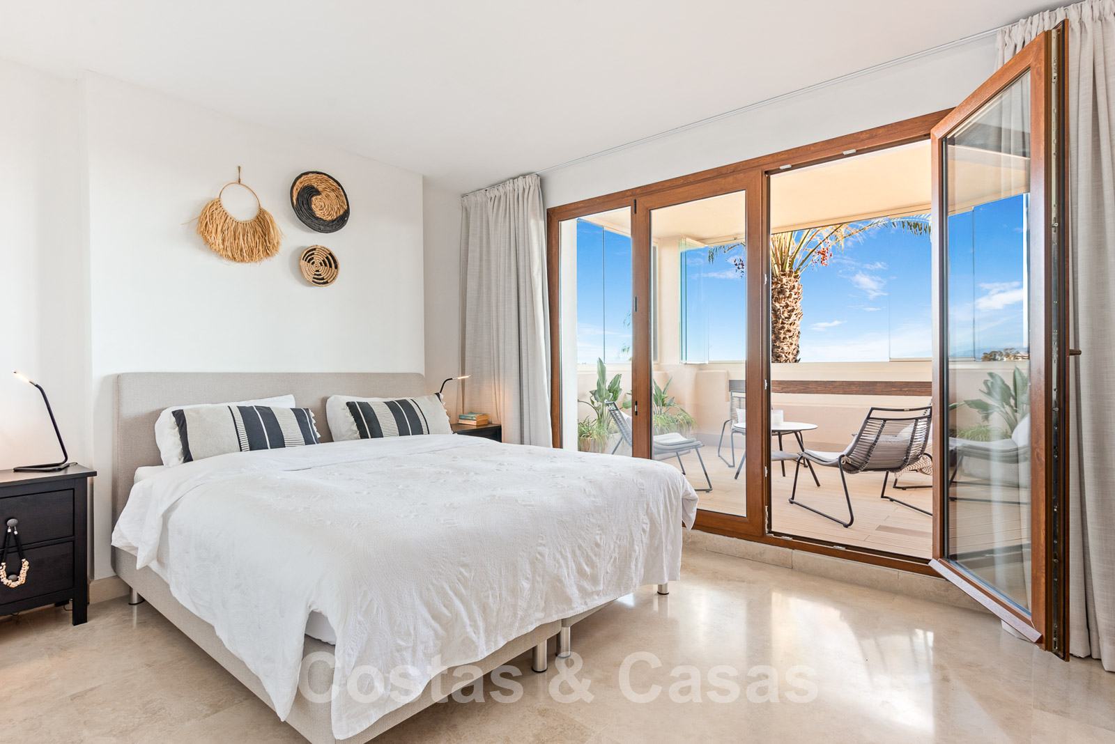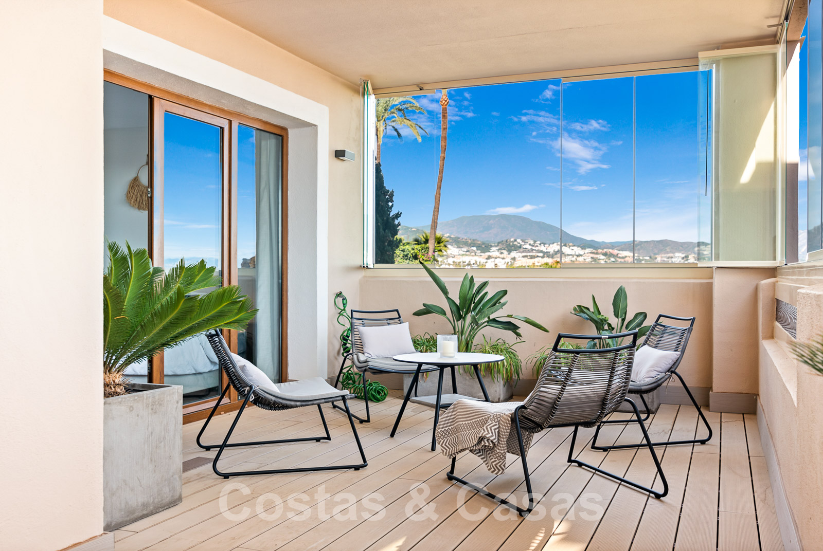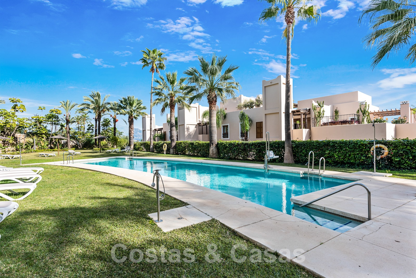 Spacieux appartement de 3 chambres à vendre, avec vue sur la mer, dans une communauté résidentielle calme et sécurisée sur le nouveau Golden Mile entre Marbella et Estepona