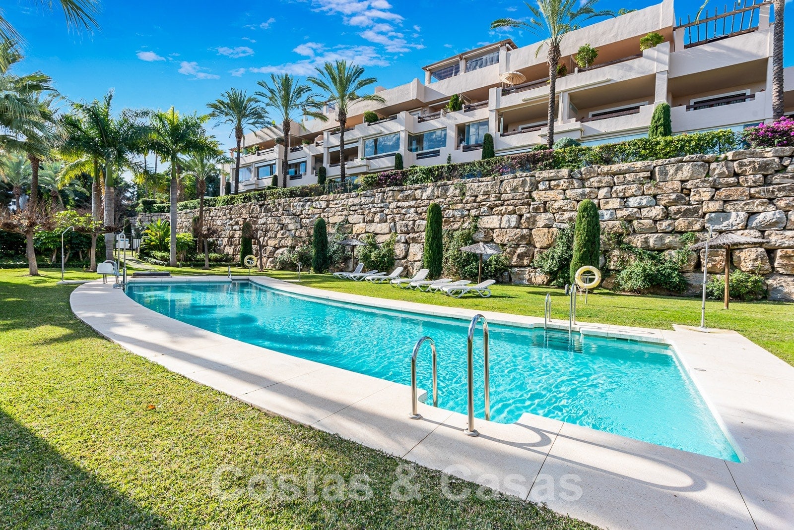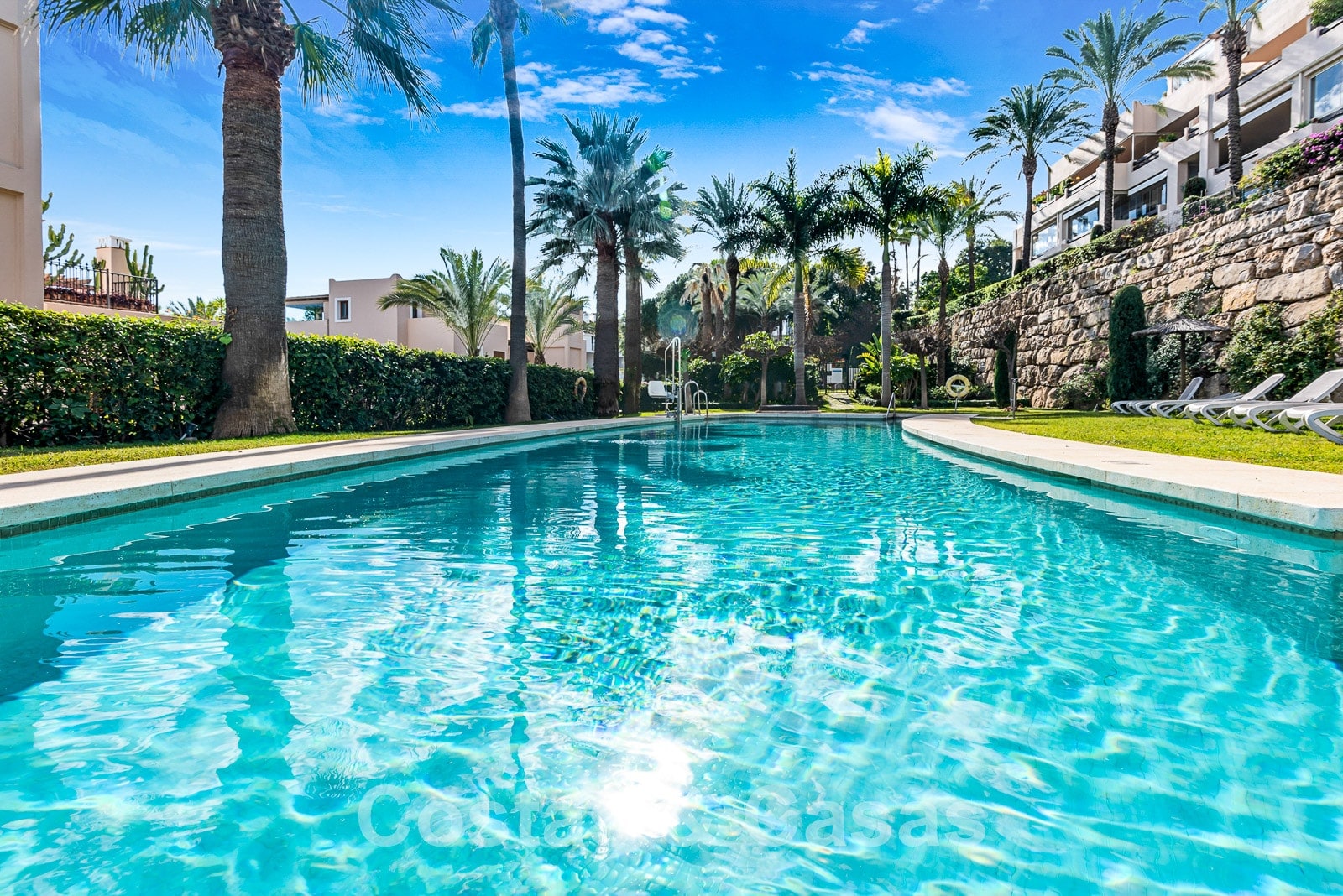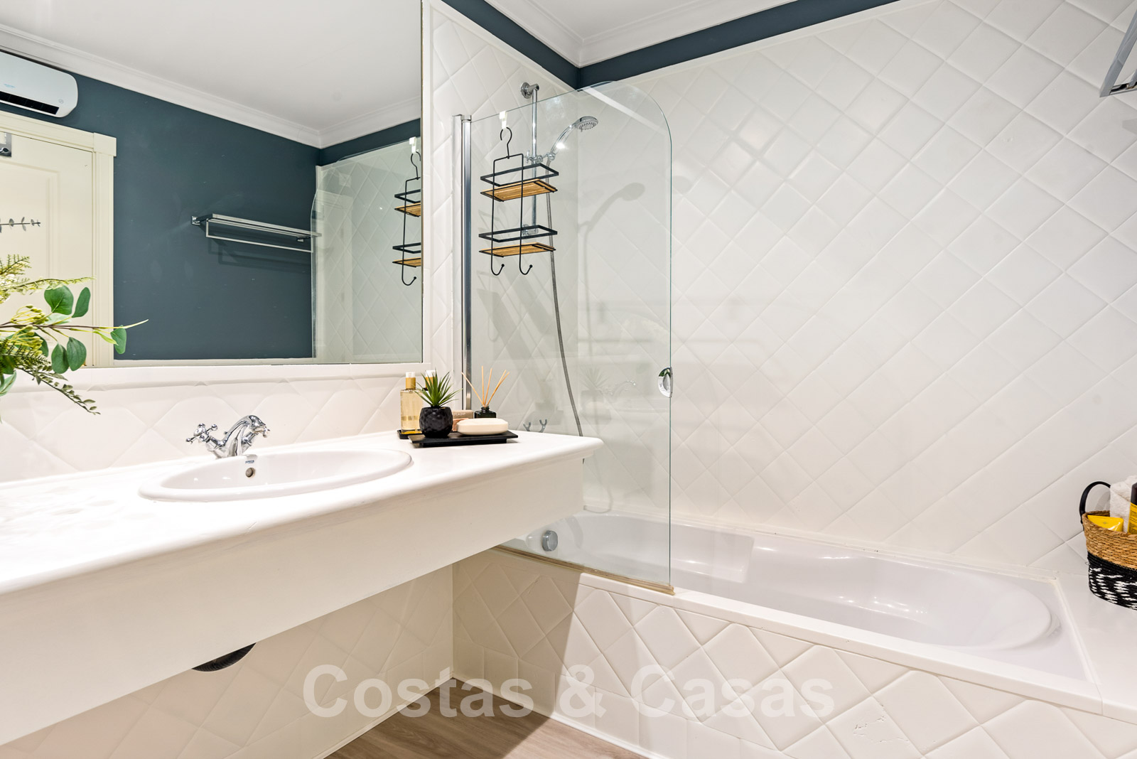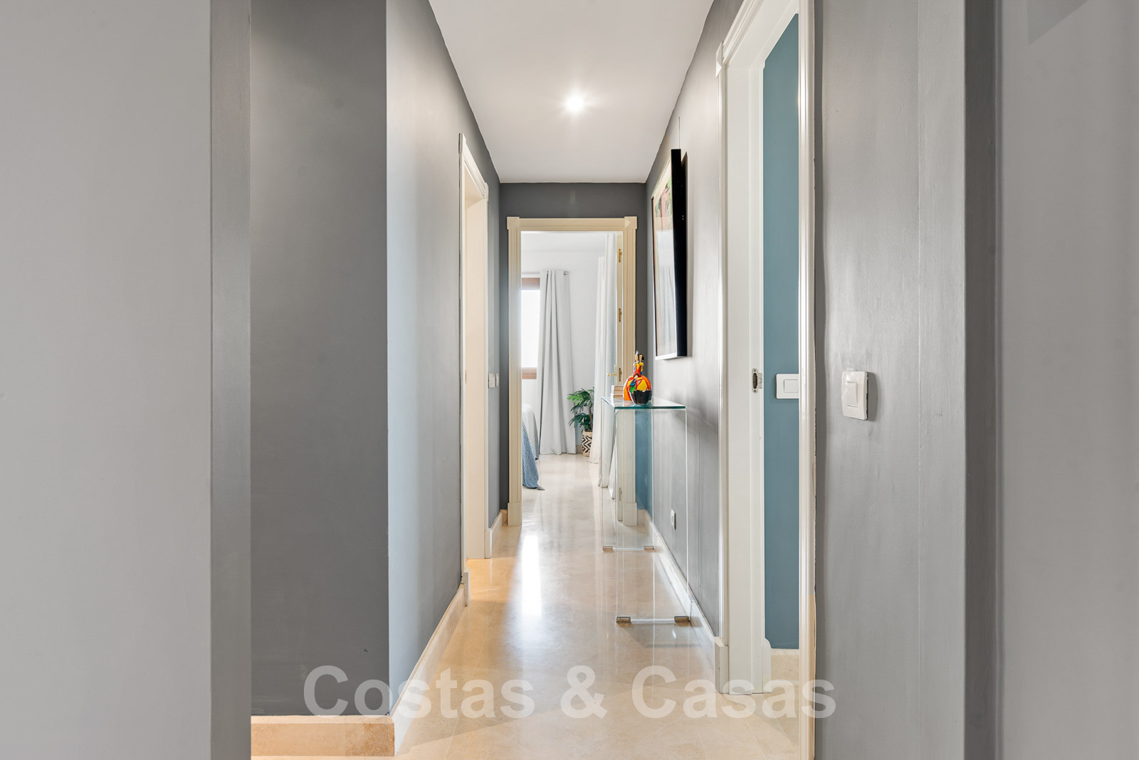 Spacieux appartement de 3 chambres à vendre, avec vue sur la mer, dans une communauté résidentielle calme et sécurisée sur le nouveau Golden Mile entre Marbella et Estepona