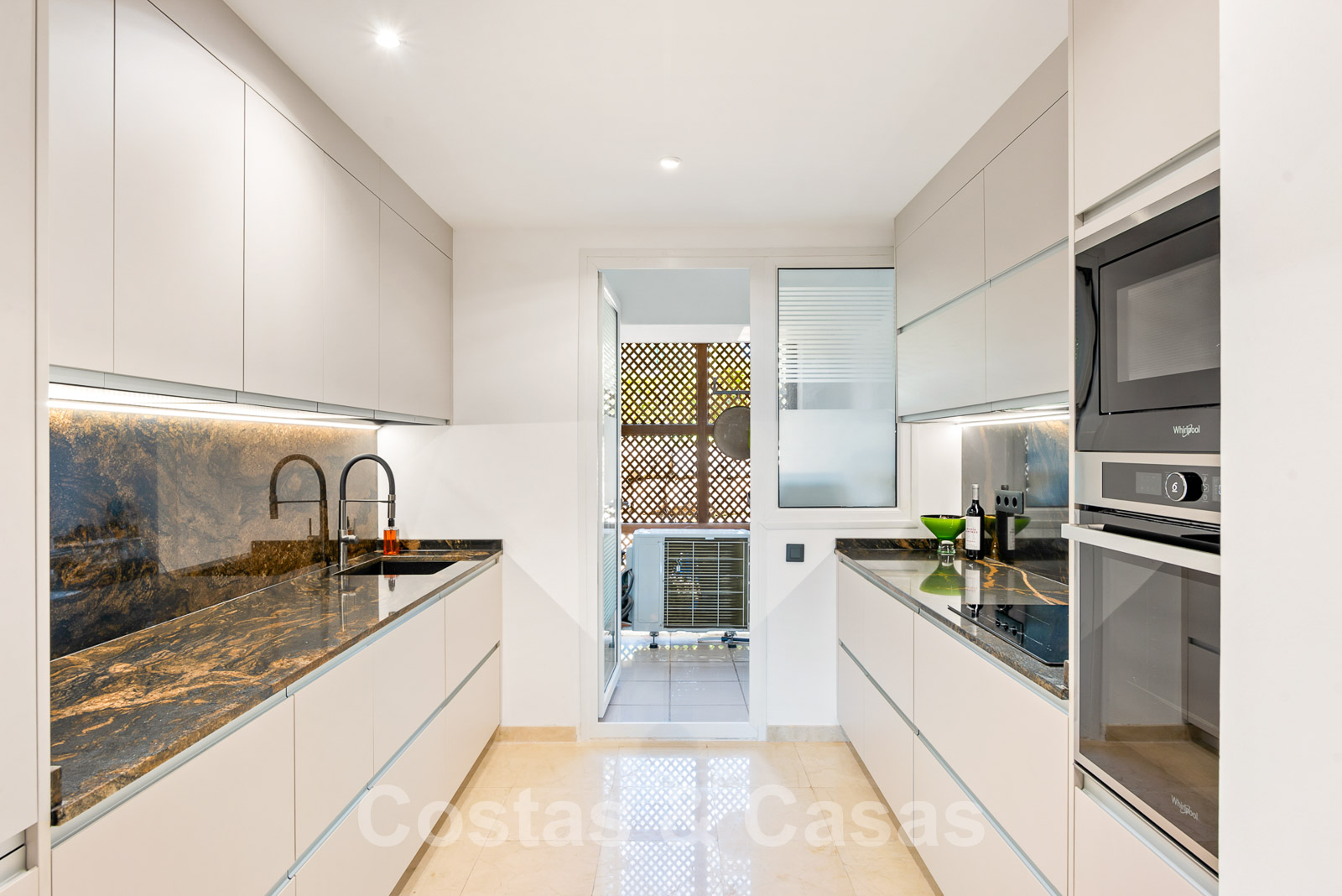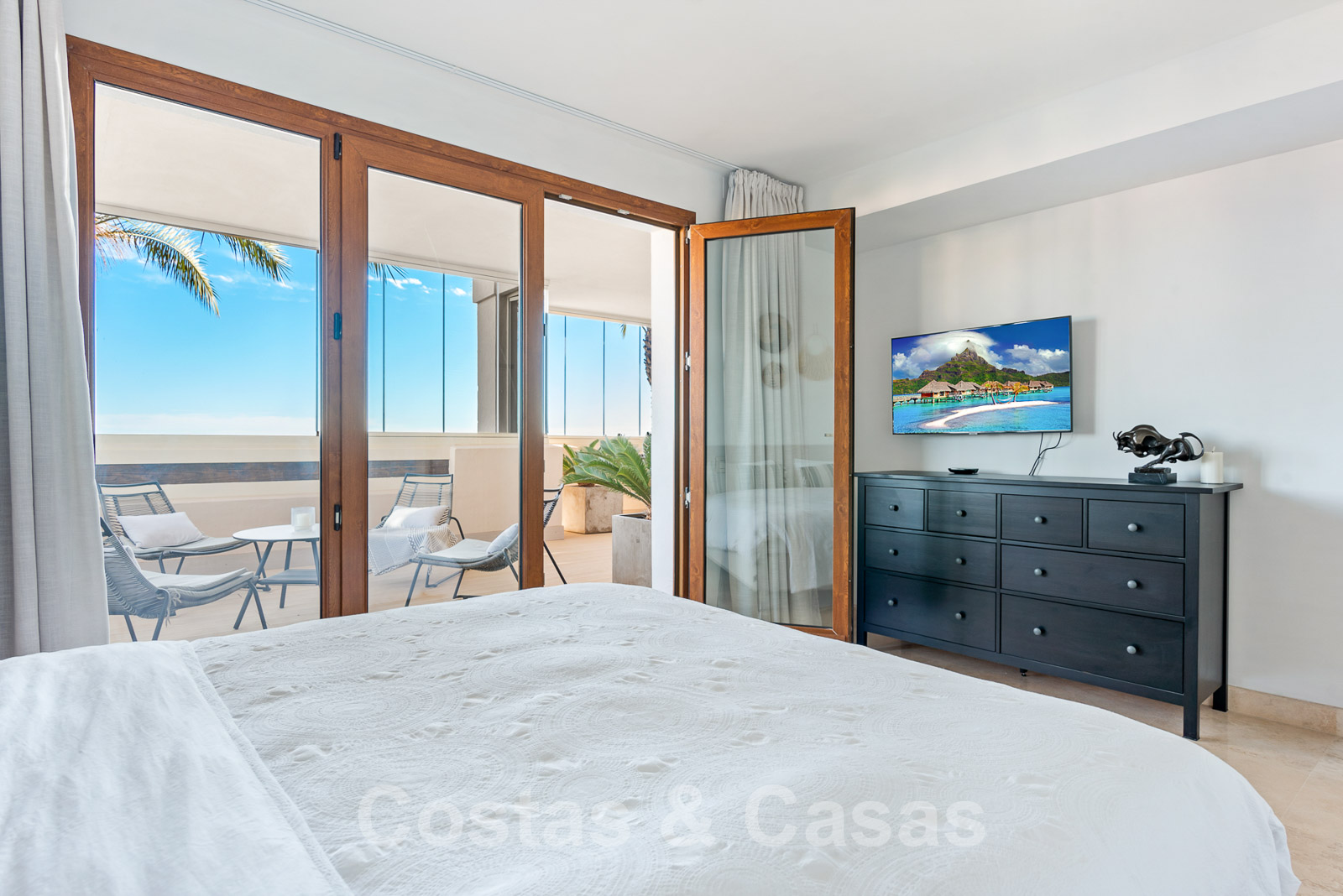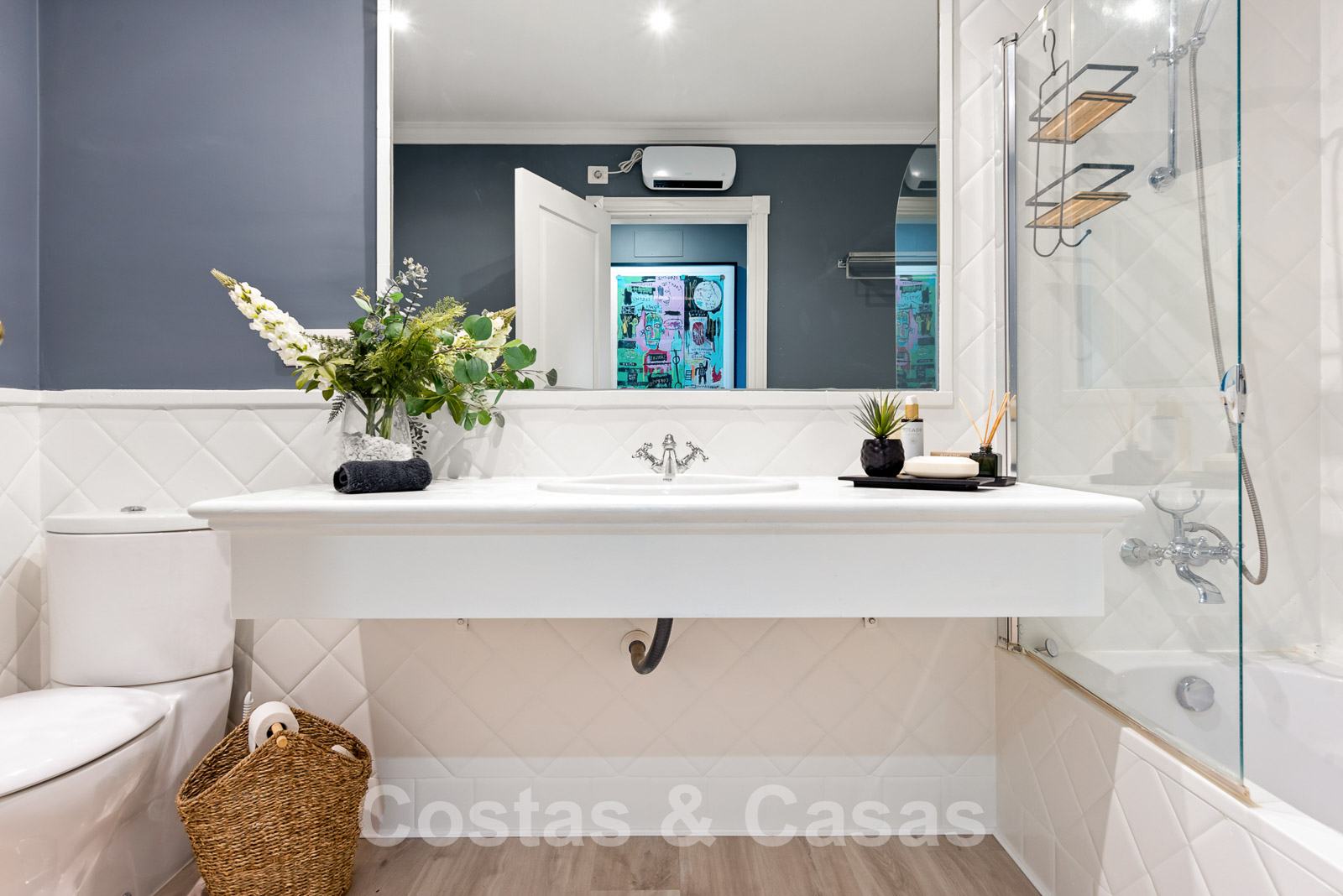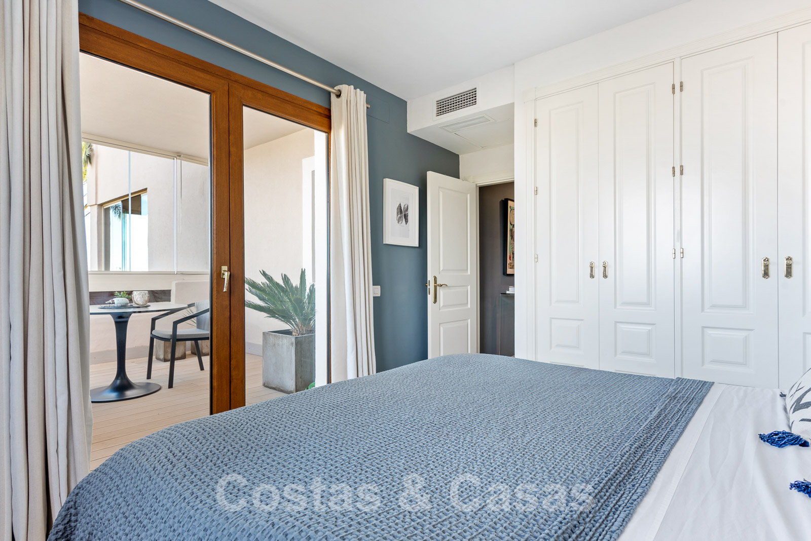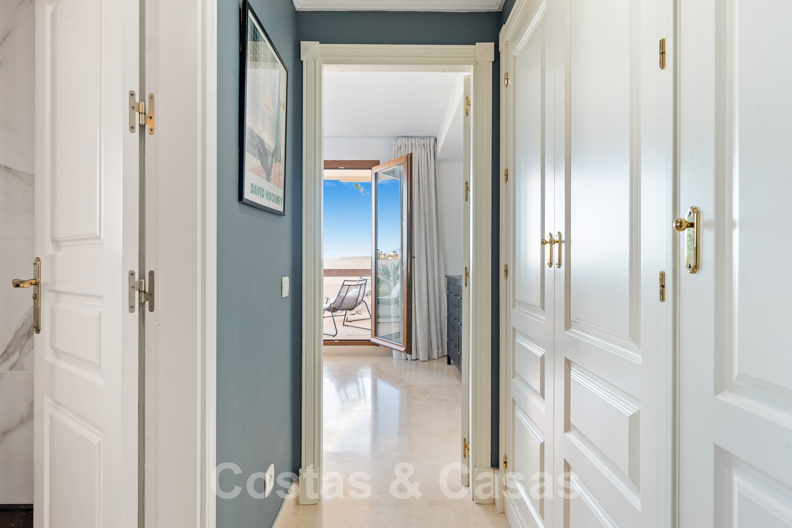 Spacieux appartement de 3 chambres à vendre, avec vue sur la mer, dans une communauté résidentielle calme et sécurisée sur le nouveau Golden Mile entre Marbella et Estepona