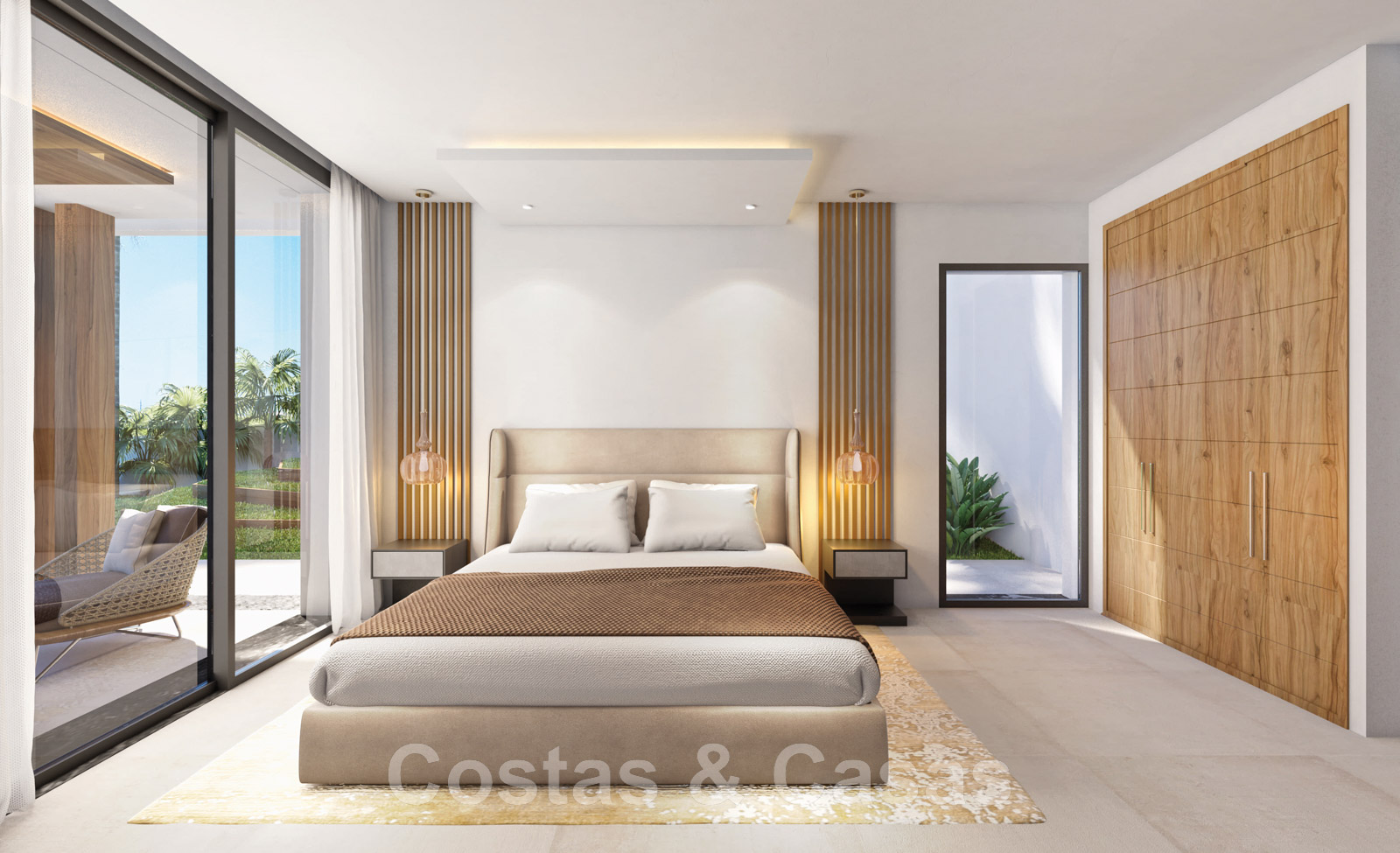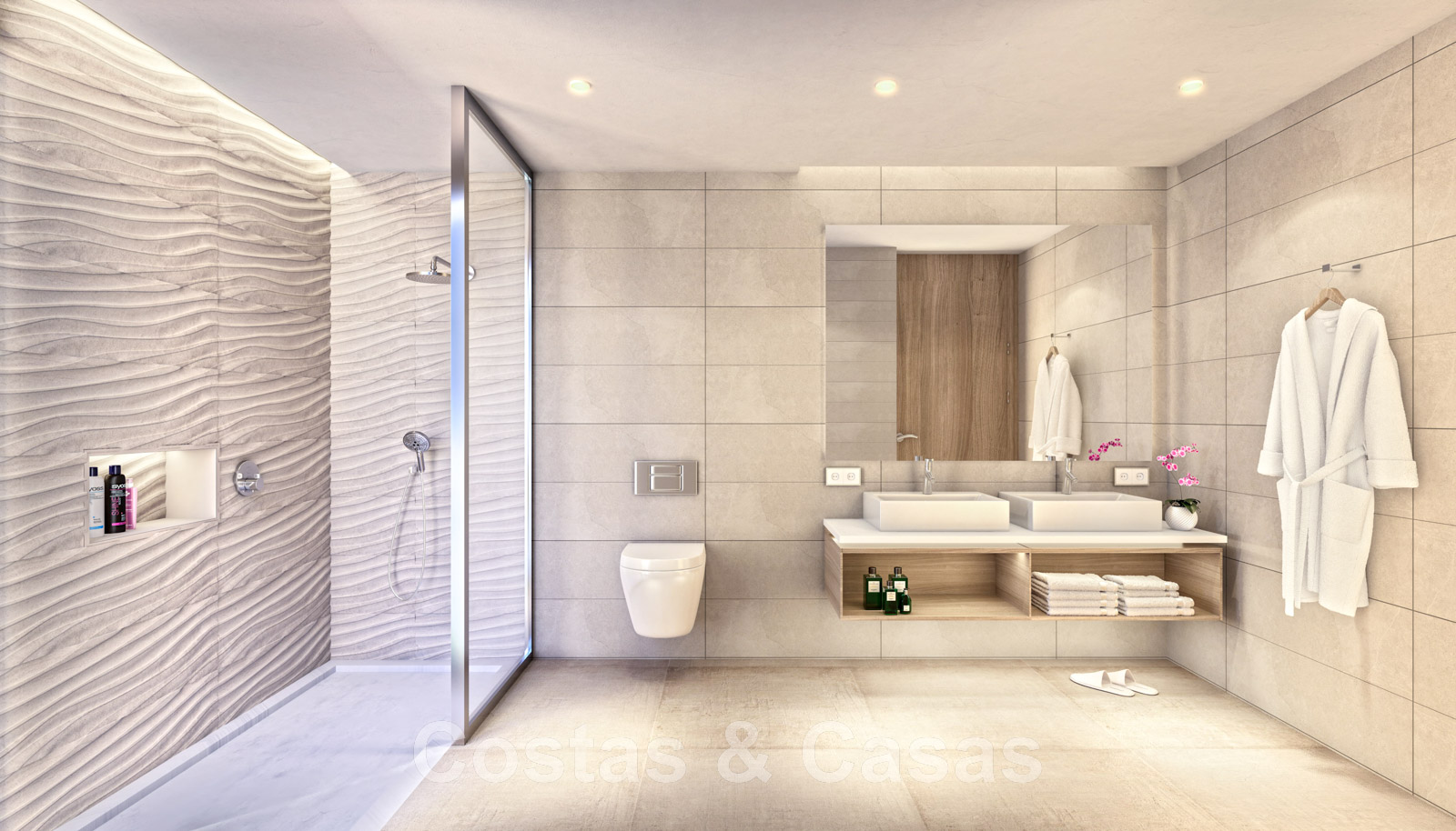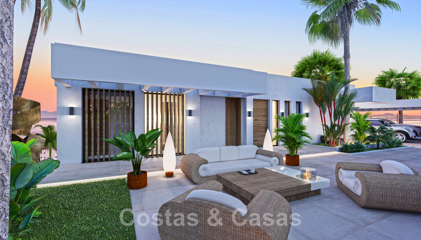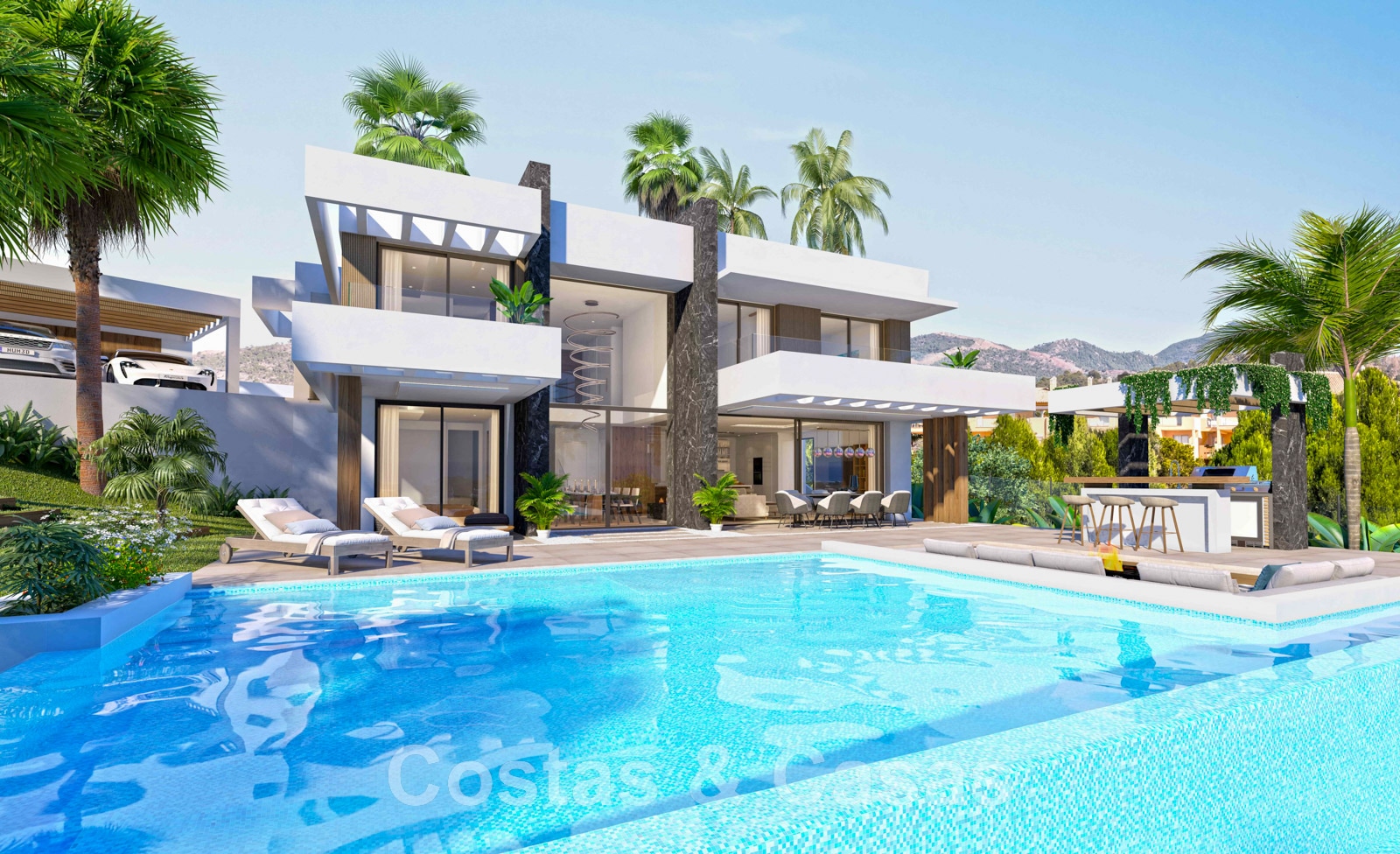 Des villas de luxe contemporaines flambant neuves à vendre, directement sur un terrain de golf sur le New Golden Mile, entre Marbella et Estepona