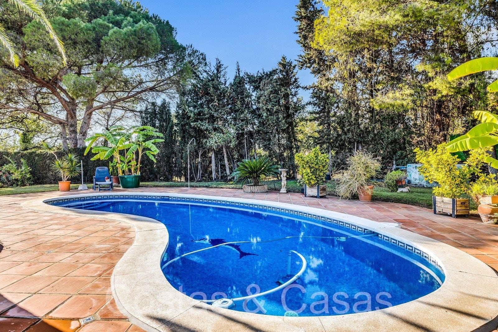 Vaste terrain en position surélevée entouré de verdure. Jardin clos avec plantes indigènes, jacuzzi et piscine privée avec plusieurs espaces de détente. Orienté du sud vers l'ouest. Magnifiques vues sur la vallée et la mer Méditerranée. Intimité absolue garantie.