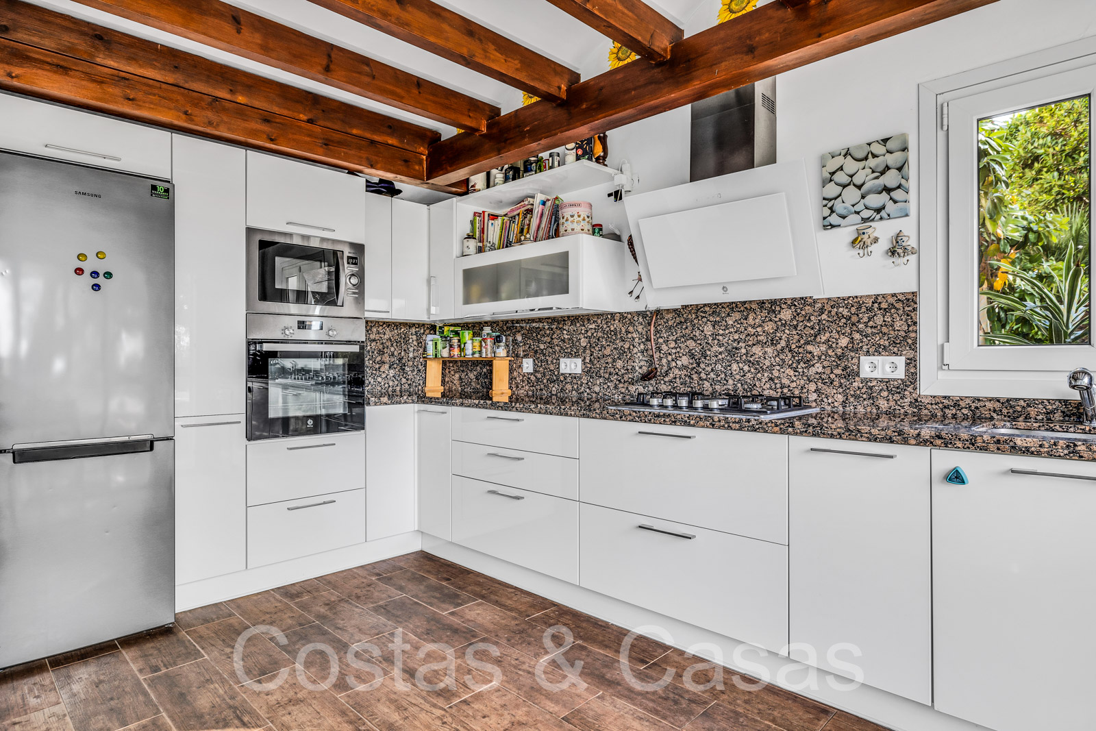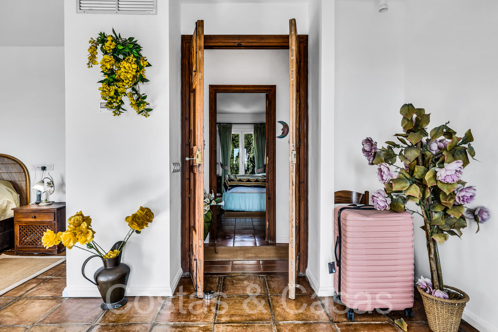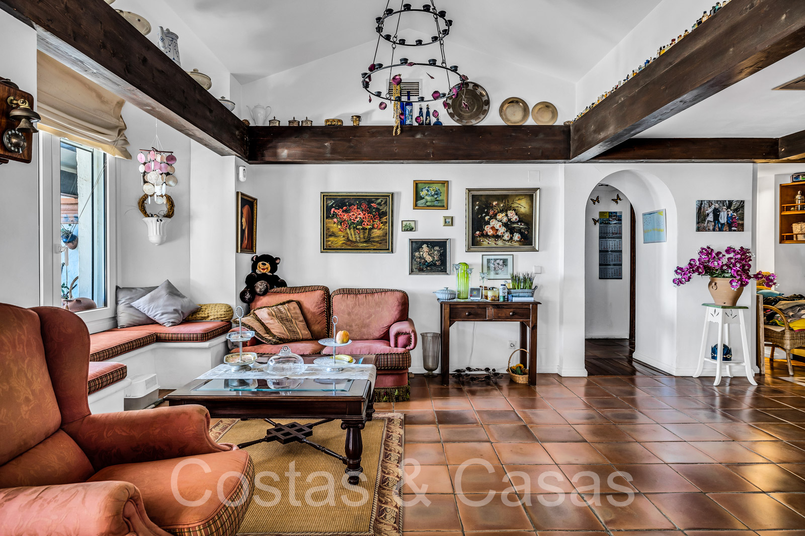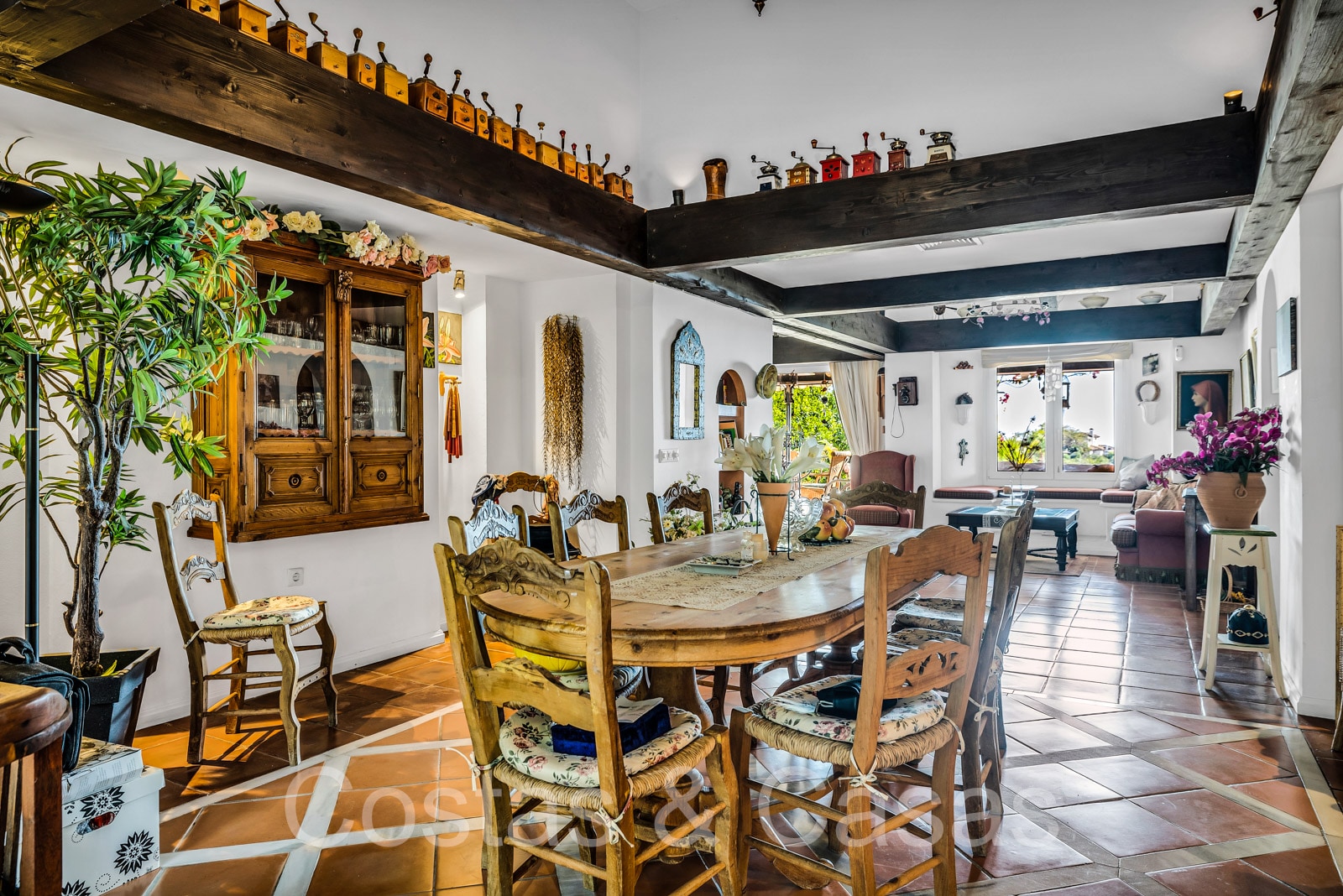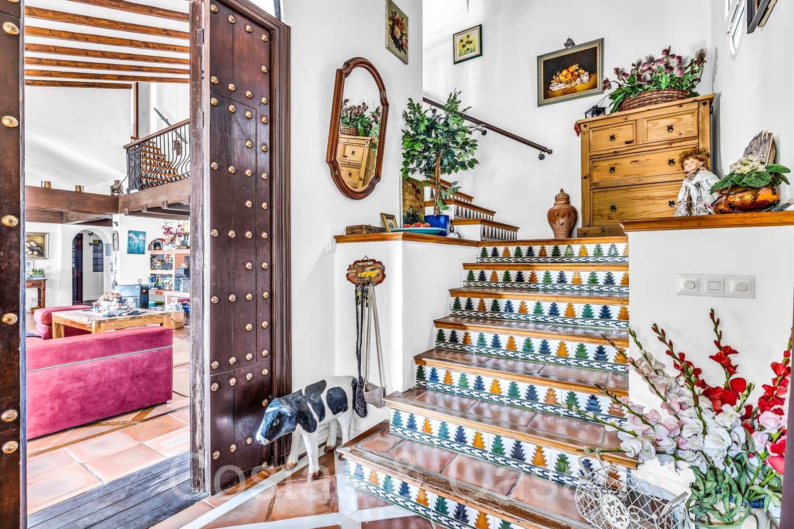 Villa individuelle de style architectural rustique et rural. Utiliser des éléments de construction authentiques et locaux. Intérieur chaleureux et charmant avec sols en terre cuite et plafonds voûtés avec poutres apparentes. Séjour spacieux avec salon TV et cheminée classique. 2ème coin salon. Cuisine moderne entièrement équipée. Coin repas séparé. Le palier du dernier étage s'ouvre sur l'espace de vie. 5 chambres, 4 salles de bains. La chambre principale possède sa propre salle de bain et son dressing. Débarras. Abri voiture pour 2 voitures.