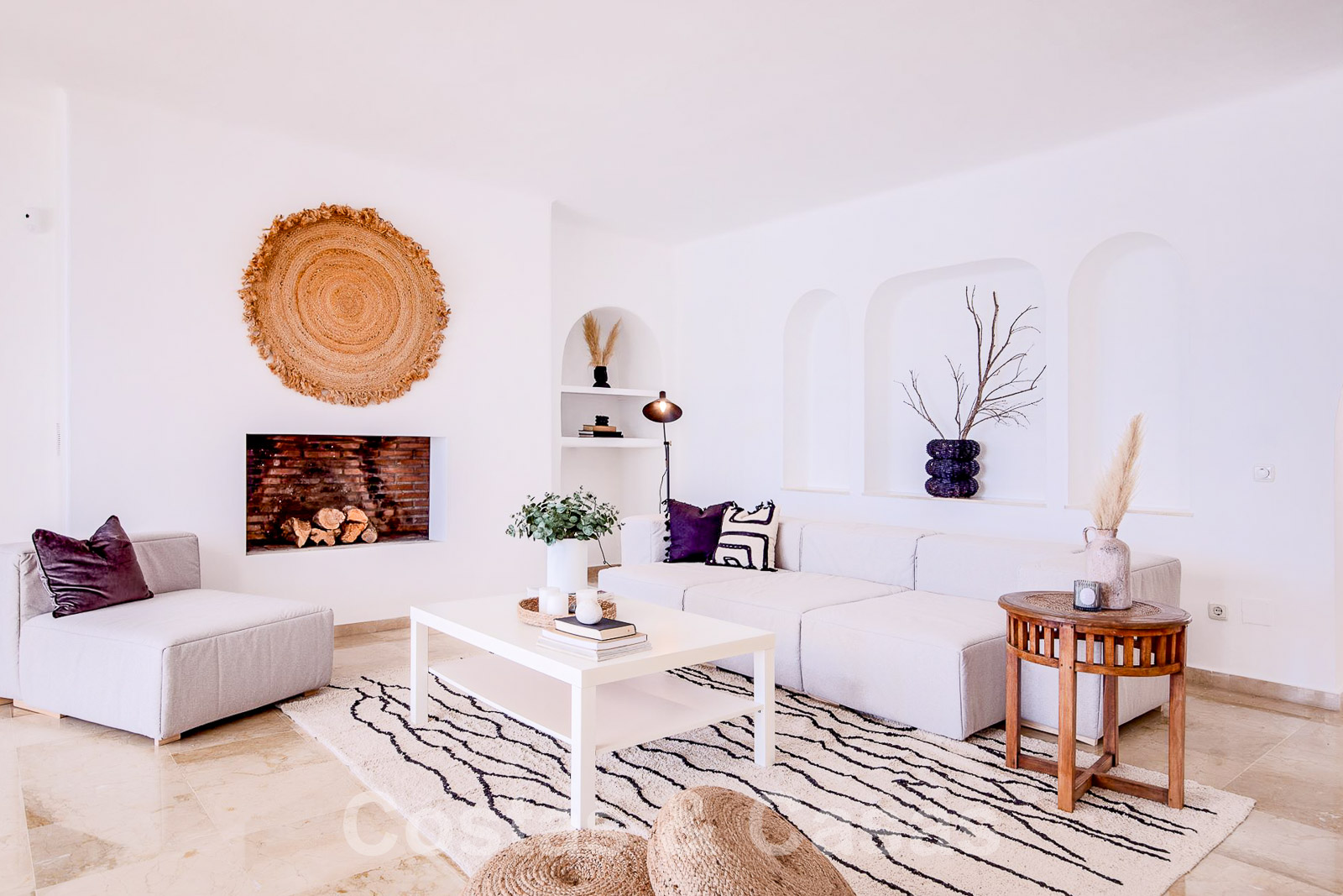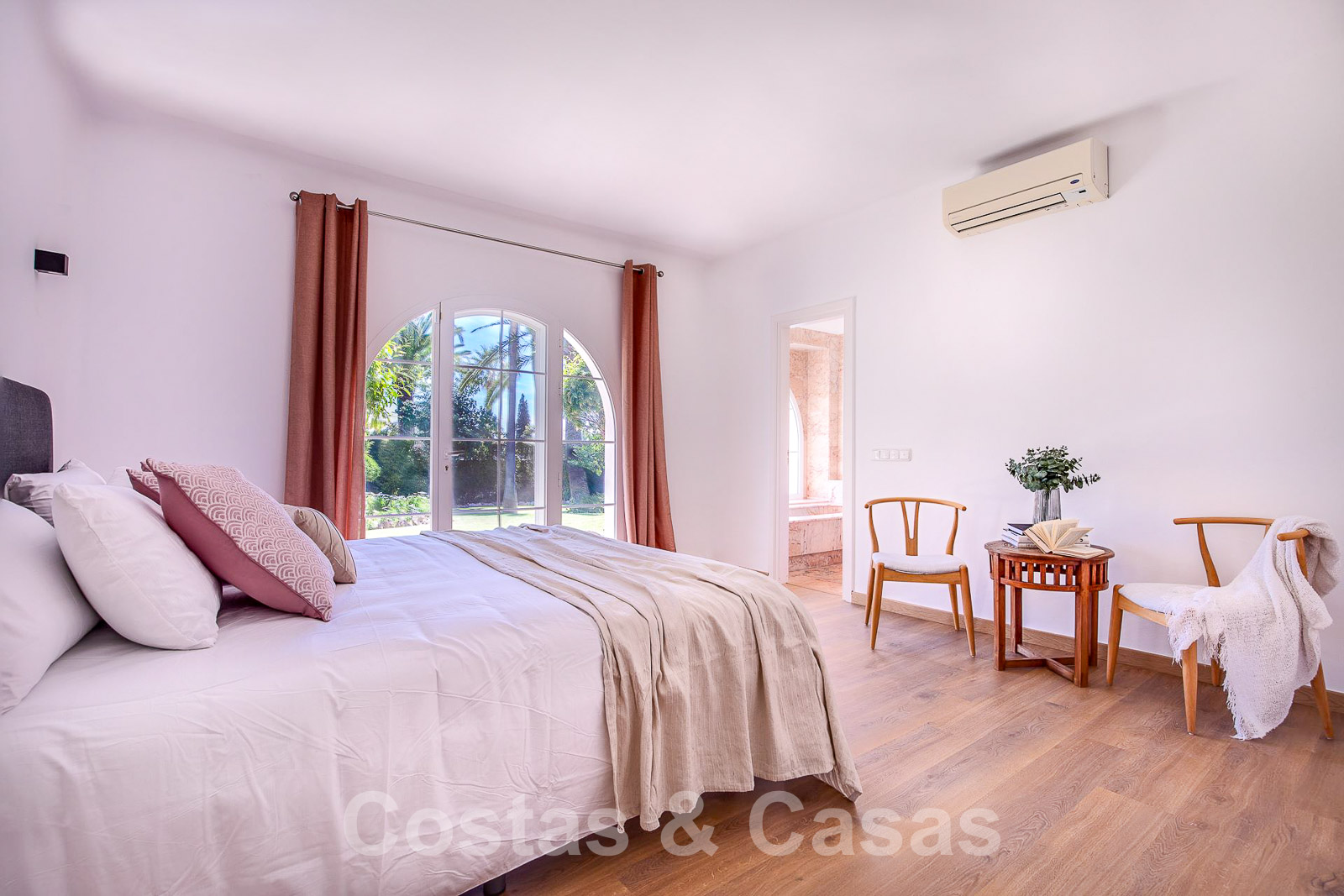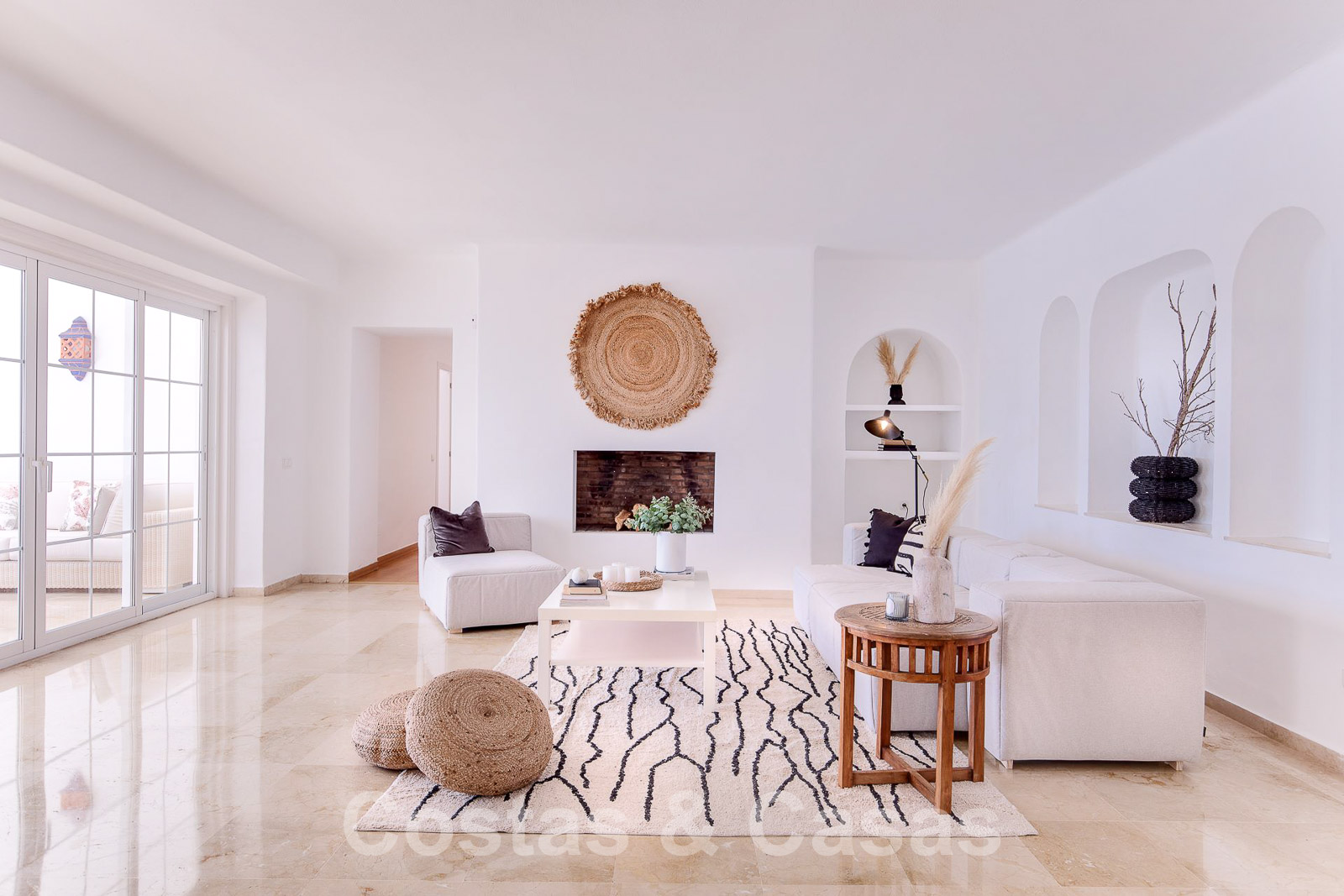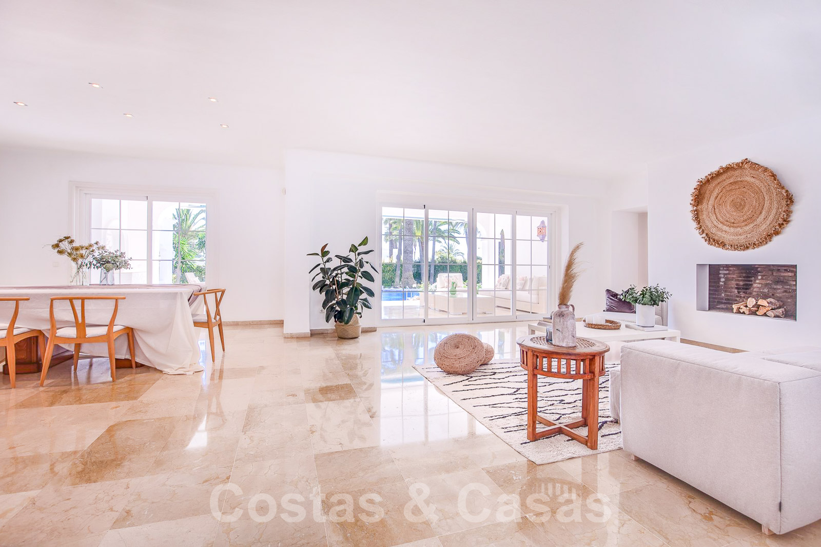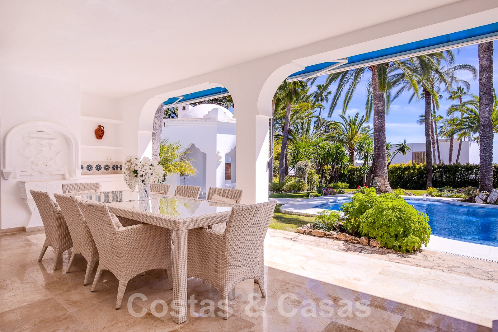 Barbecue. Sols en marbre et parquet en bois. Armoires encastrées. Climatisation. Cheminée. Auvents sur la terrasse. ...