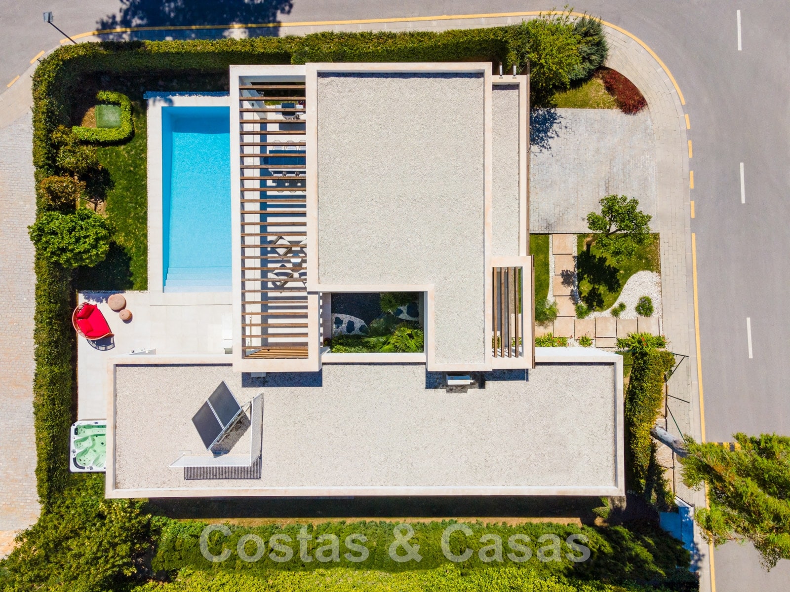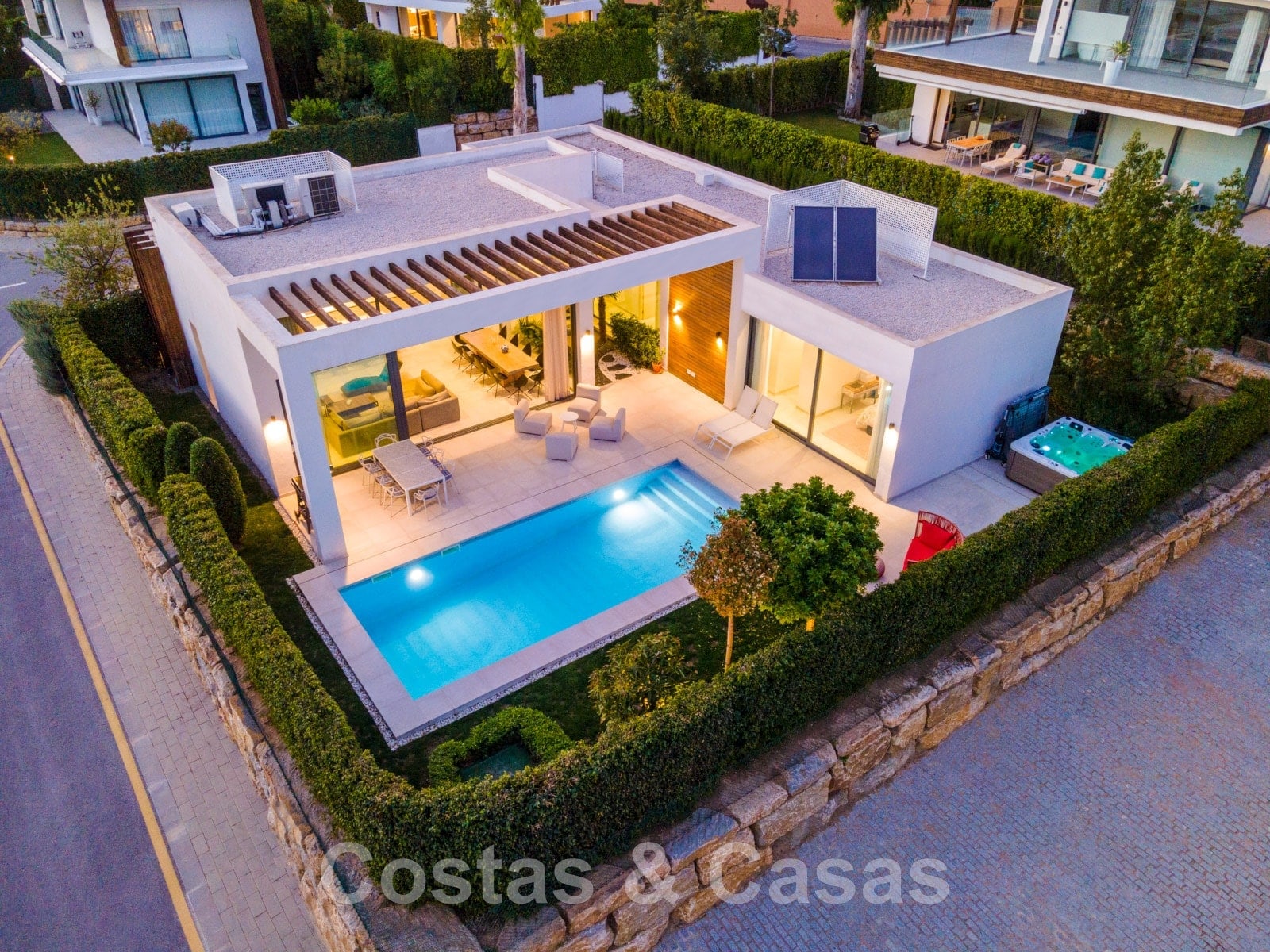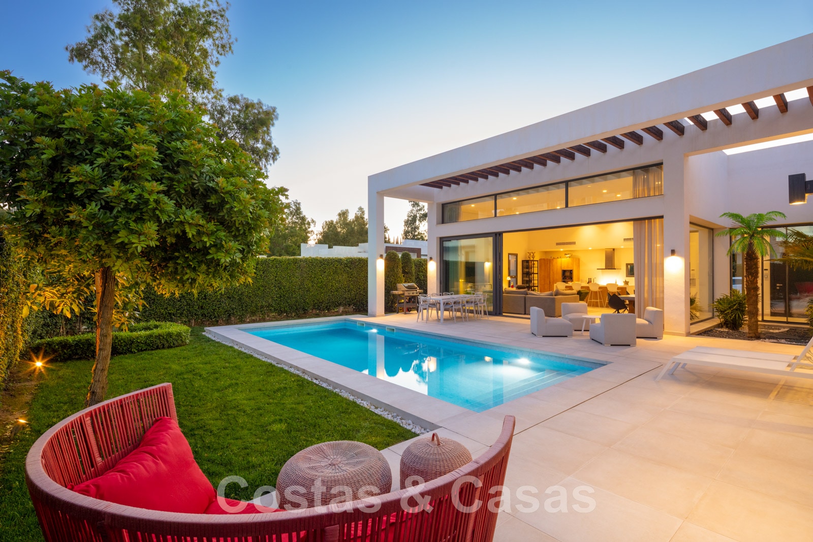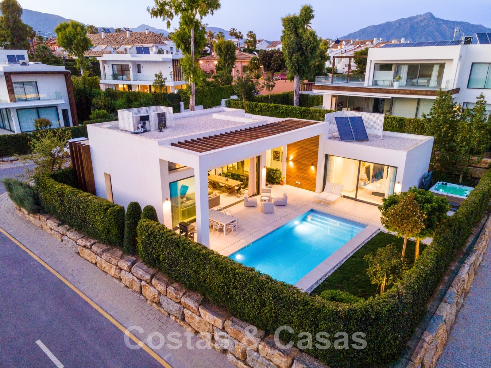 Située au calme dans un quartier résidentiel fermé au centre du New Golden Mile.