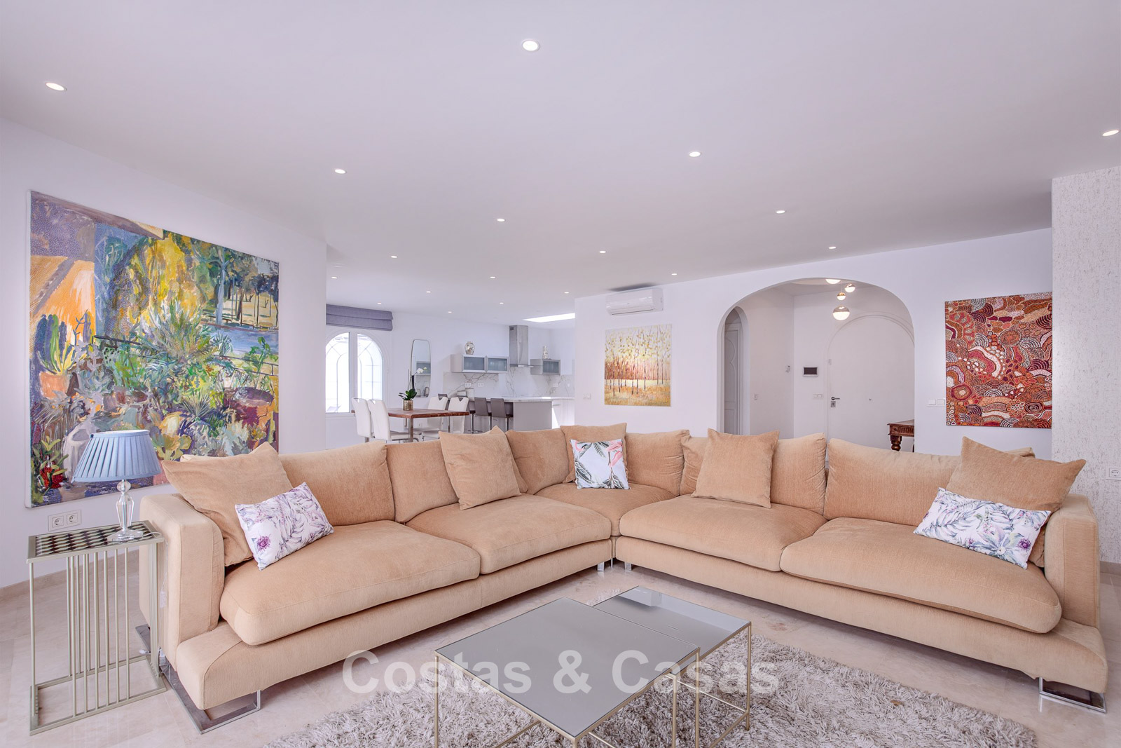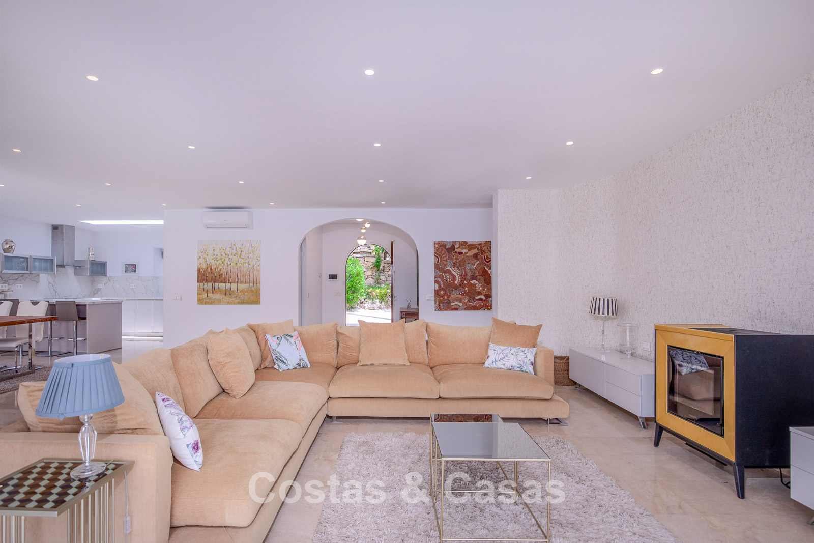 Villa espagnole à vendre avec intérieur contemporain, en bord de mer entre Marbella et Estepona