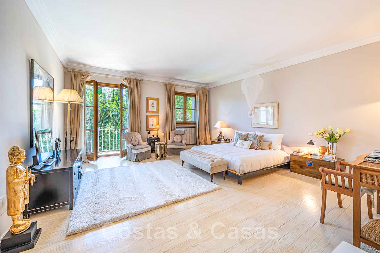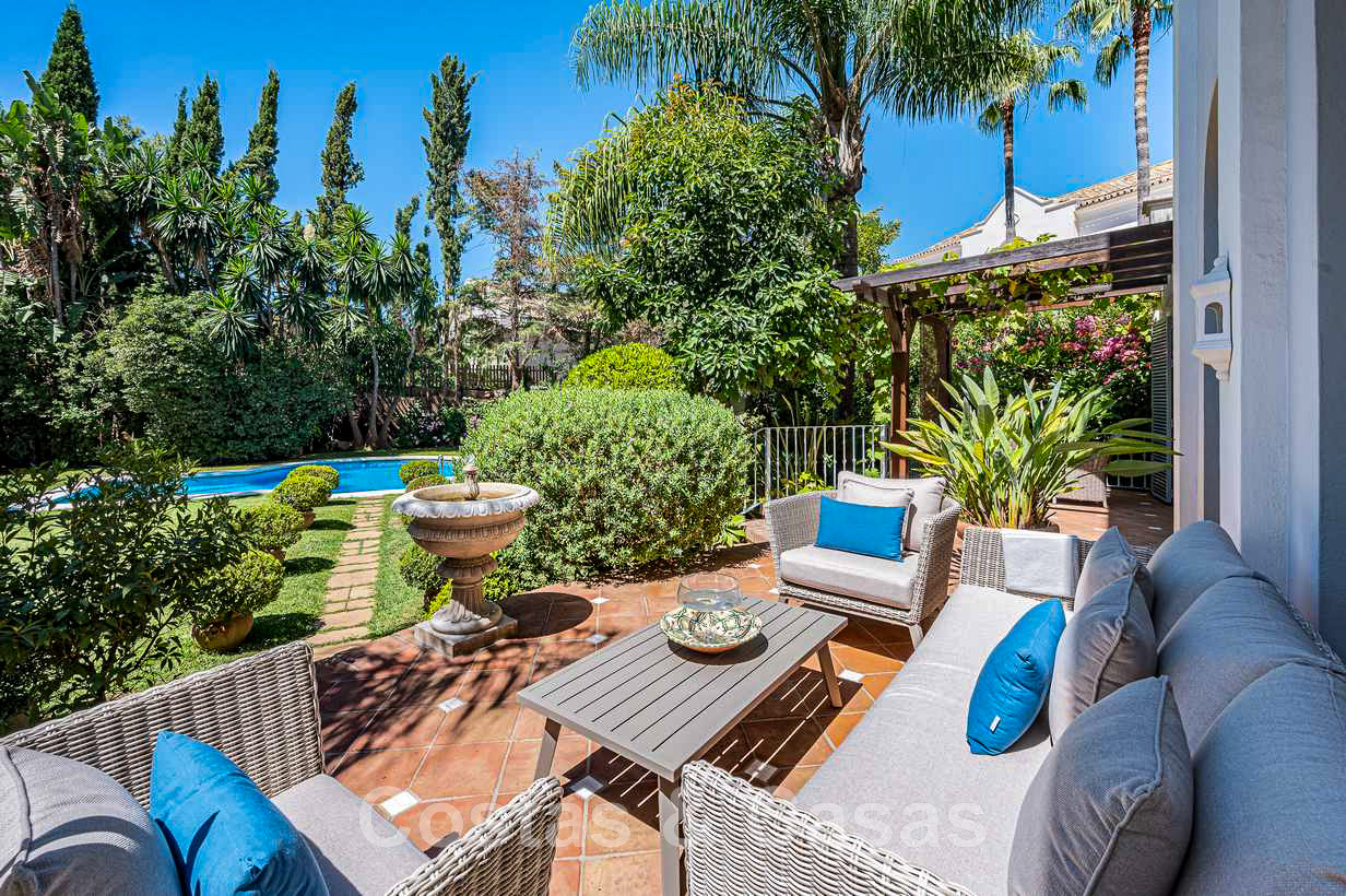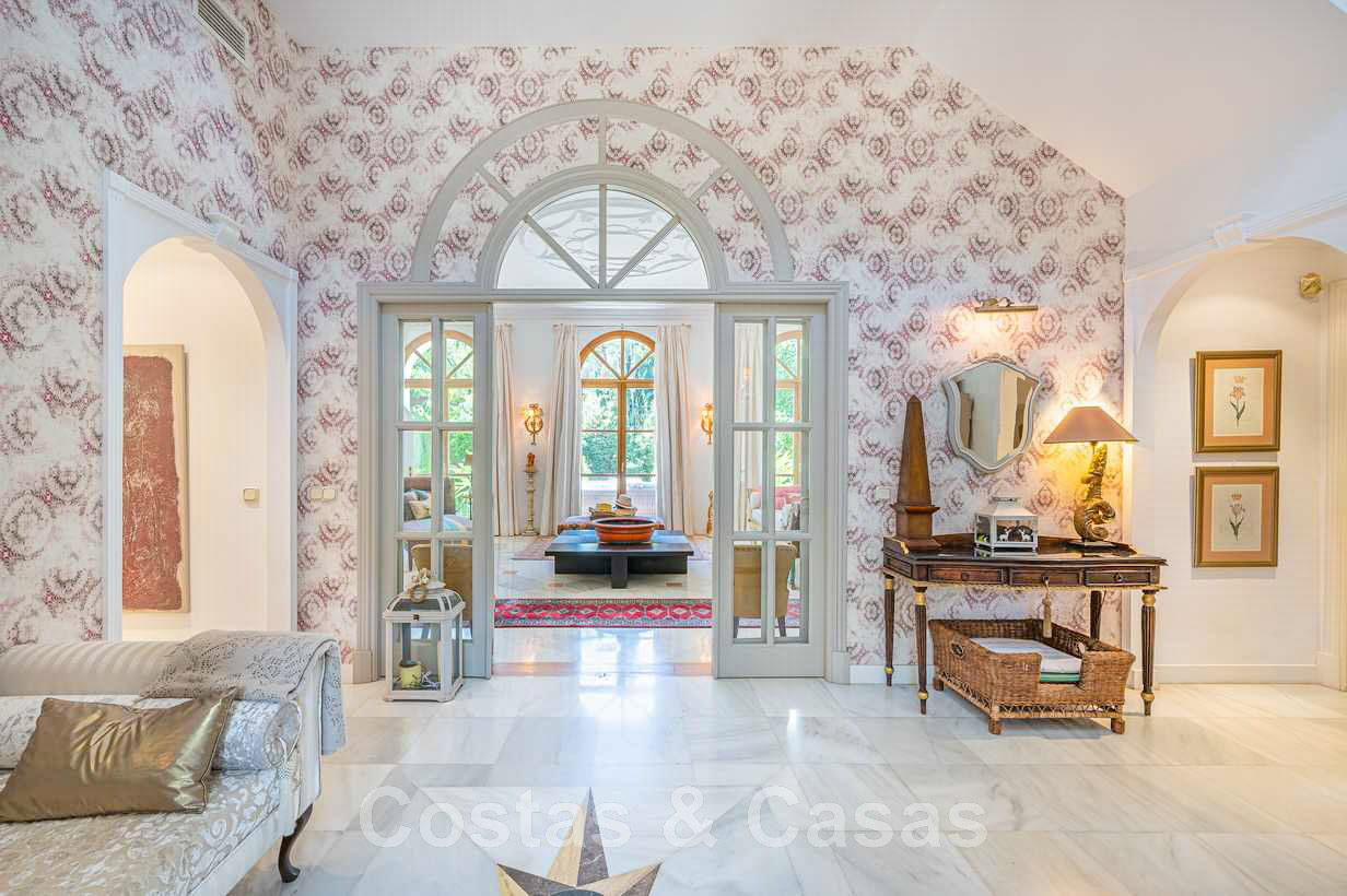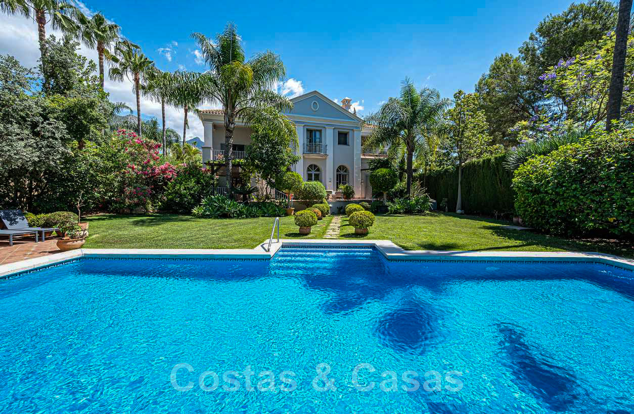Villa familiale romantique de style classique à vendre, dans l'un des quartiers résidentiels les plus exclusifs et protégés de la Golden Mile de Marbella