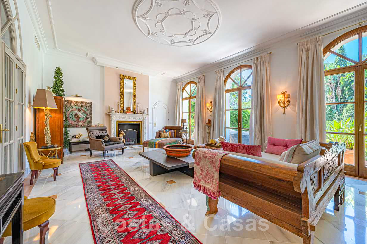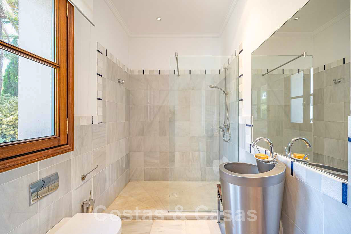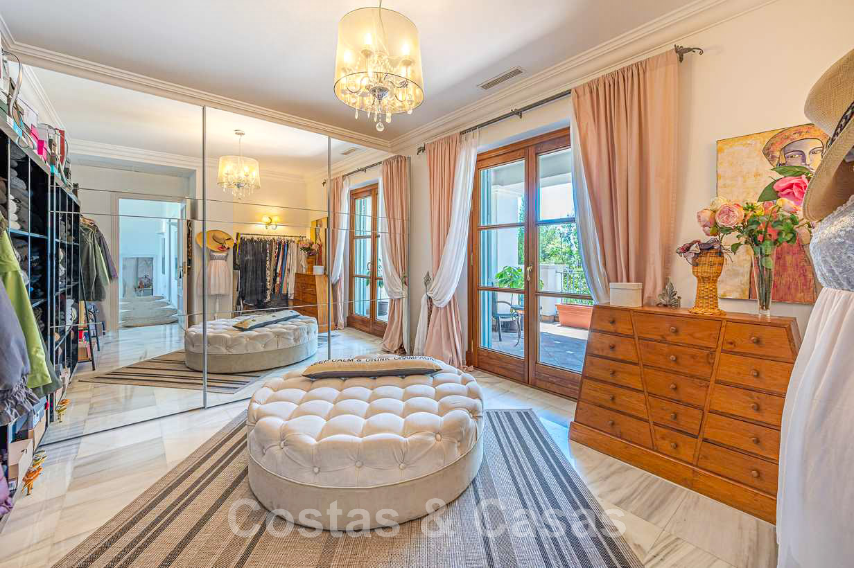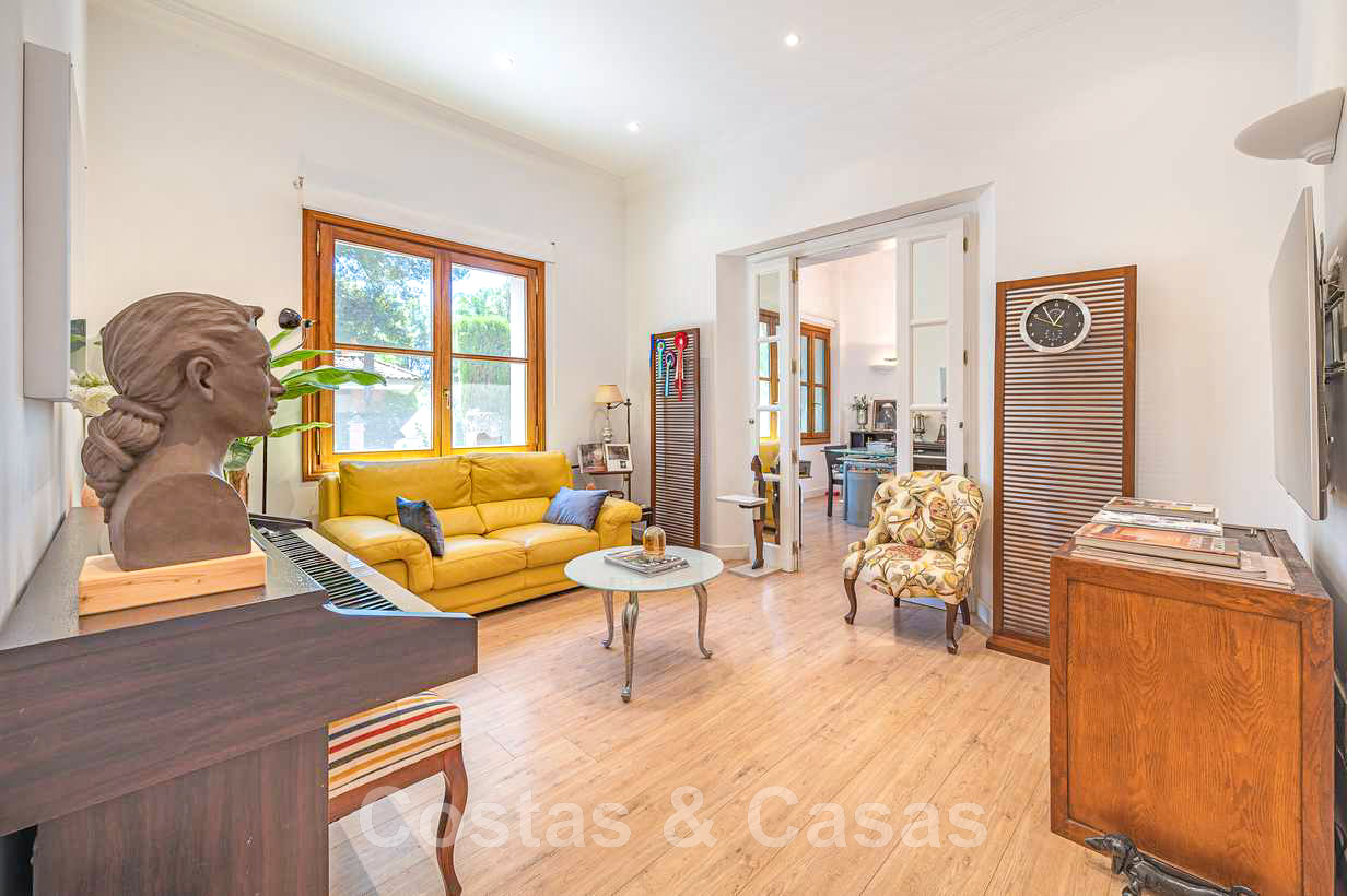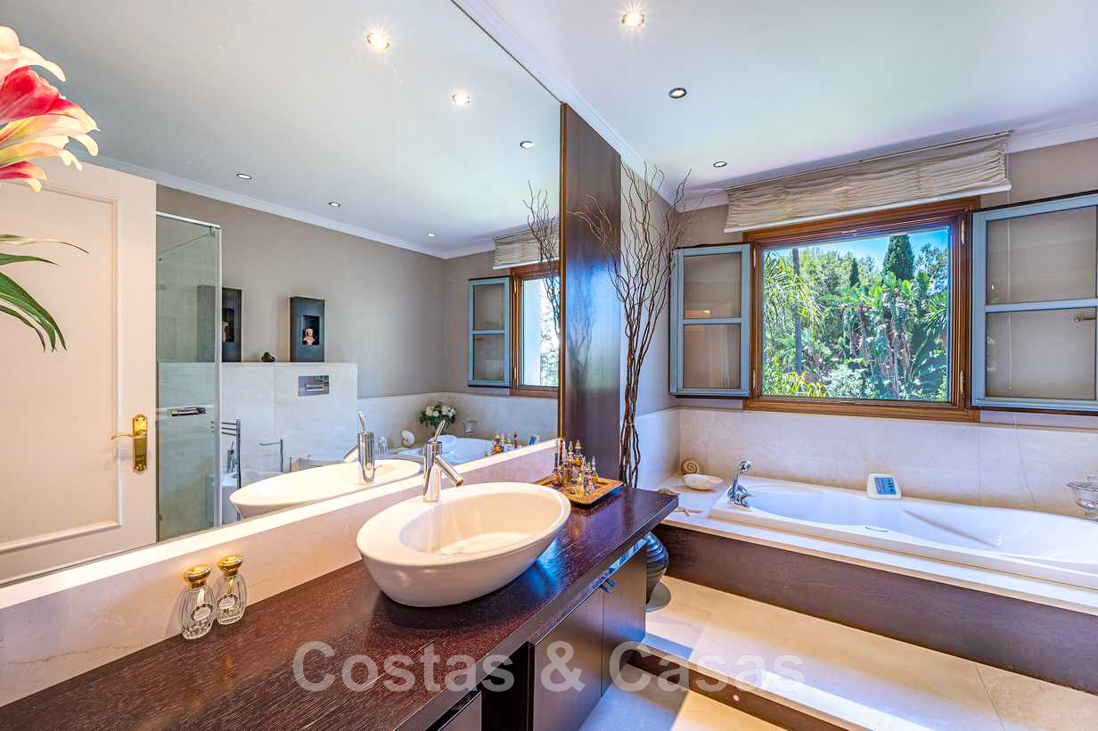 Villa familiale romantique de style classique à vendre, dans l'un des quartiers résidentiels les plus exclusifs et protégés de la Golden Mile de Marbella