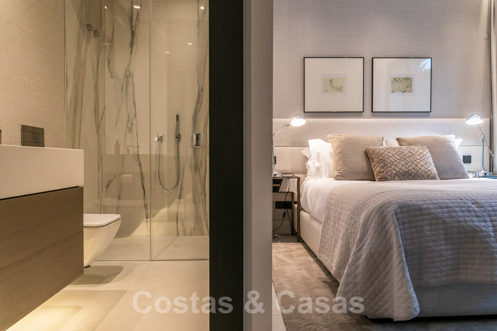 4 chambres spacieuses avec armoires encastrées et 4 salles de bain.