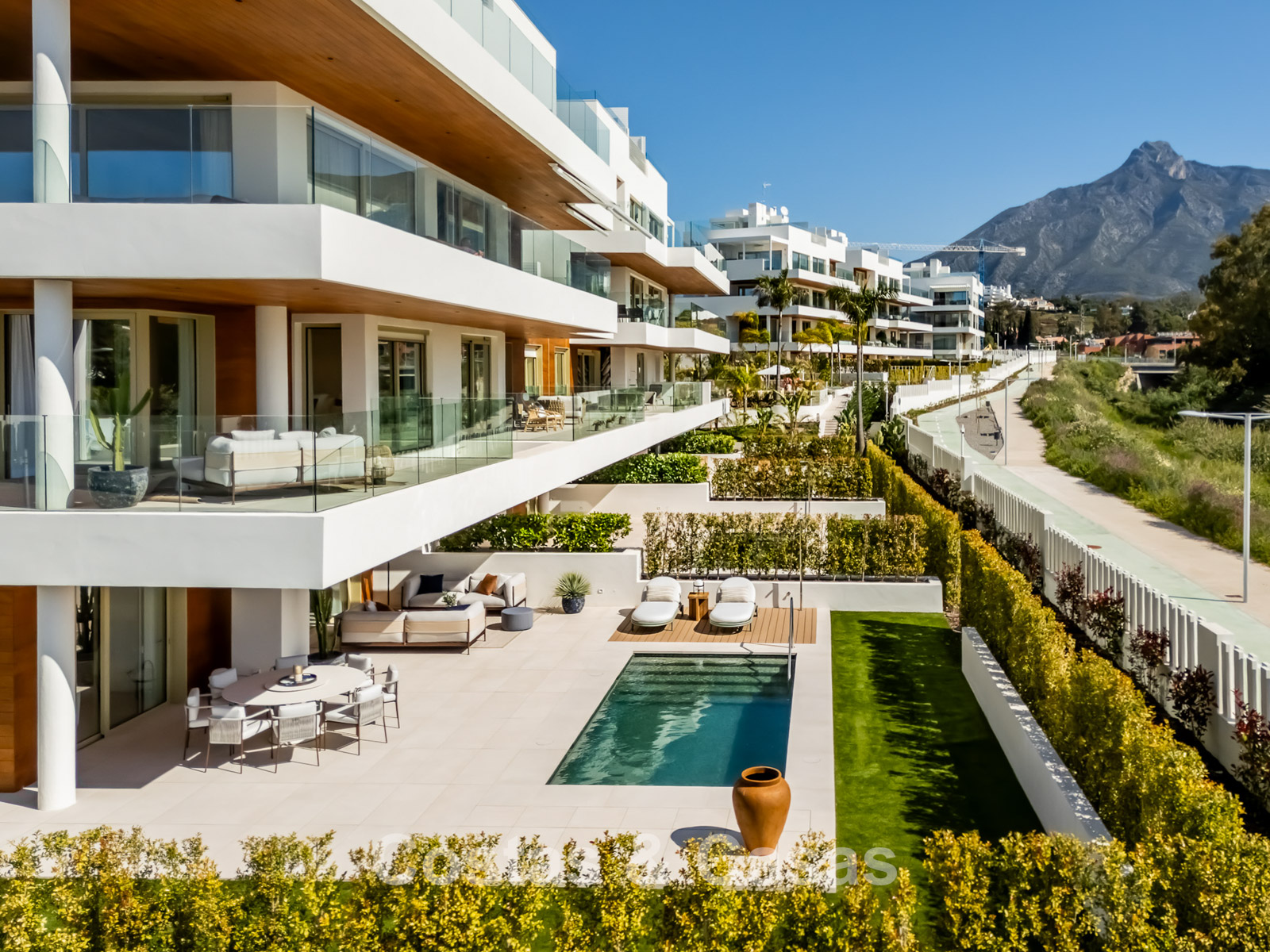Situé dans un complexe résidentiel moderne et exclusif, sur le prestigieux Golden Mile de Marbella. À seulement 300 mètres de la plage et à environ 1 kilomètre de la célèbre marina de Puerto Banús. À quelques minutes à pied ou en voiture des complexes hôteliers de luxe cinq étoiles Puente Romano et du Marbella Club Hotel. En tant que résident de la résidence, vous profiterez de plus de 5 000 m² de jardins paysagers, d'une grande piscine extérieure commune et d'un centre de bien-être exclusif avec piscine intérieure chauffée, spa, sauna, hammam et salle de sport entièrement équipée.