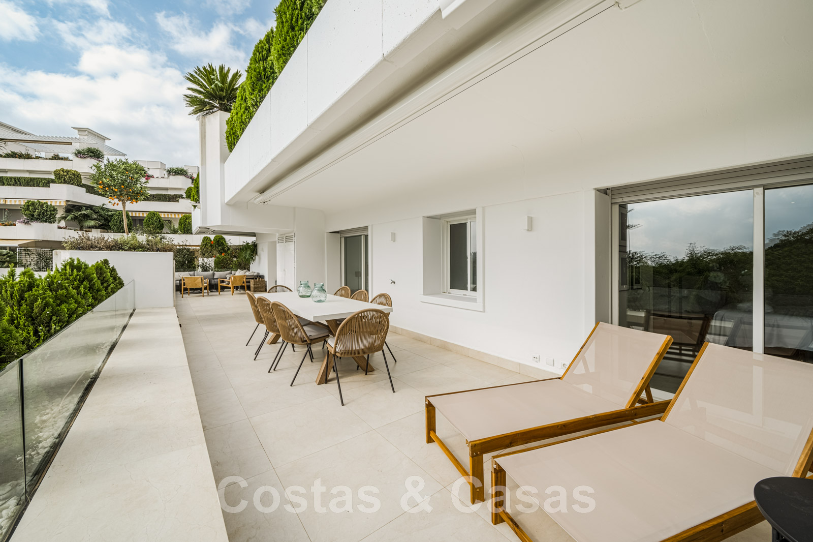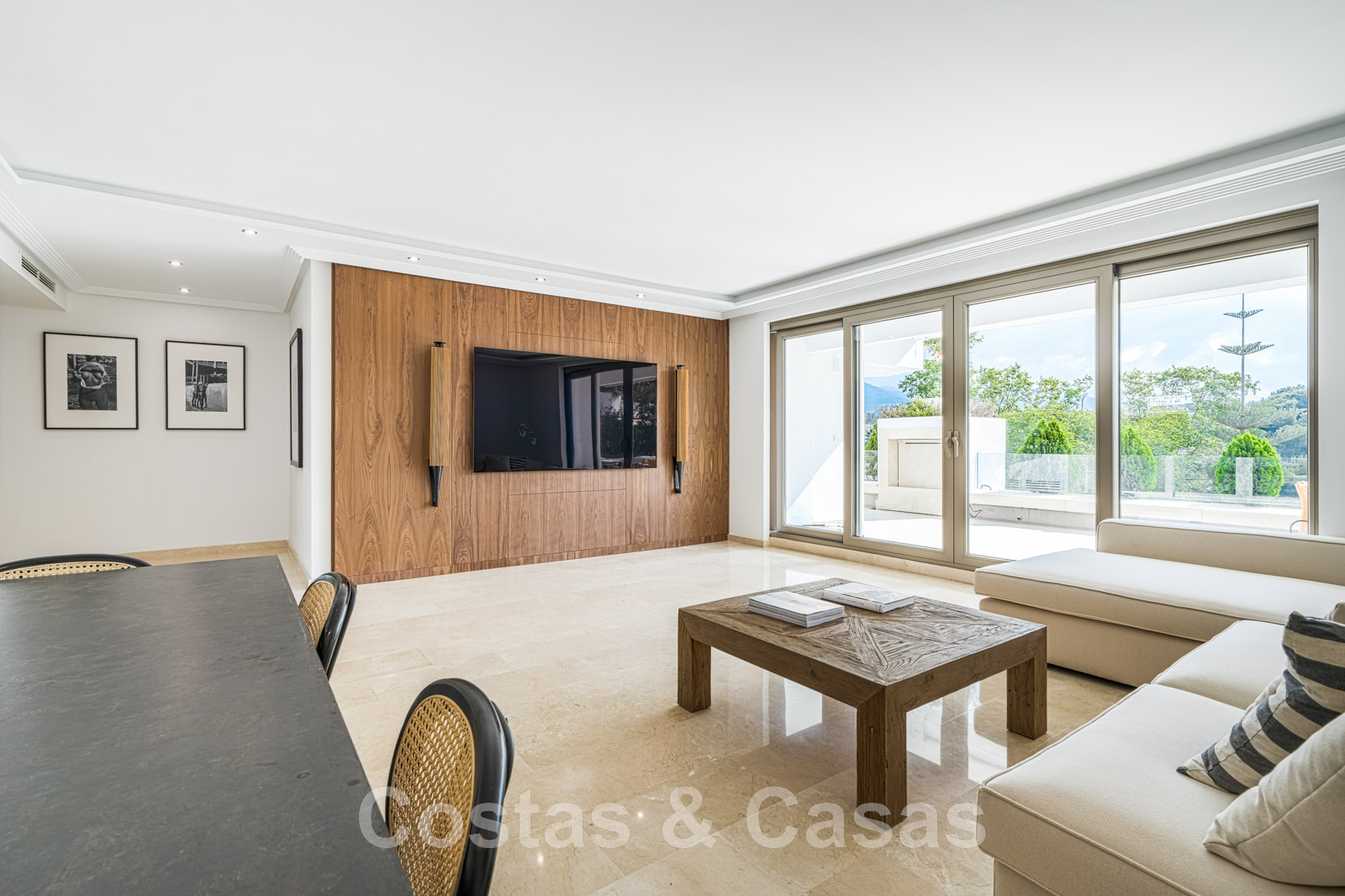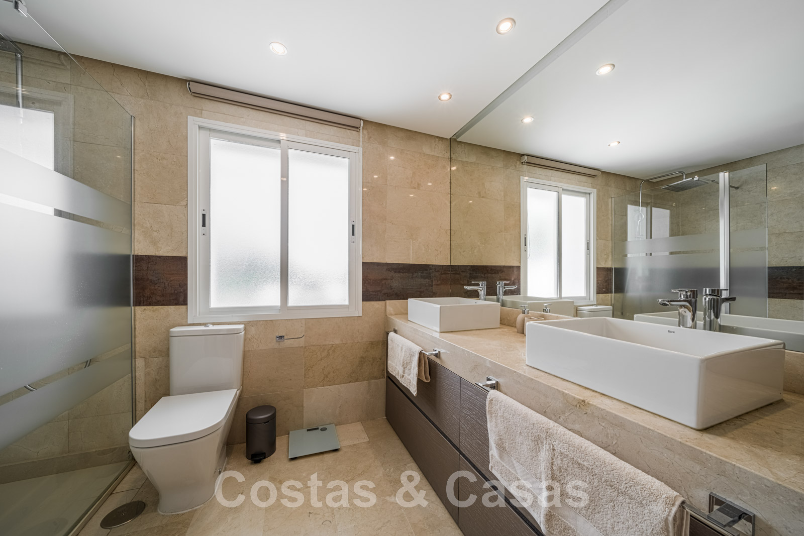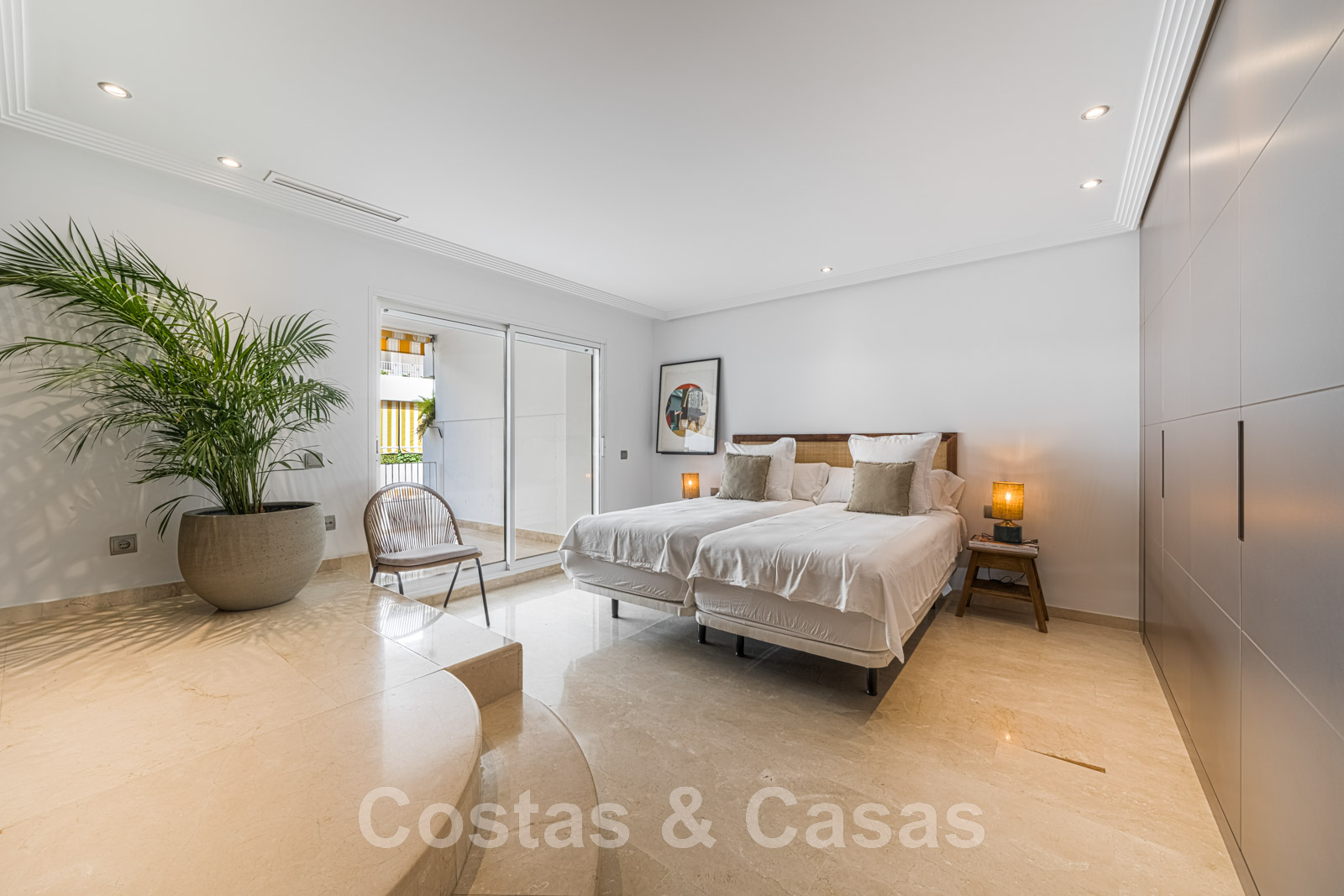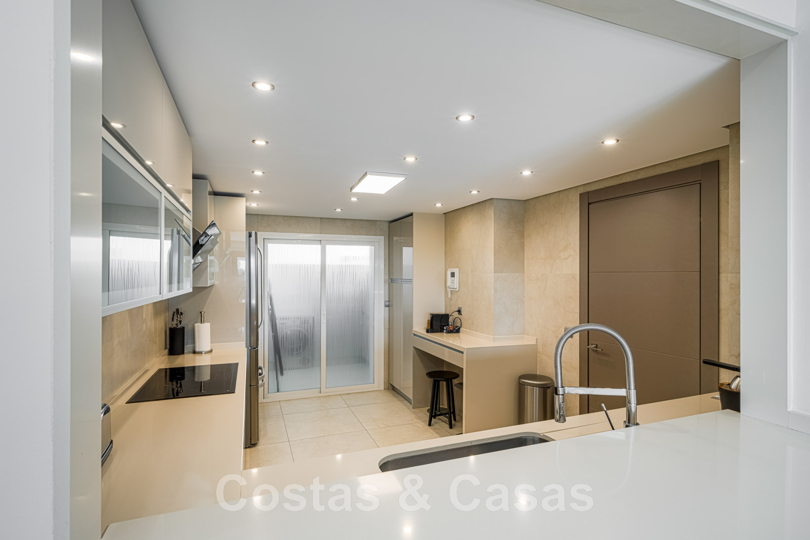 Appartement à vendre avec un décor contemporain, 3 chambres et salles de bains, sur le Golden Mile de Marbella.