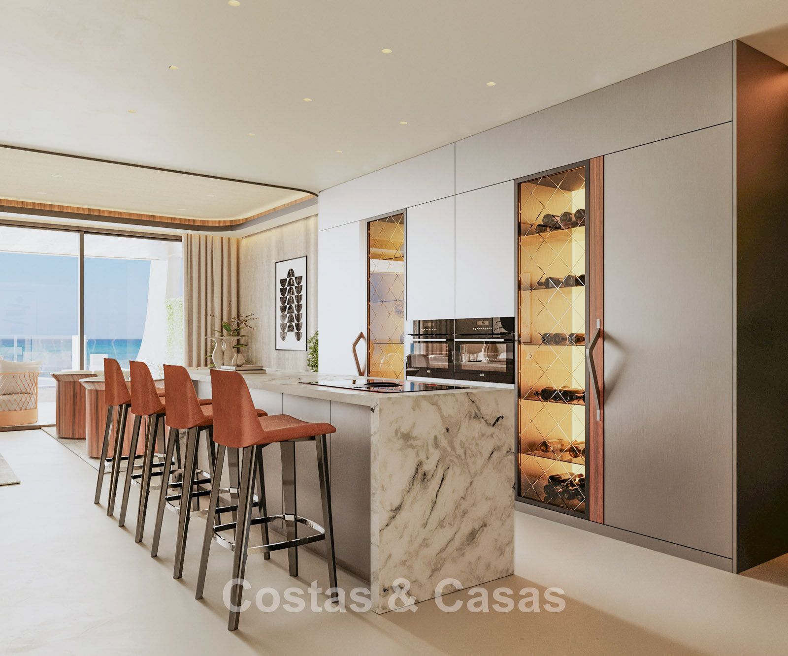 Vue panoramique sur la mer depuis les penthouses en duplex.