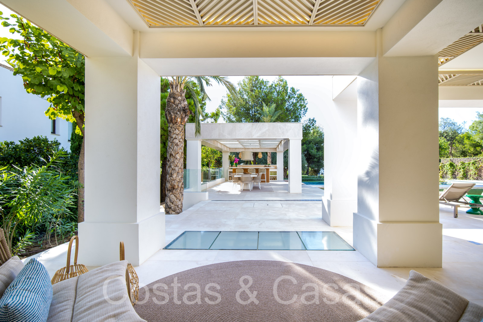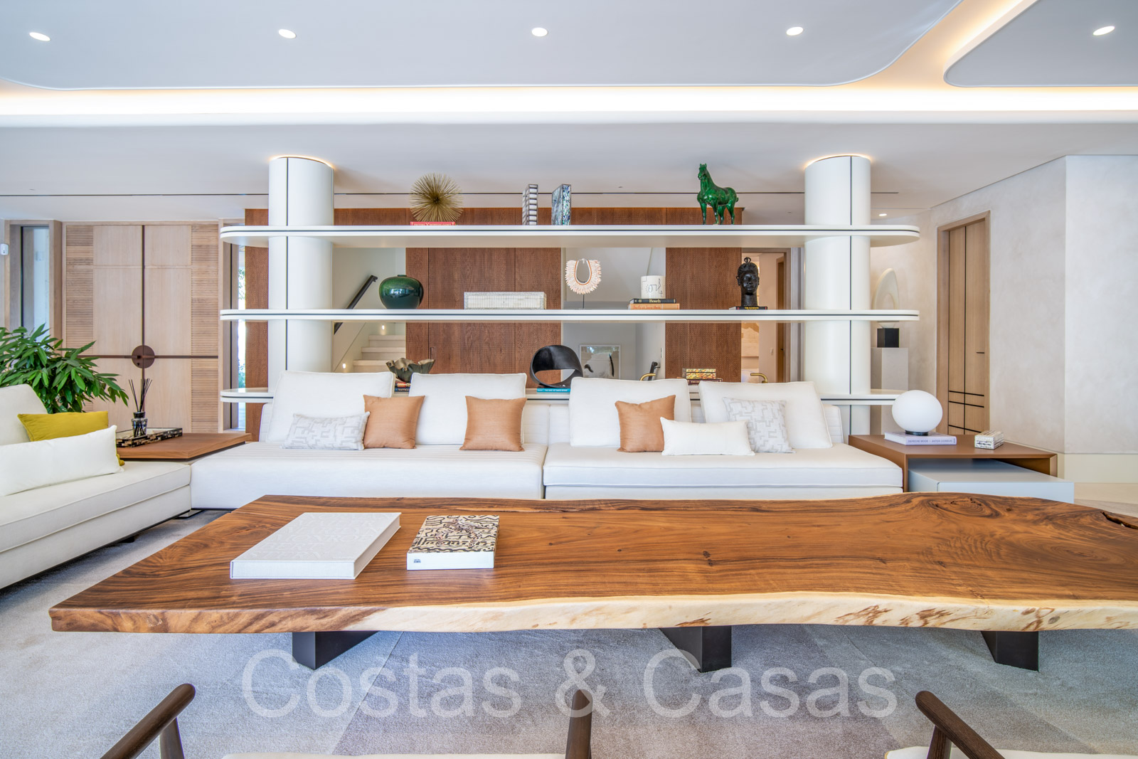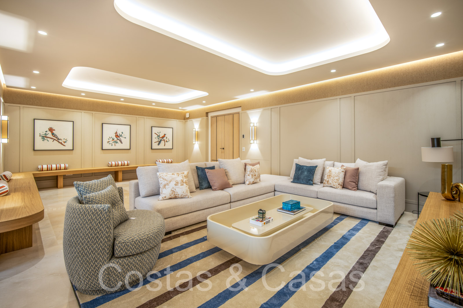 Villa contemporaine individuelle en excellent état. Utilisation de matériaux de haute qualité et finition raffinée. Les hautes fenêtres coulissantes avec cadres encastrés assurent un flux fluide entre les espaces intérieurs et extérieurs et génèrent également beaucoup de lumière naturelle. L'intérieur a été décoré par le célèbre Pedro Peña et se compose d'une palette de couleurs neutres. Salon ouvert. Cuisine sur mesure, entièrement équipée avec îlot de cuisson et coin repas. Suivi d'une salle à manger formelle avec accès direct aux espaces extérieurs. 5 chambres, 7 salles de bains et 2 toilettes séparées. Sols en carrelage en marbre. A l’étage inférieur une salle multifonctionnelle avec un salon TV, chillout et bar. La 2ème salle multifonctionnelle peut être aménagée librement comme salle de jeux avec une salle de loisirs adjacente. Salle de fitness avec sauna adjacent, vestiaire et salle de bain. Bodega à vins, en partie climatisée. Débarras et buanderie. Domaine technique. Abri voiture pour 2 voitures. Parking supplémentaire pour 2 voitures.
