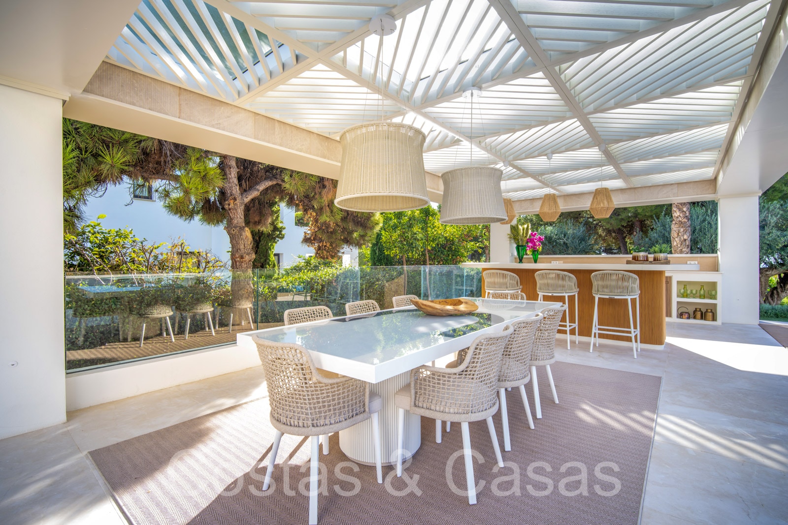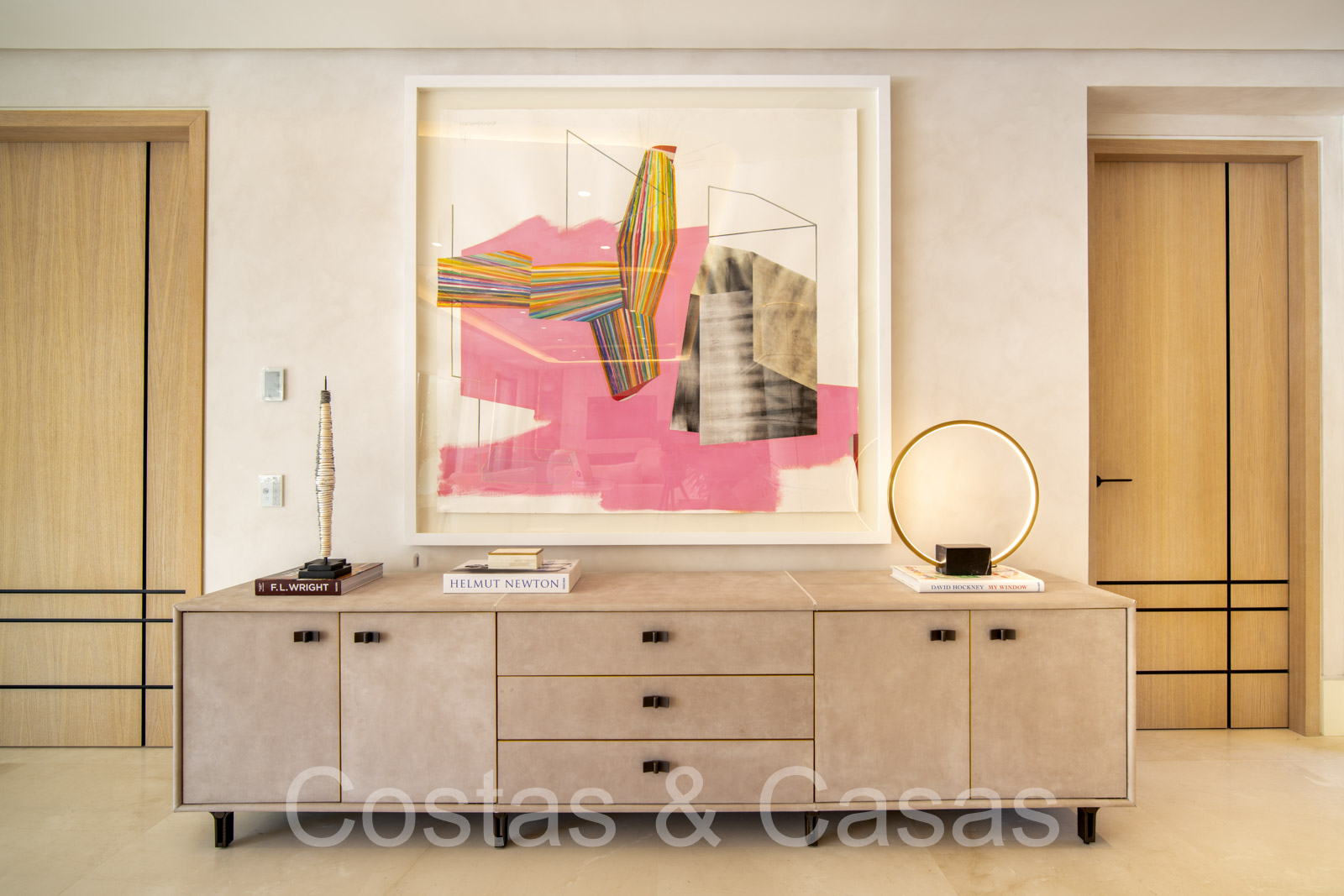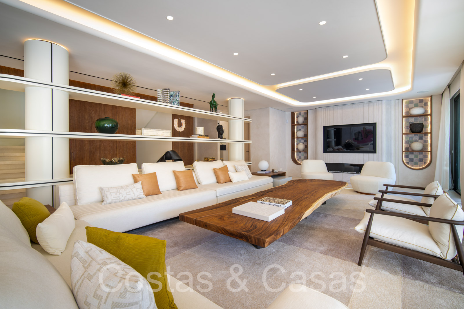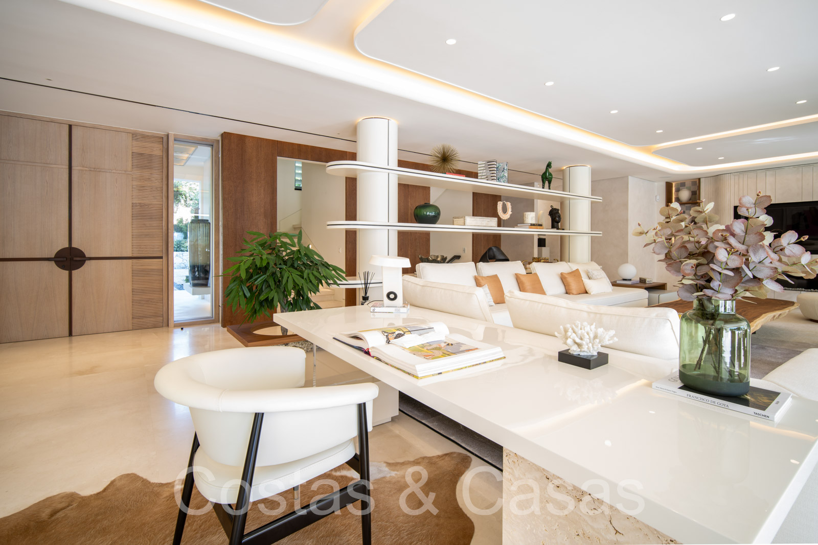 Villa contemporaine individuelle en excellent état. Utilisation de matériaux de haute qualité et finition raffinée. Les hautes fenêtres coulissantes avec cadres encastrés assurent un flux fluide entre les espaces intérieurs et extérieurs et génèrent également beaucoup de lumière naturelle. L'intérieur a été décoré par le célèbre Pedro Peña et se compose d'une palette de couleurs neutres. Salon ouvert. Cuisine sur mesure, entièrement équipée avec îlot de cuisson et coin repas. Suivi d'une salle à manger formelle avec accès direct aux espaces extérieurs. 5 chambres, 7 salles de bains et 2 toilettes séparées. Sols en carrelage en marbre. A l’étage inférieur une salle multifonctionnelle avec un salon TV, chillout et bar. La 2ème salle multifonctionnelle peut être aménagée librement comme salle de jeux avec une salle de loisirs adjacente. Salle de fitness avec sauna adjacent, vestiaire et salle de bain. Bodega à vins, en partie climatisée. Débarras et buanderie. Domaine technique. Abri voiture pour 2 voitures. Parking supplémentaire pour 2 voitures.