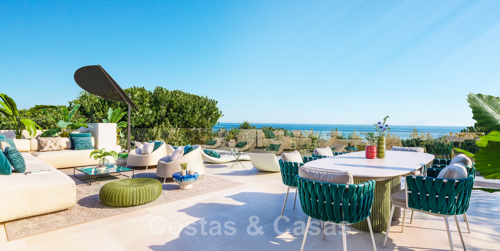 Solarium avec chill-out et cuisine extérieure.