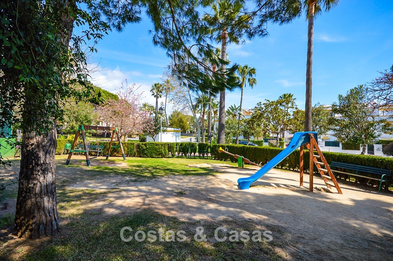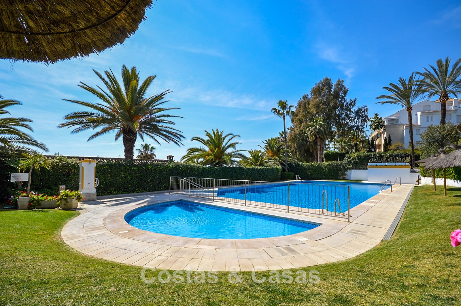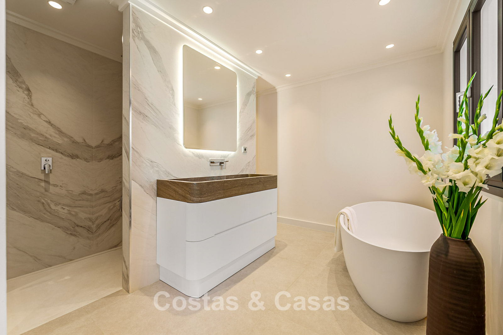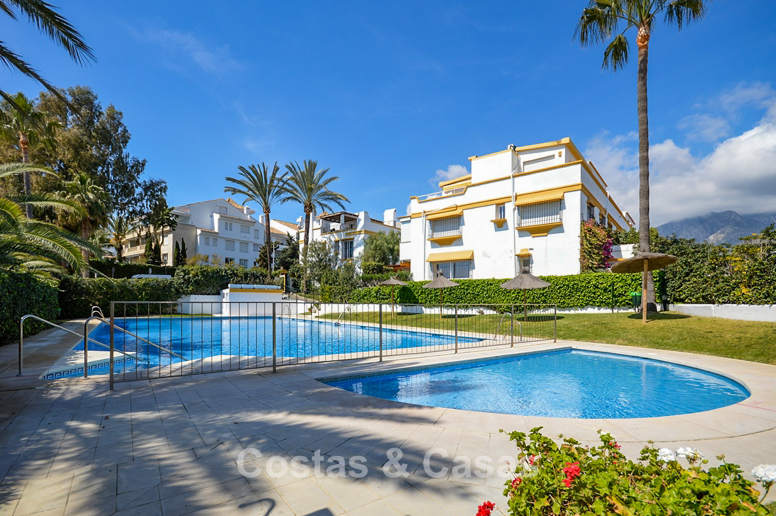 Située dans l'un des quartiers les plus prisés de Marbella, dans une résidence fermée réputée pour ses immeubles bas et son architecture typiquement andalouse. À deux pas de la plage, les résidents bénéficient d'un accès direct à la promenade et à la mer Méditerranée. Les célèbres Puente Romano et le Marbella Club Hotel sont à proximité, avec des restaurants de luxe, des clubs de plage et des bars chics à proximité. Le centre-ville animé de Marbella est à 5 minutes en voiture, tandis que Puerto Banús est à environ 7 minutes. Les résidents bénéficient d'équipements exclusifs tels que deux piscines communes, un court de tennis et un court de padel, le tout entouré de jardins magnifiquement entretenus.