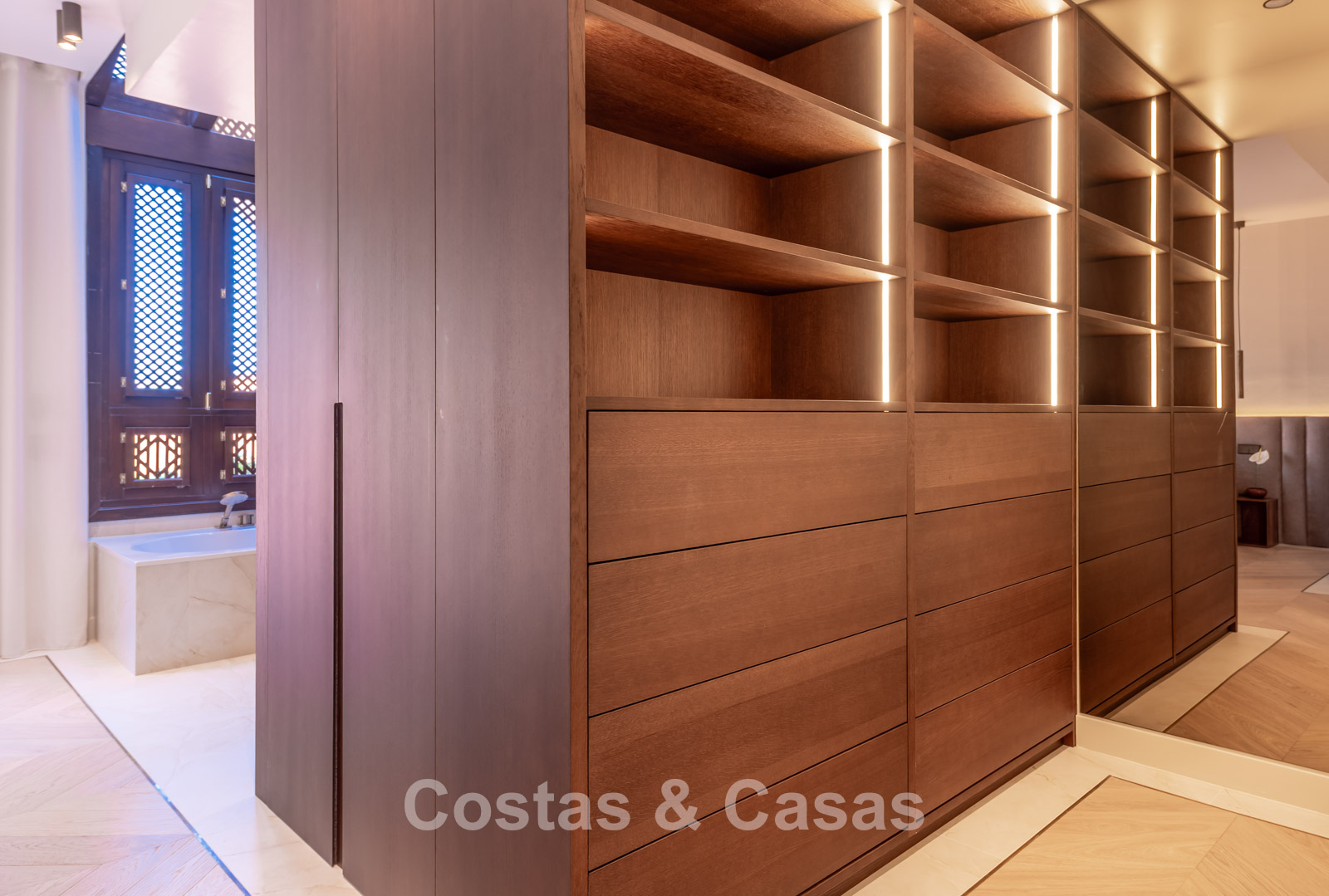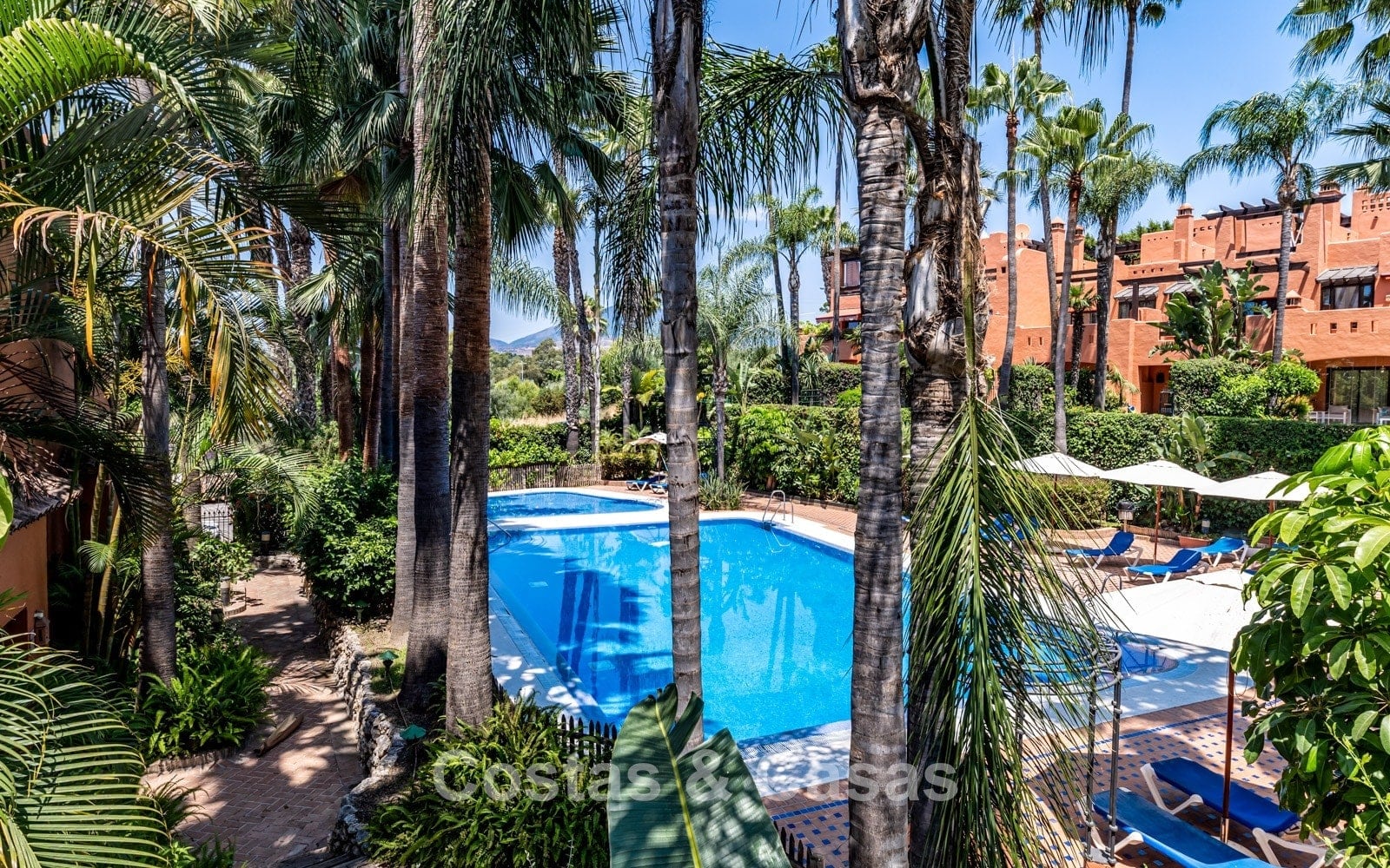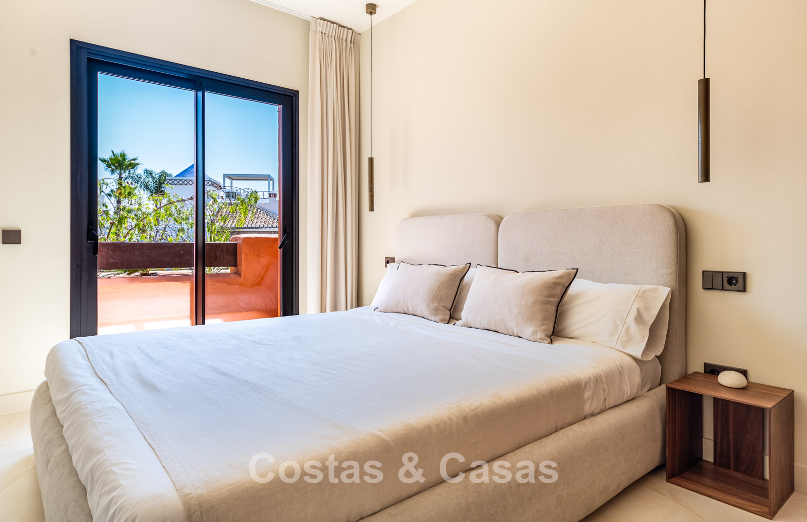 Située dans un quartier résidentiel exclusif et sécurisé au nord du célèbre Golden Mile de Marbella. Sur une colline tranquille, à quelques pas de l'emblématique hôtel Puente Romano et du Marbella Club Hotel. La région offre un équilibre parfait entre intimité, luxe et proximité du littoral animé et du centre-ville animé de Marbella. L'urbanisation est située à proximité de la mosquée royale, connue pour son impressionnante architecture andalouse-arabe, et est entourée de jardins luxuriants et de palmiers. À seulement 10 minutes en voiture du centre de Marbella, à 40 km de l'aéroport international de Malaga et à 85 km de l'aéroport de Gibraltar.