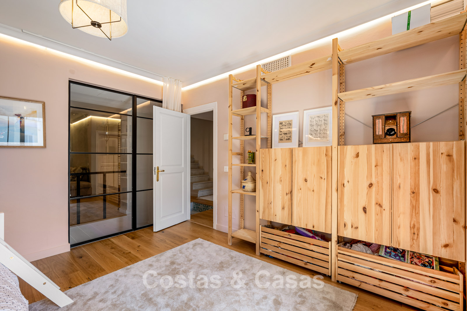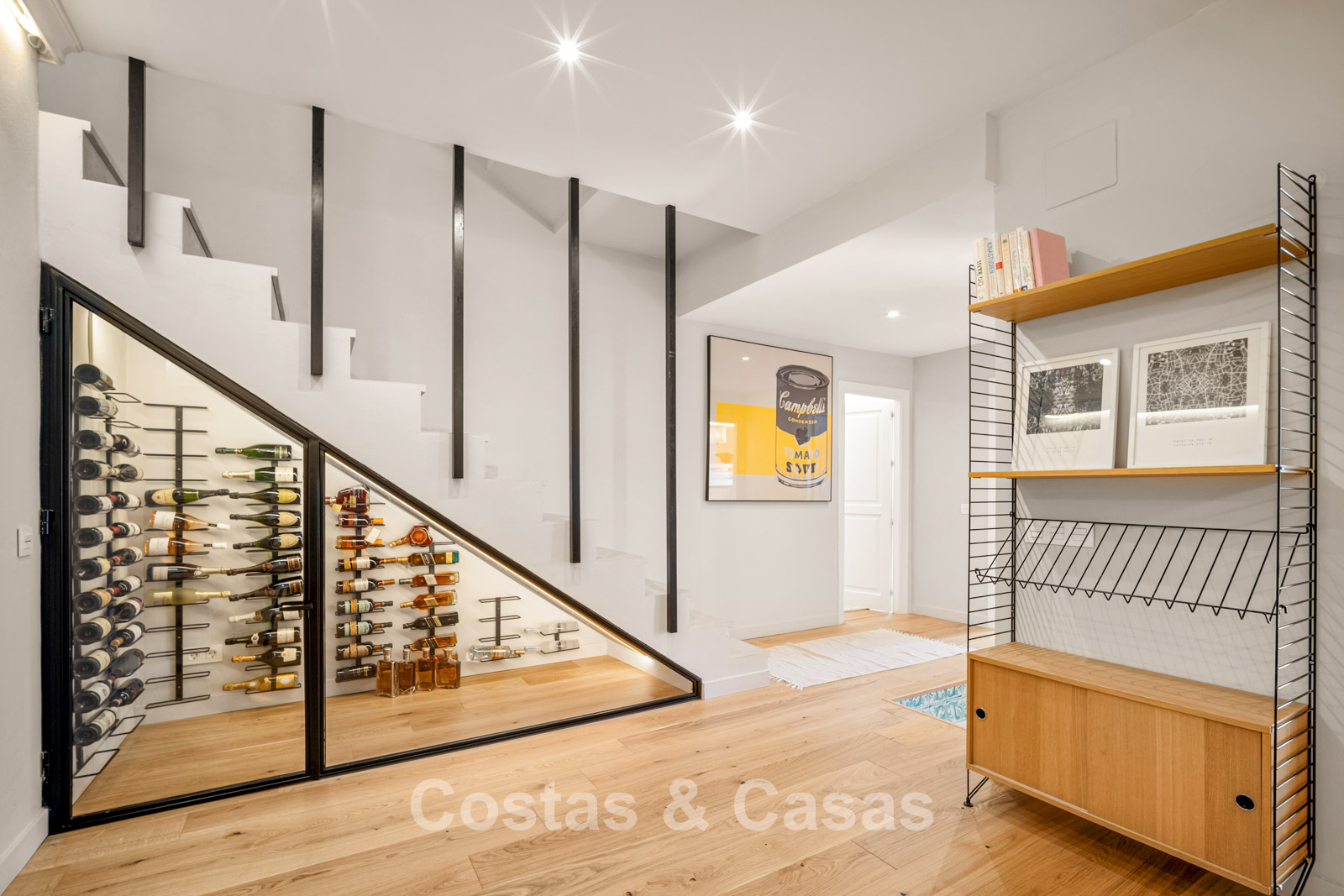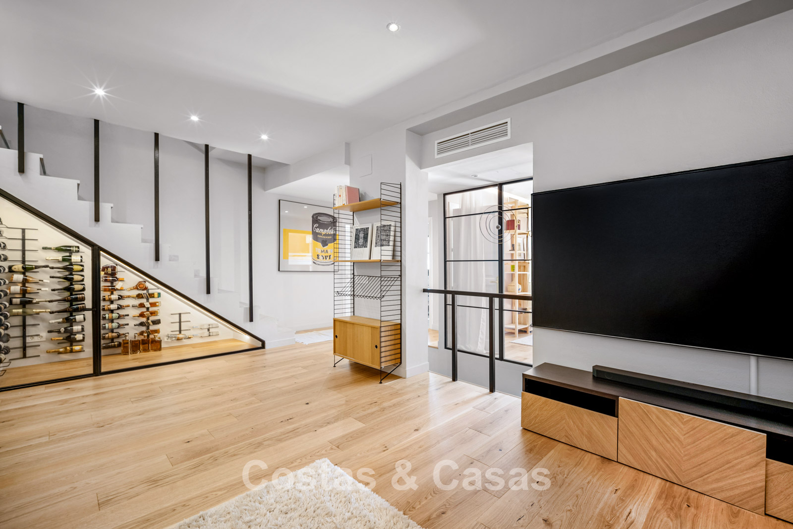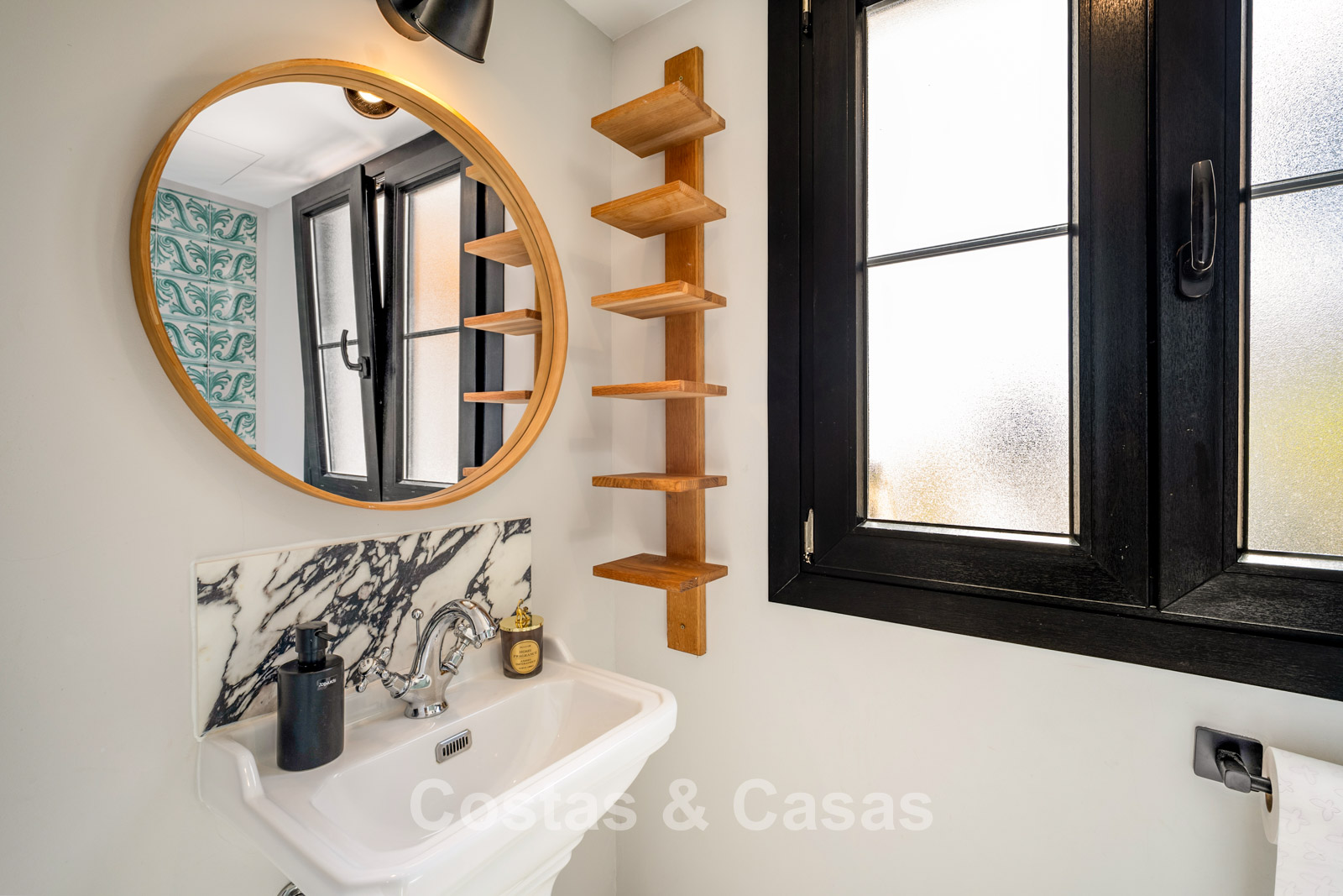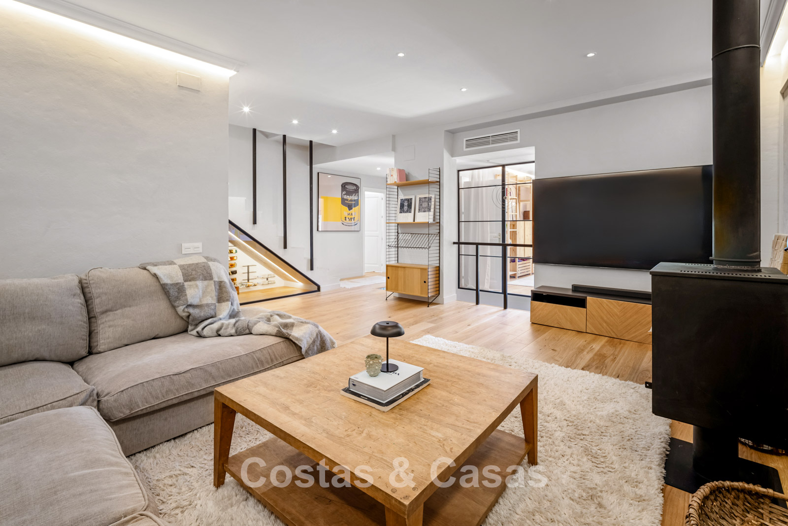 Une maison de ville rénovée de qualité supérieure dans un état impeccable. La maison mitoyenne au style andalou intemporel allie charme traditionnel et intérieurs scandinaves épurés. Située au sud-ouest. Depuis la terrasse, vous avez une belle vue sur la mer Méditerranée. Terrasses ensoleillées et couvertes avec un espace chill-out et un ‘al fresco dining’. De hautes fenêtres dans toute la maison offrent un intérieur lumineux et un accès aux espaces extérieurs. Plan ouvert. Le salon spacieux dispose d'un plafond à poutres apparentes à double hauteur et d'une vue sur l'étage supérieur. La cuisine spacieuse et élégante, équipée d'un îlot de cuisson central pour s'asseoir, est éclairée par une belle lucarne qui offre une abondance de lumière naturelle. Espace repas intégré ouvrant sur une terrasse barbecue. 4 chambres et 4+1 salles de bain. Le sous-sol offre une valeur ajoutée avec une chambre d'amis, un salon confortable, une salle de bain et un sauna privé, parfait pour recevoir des invités ou créer une oasis de bien-être personnelle. Le sous-sol peut également être facilement aménagé en garage privé. Sols en pierre naturelle. Buanderie.