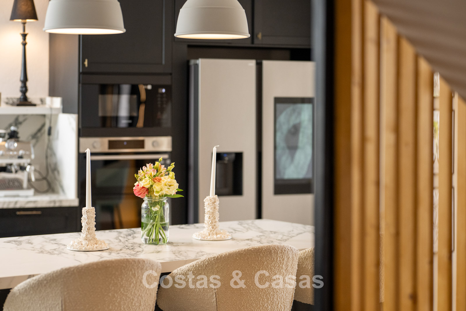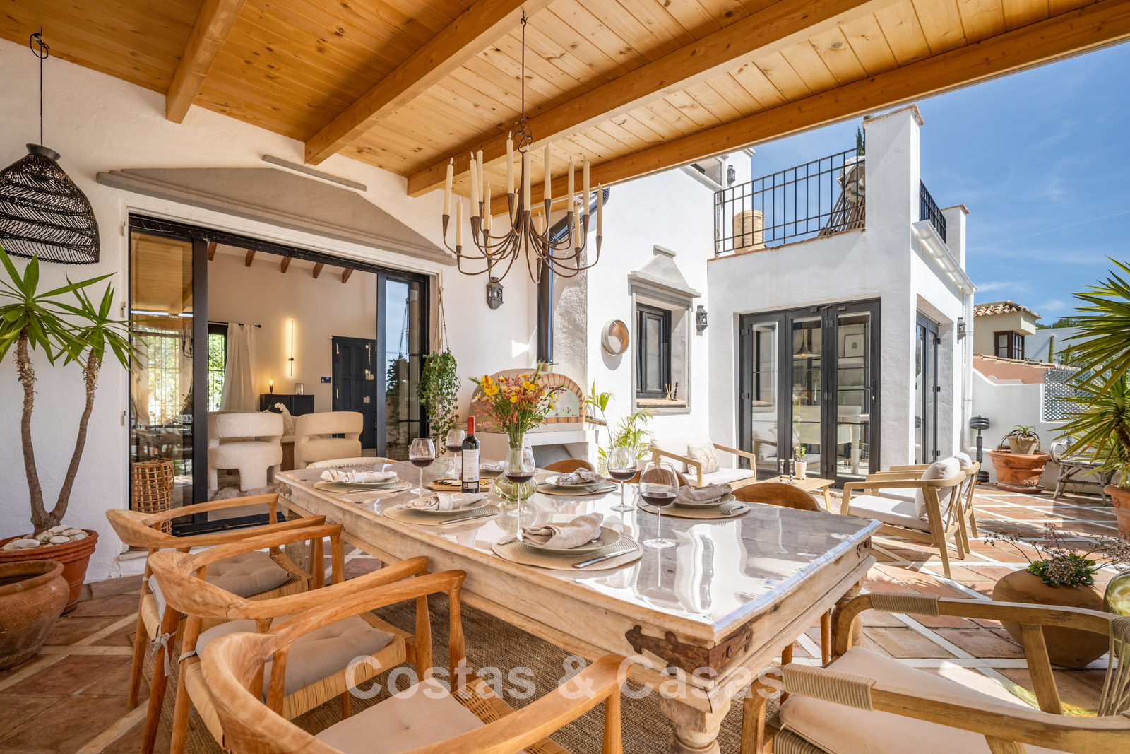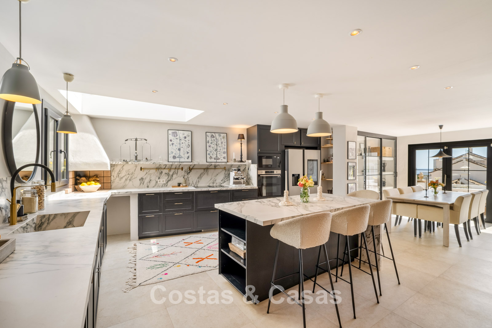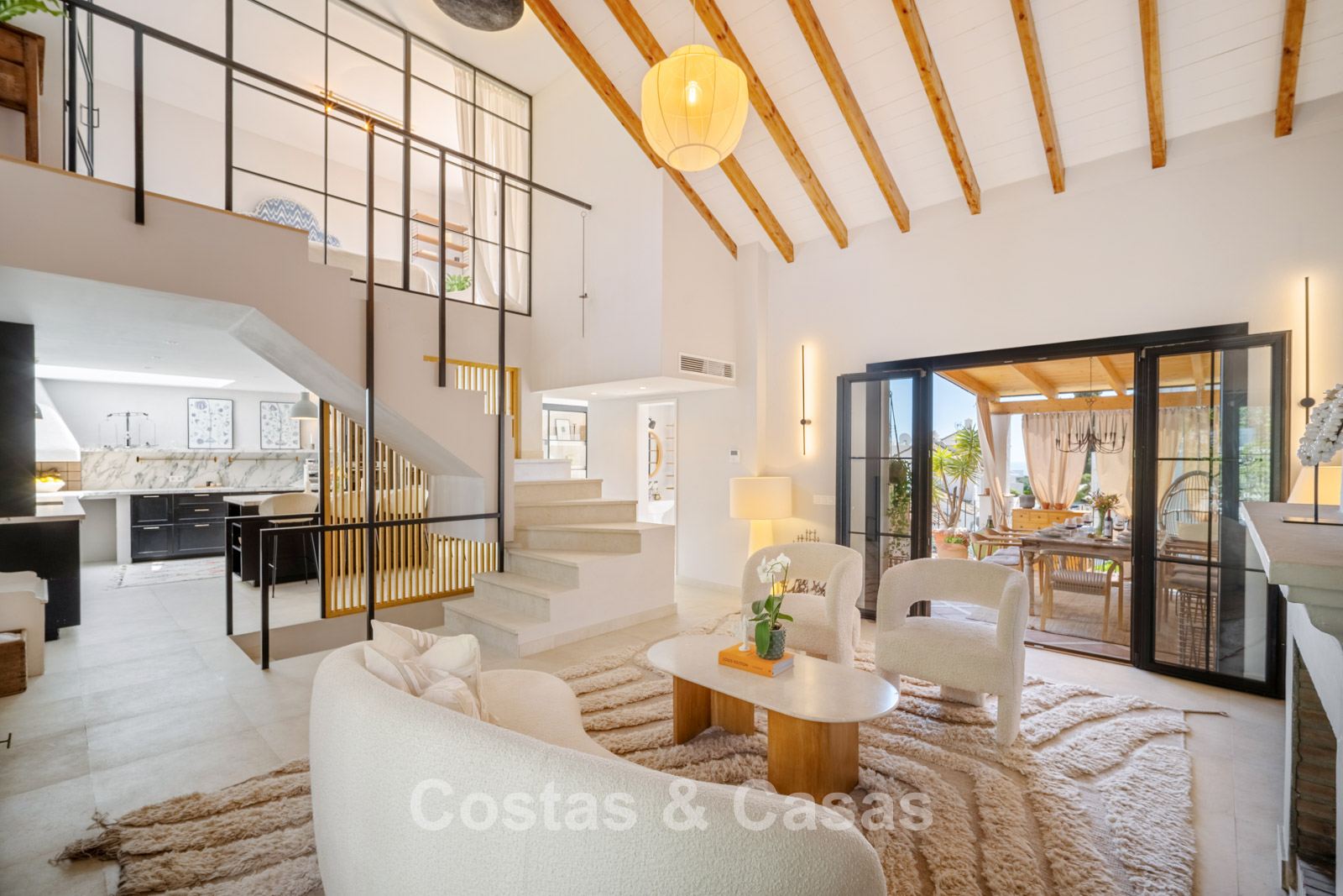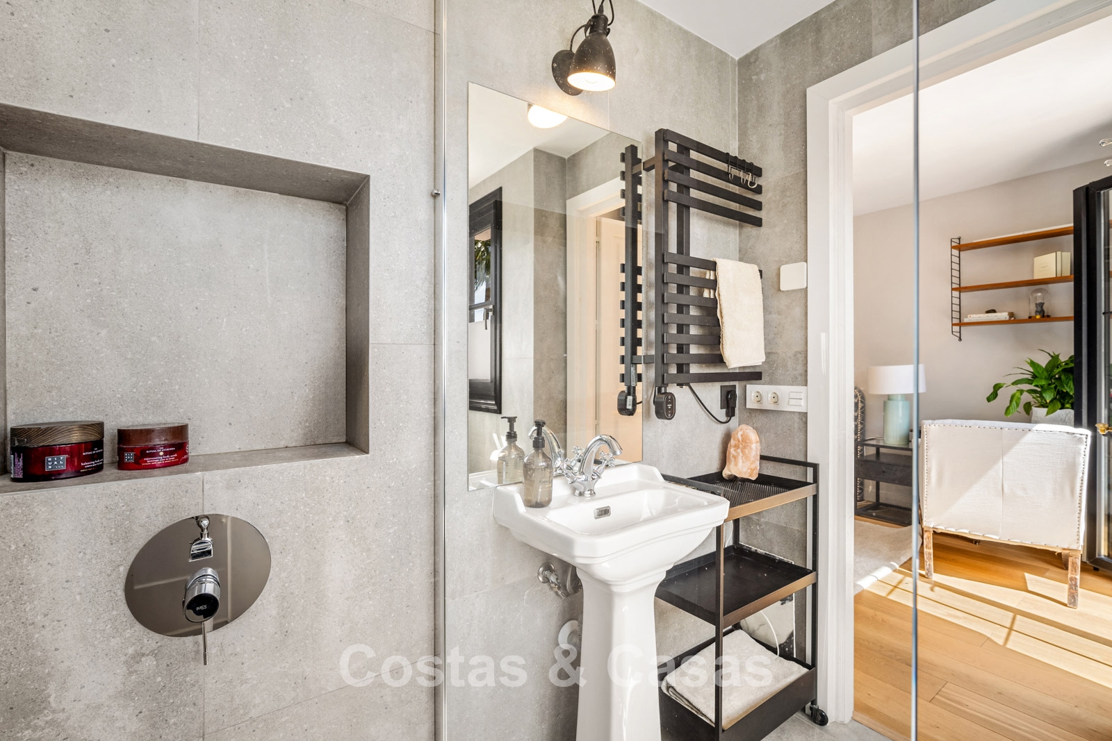 Une maison de ville rénovée de qualité supérieure dans un état impeccable. La maison mitoyenne au style andalou intemporel allie charme traditionnel et intérieurs scandinaves épurés. Située au sud-ouest. Depuis la terrasse, vous avez une belle vue sur la mer Méditerranée. Terrasses ensoleillées et couvertes avec un espace chill-out et un ‘al fresco dining’. De hautes fenêtres dans toute la maison offrent un intérieur lumineux et un accès aux espaces extérieurs. Plan ouvert. Le salon spacieux dispose d'un plafond à poutres apparentes à double hauteur et d'une vue sur l'étage supérieur. La cuisine spacieuse et élégante, équipée d'un îlot de cuisson central pour s'asseoir, est éclairée par une belle lucarne qui offre une abondance de lumière naturelle. Espace repas intégré ouvrant sur une terrasse barbecue. 4 chambres et 4+1 salles de bain. Le sous-sol offre une valeur ajoutée avec une chambre d'amis, un salon confortable, une salle de bain et un sauna privé, parfait pour recevoir des invités ou créer une oasis de bien-être personnelle. Le sous-sol peut également être facilement aménagé en garage privé. Sols en pierre naturelle. Buanderie.