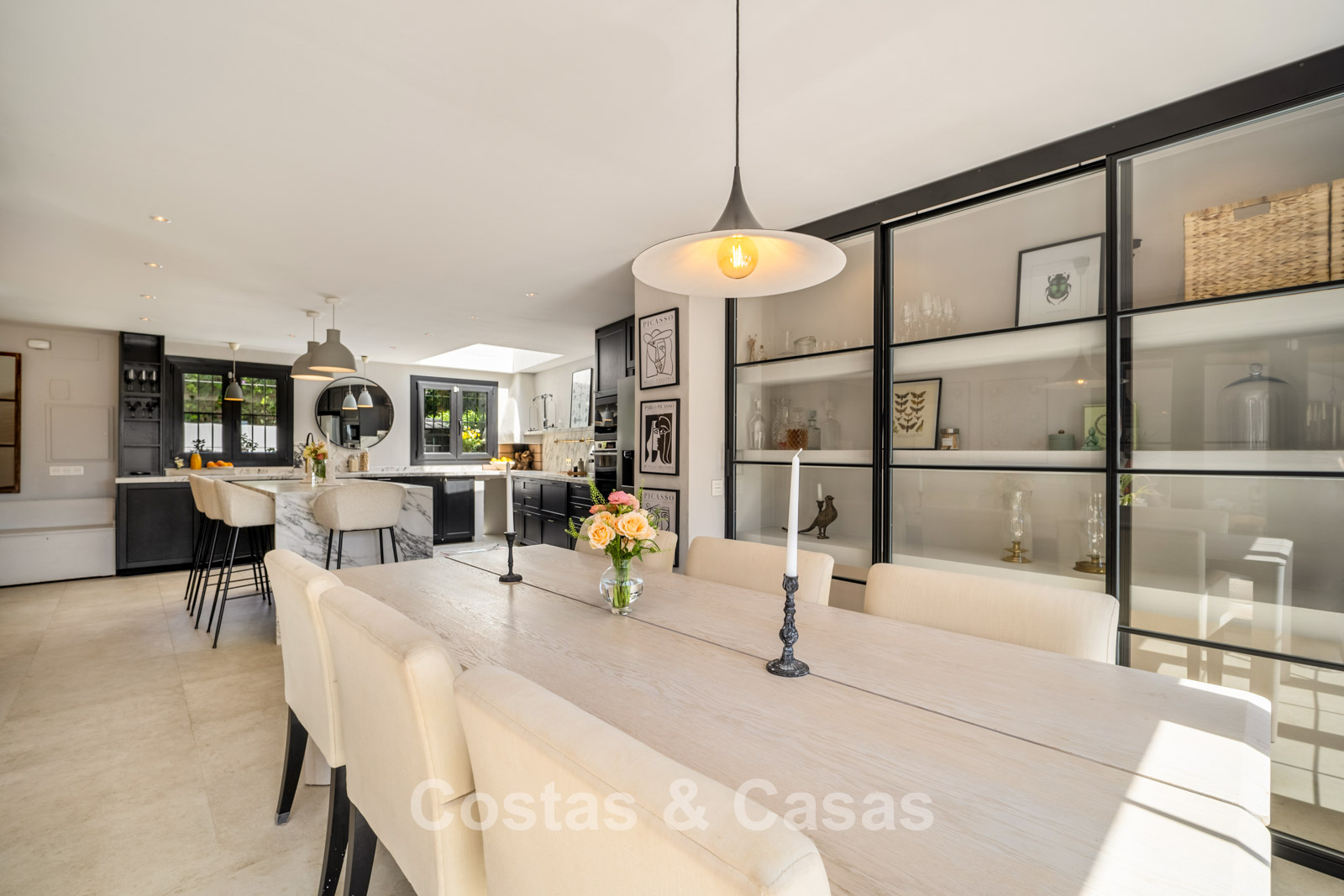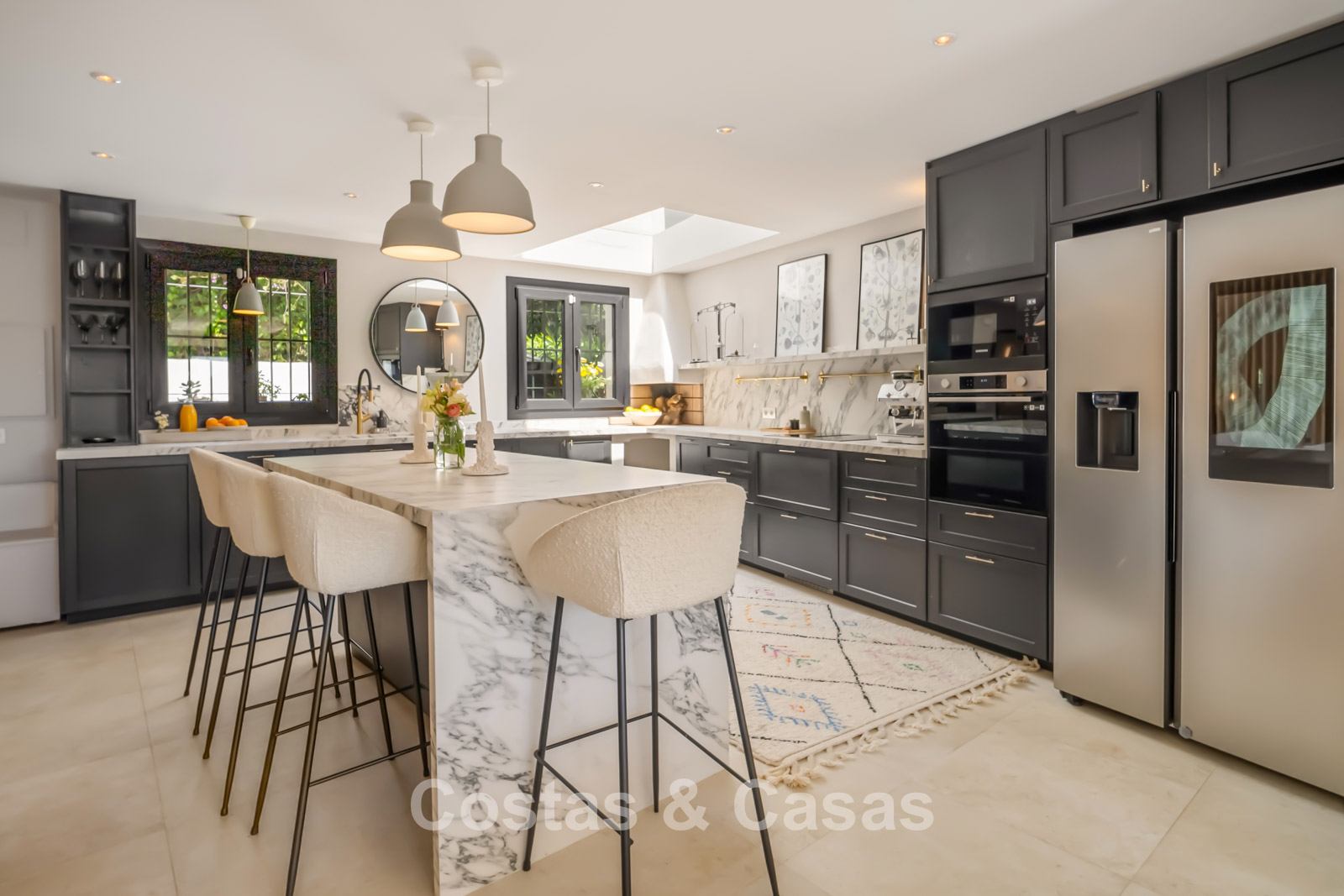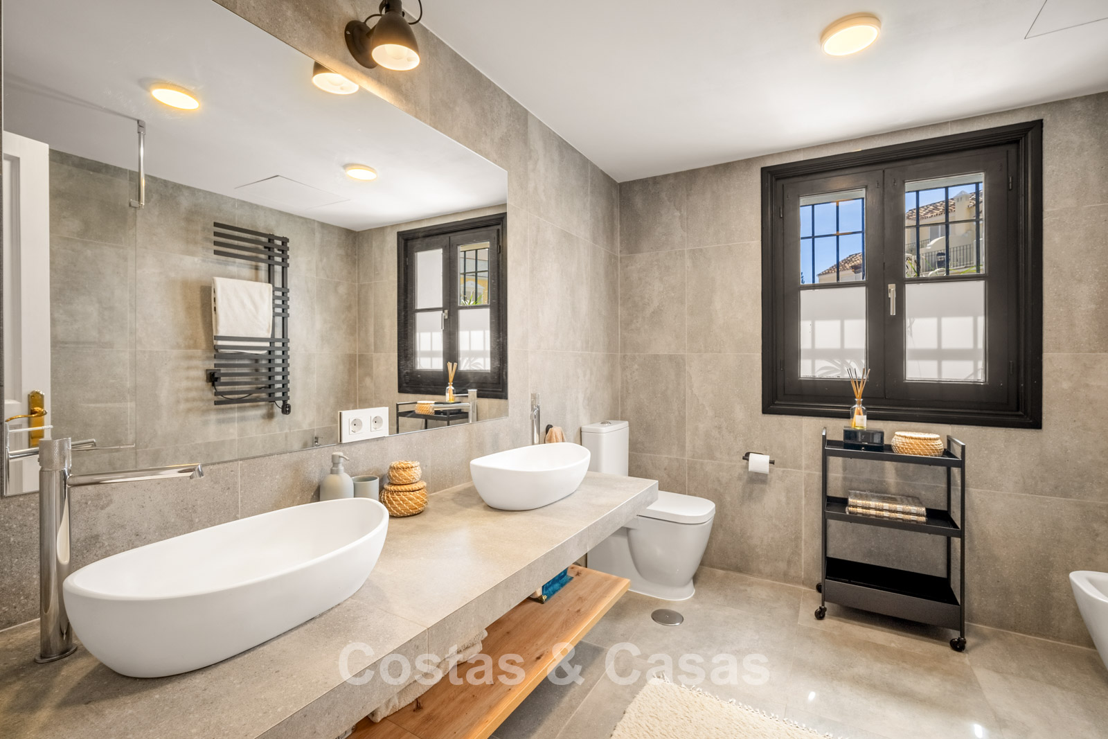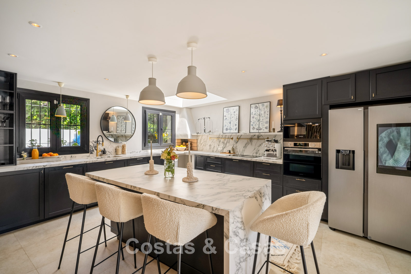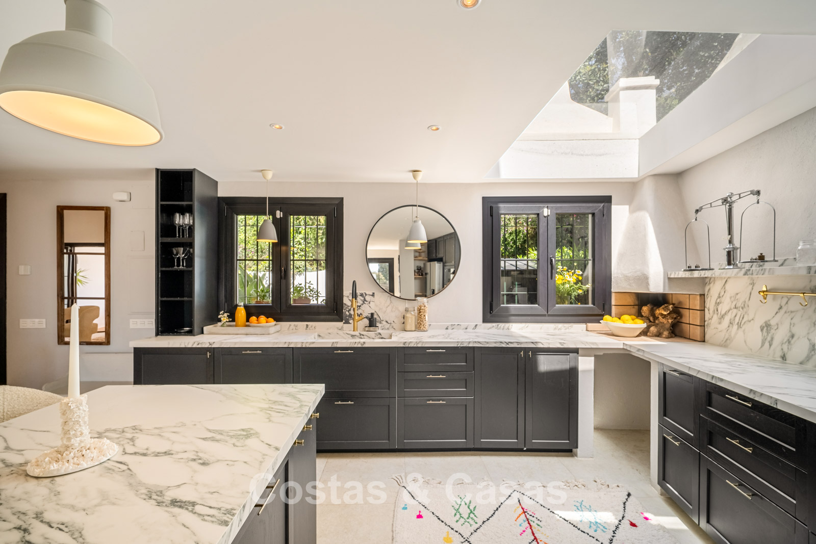 Une maison de ville rénovée de qualité supérieure dans un état impeccable. La maison mitoyenne au style andalou intemporel allie charme traditionnel et intérieurs scandinaves épurés. Située au sud-ouest. Depuis la terrasse, vous avez une belle vue sur la mer Méditerranée. Terrasses ensoleillées et couvertes avec un espace chill-out et un ‘al fresco dining’. De hautes fenêtres dans toute la maison offrent un intérieur lumineux et un accès aux espaces extérieurs. Plan ouvert. Le salon spacieux dispose d'un plafond à poutres apparentes à double hauteur et d'une vue sur l'étage supérieur. La cuisine spacieuse et élégante, équipée d'un îlot de cuisson central pour s'asseoir, est éclairée par une belle lucarne qui offre une abondance de lumière naturelle. Espace repas intégré ouvrant sur une terrasse barbecue. 4 chambres et 4+1 salles de bain. Le sous-sol offre une valeur ajoutée avec une chambre d'amis, un salon confortable, une salle de bain et un sauna privé, parfait pour recevoir des invités ou créer une oasis de bien-être personnelle. Le sous-sol peut également être facilement aménagé en garage privé. Sols en pierre naturelle. Buanderie.