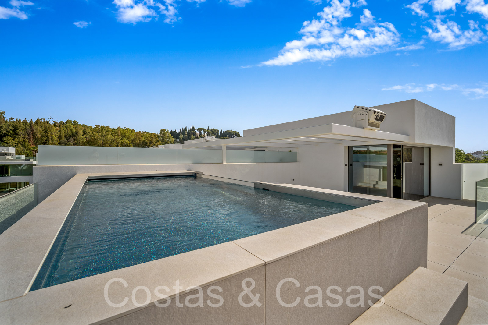 Autres caractéristiques: Ascenseur privé. Climatisation pour le refroidissement et le chauffage. Pompe à chaleur centralisée à air pour la production d'eau chaude sanitaire et de chauffage au sol. Carreaux de porcelaine grand format pour sols intérieurs. Panneaux décoratifs en chêne naturel. Armoires intégrées. Menuiserie sur mesure. Double verre. Balustrades en verre. Système d'ouverture avec reconnaissance d'empreintes digitales. Éclairage LED. Installation télécom. Système domotique sophistiqué. Système audio intégré.