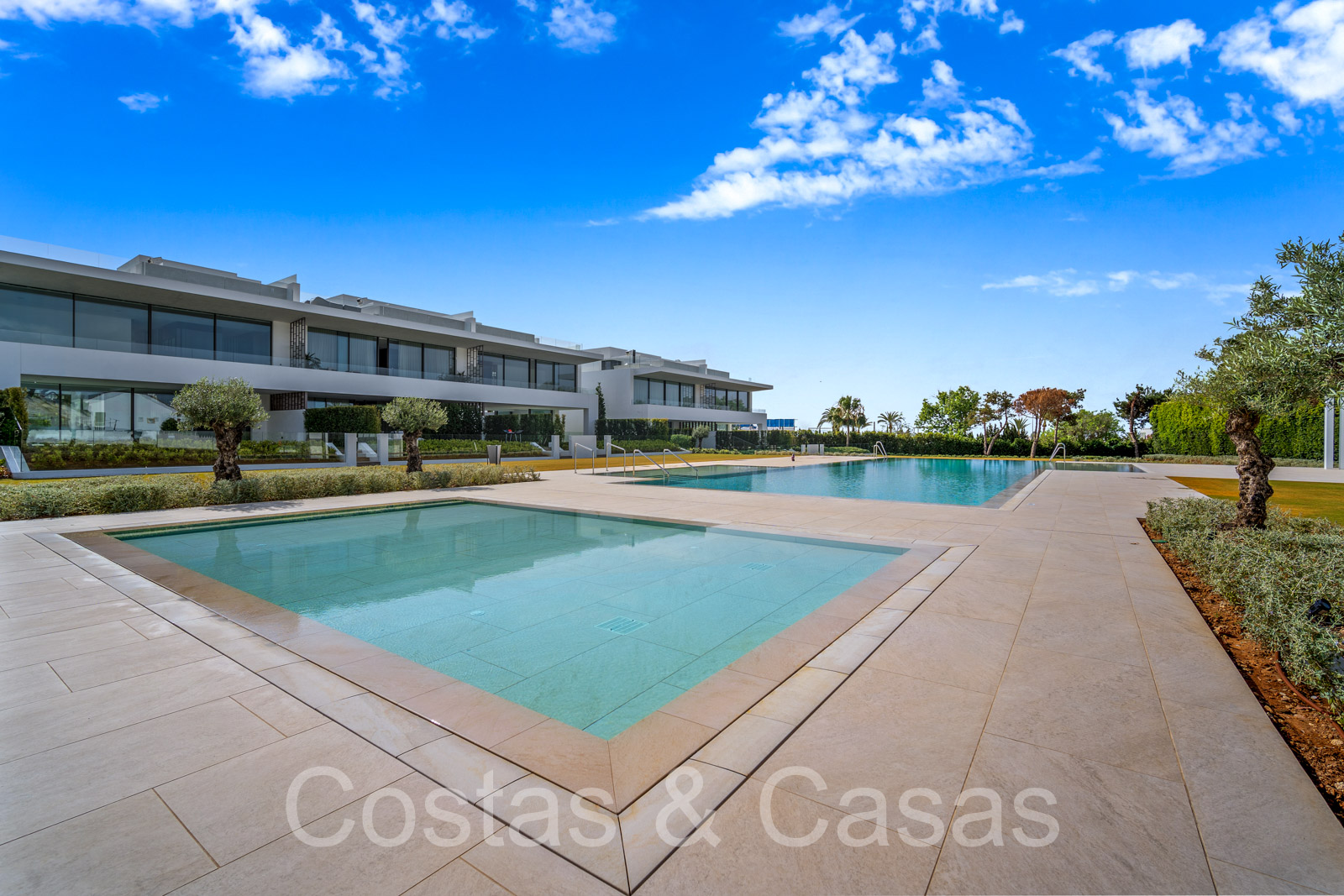 Jardin privé bien entretenu de 88 m² avec accès direct au jardin commun et à la piscine à débordement. Spacieuse terrasse couverte au rez-de-chaussée pouvant être librement aménagée avec salons, coin barbecue et coin repas. Le solarium est équipé d'un projecteur dans un caisson étanche et d'enceintes murales intégrées, permettant de créer un home cinéma extérieur cosy. De plus, le solarium dispose également d'une piscine privée intégrée.