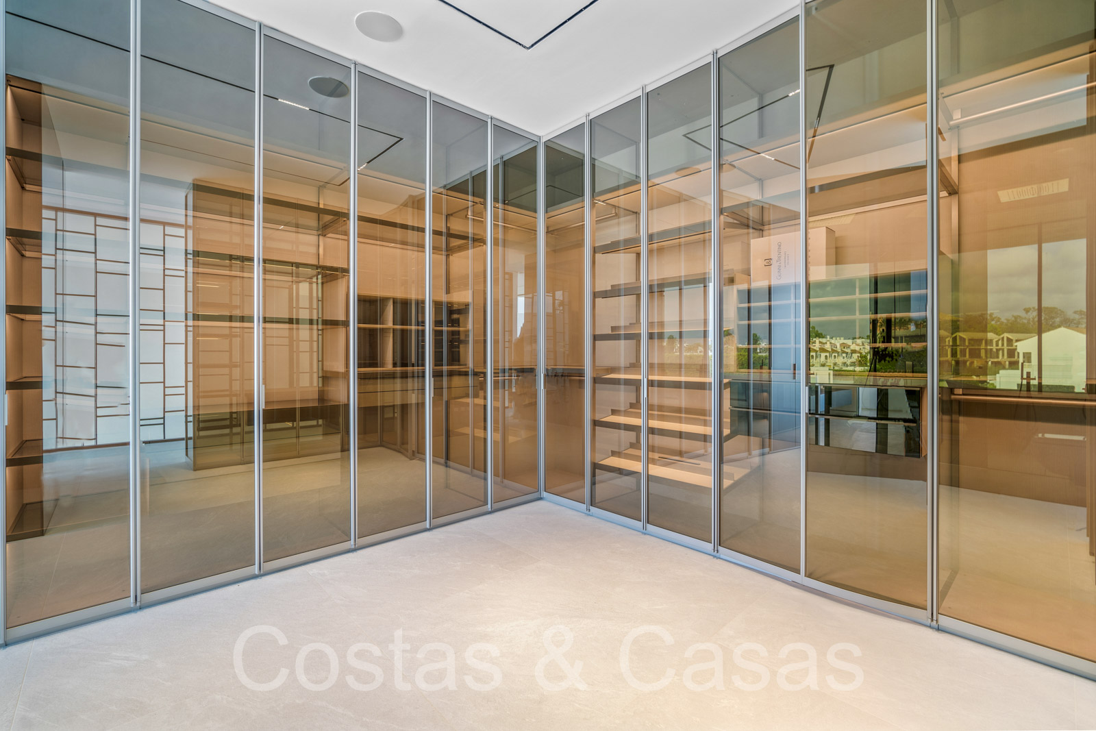 Villa mitoyenne à l'architecture ultra-moderne. Orientation ouest. Excellent niveau de finition avec un souci du détail et des finitions raffinées. Intérieur lumineux et luxueux. Des fenêtres en verre spectaculaires dans toute la villa offrent des pièces très lumineuses. Le point central des villas est formé par un prestigieux patio en verre qui génère de la lumière et de l'air naturels supplémentaires et peut être fermé par des fenêtres coulissantes en verre. Cuisine ouverte moderne avec îlot de cuisson et appareils Gaggenau. Coin repas intégré. 4 chambres, 5 salles de bains. Salle technique.