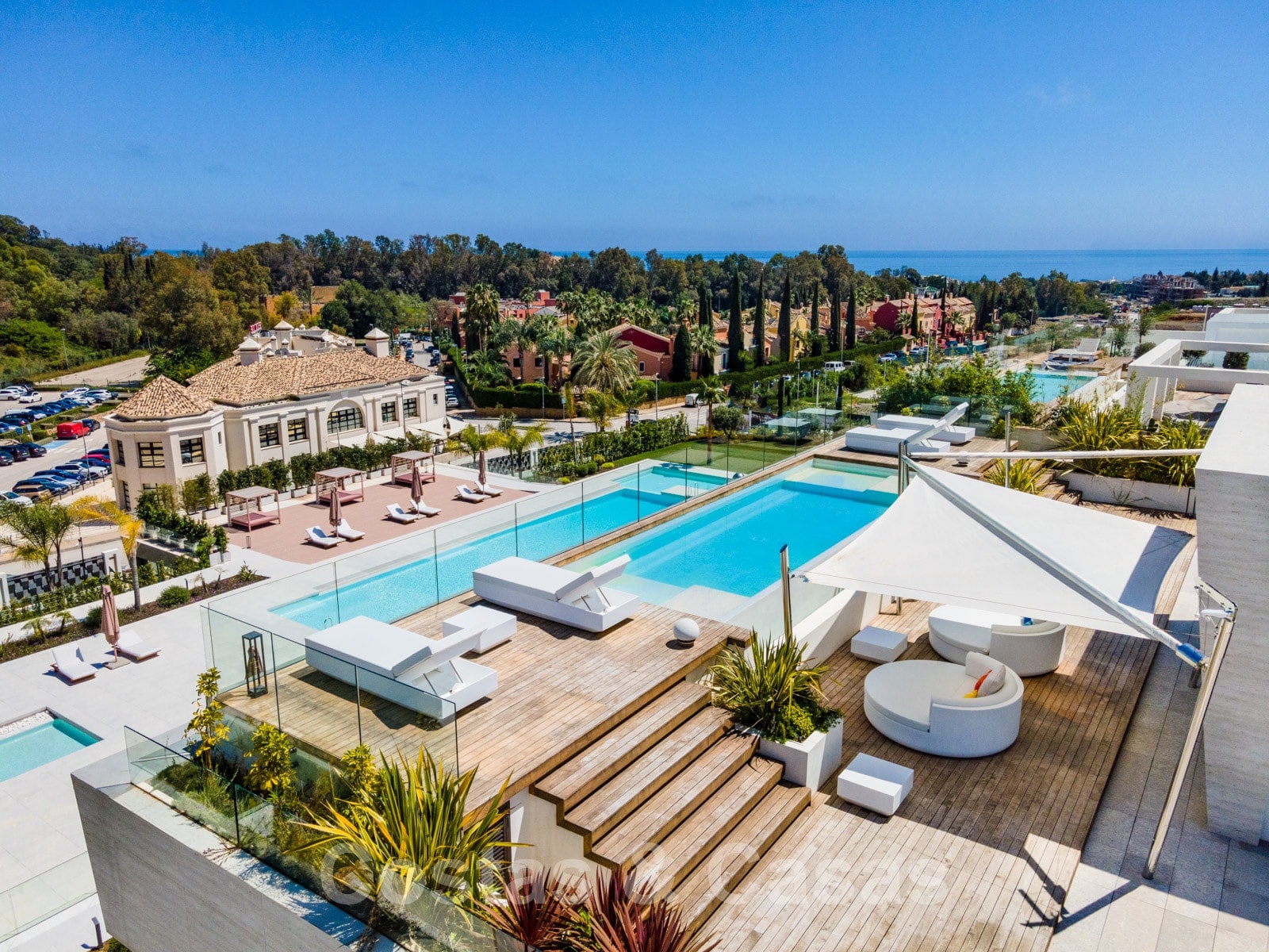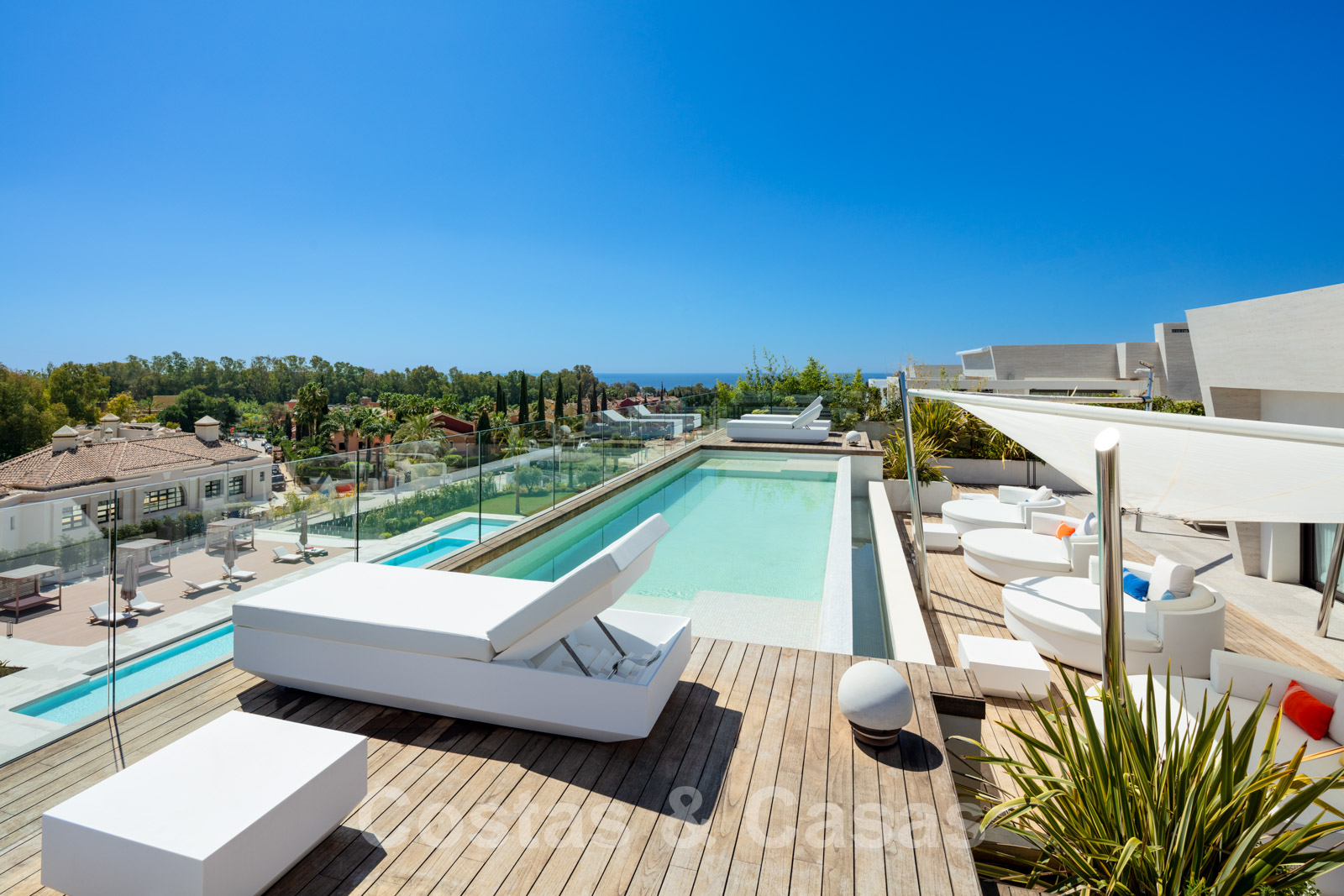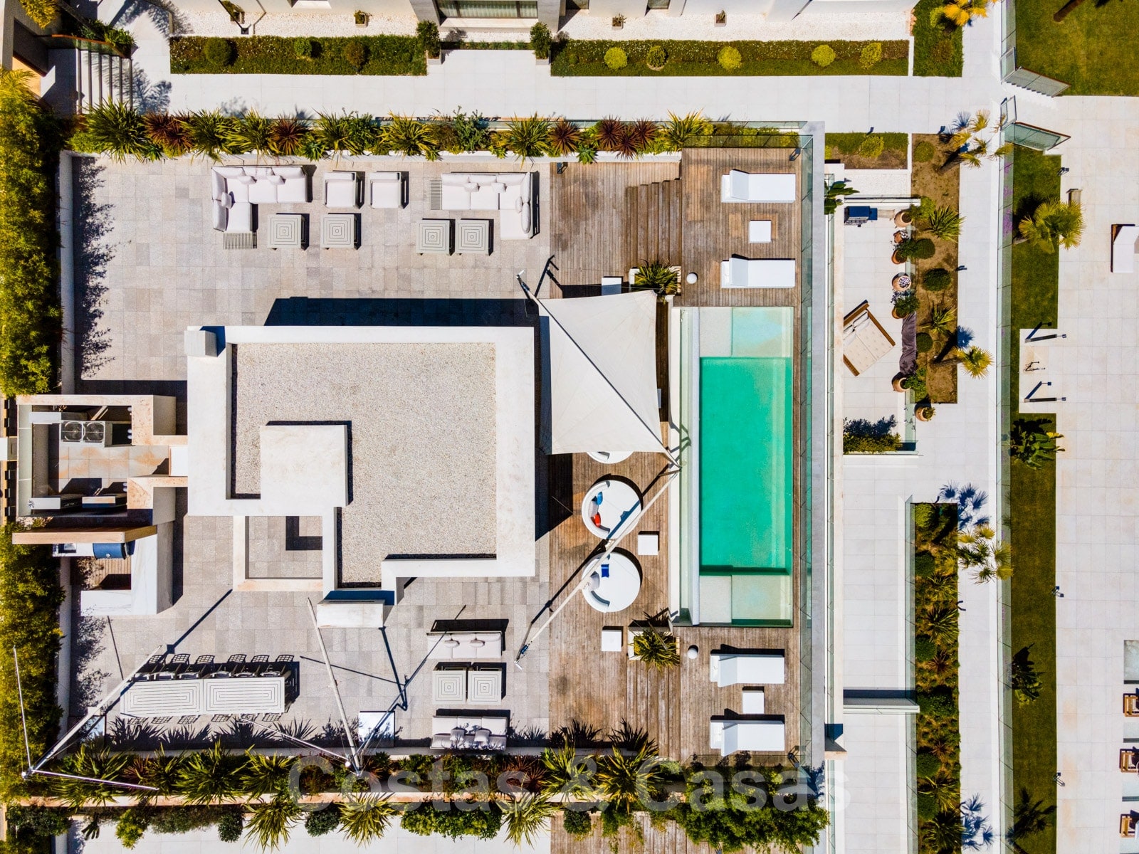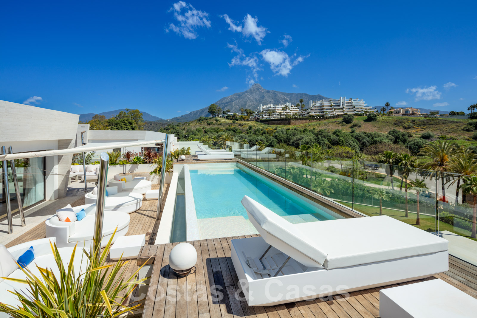 Immense solarium avec piscine privée.