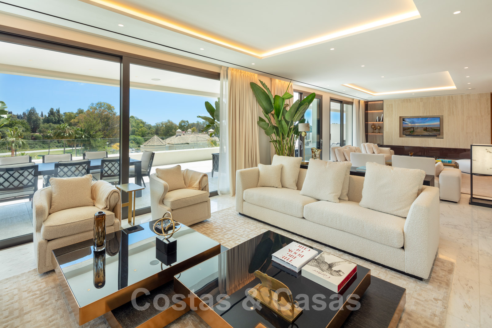 L'intérieur est contemporain avec des meubles FENDI.