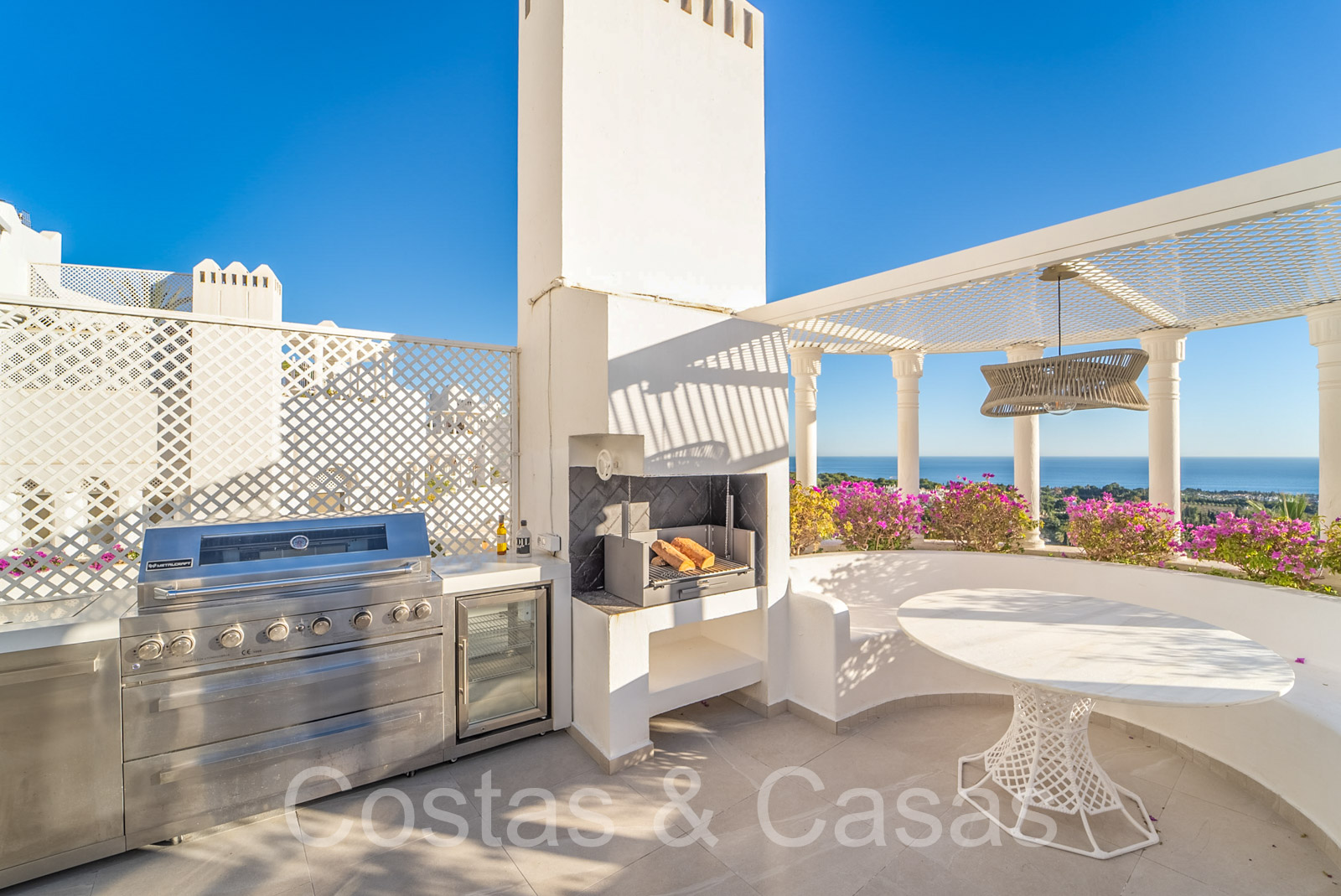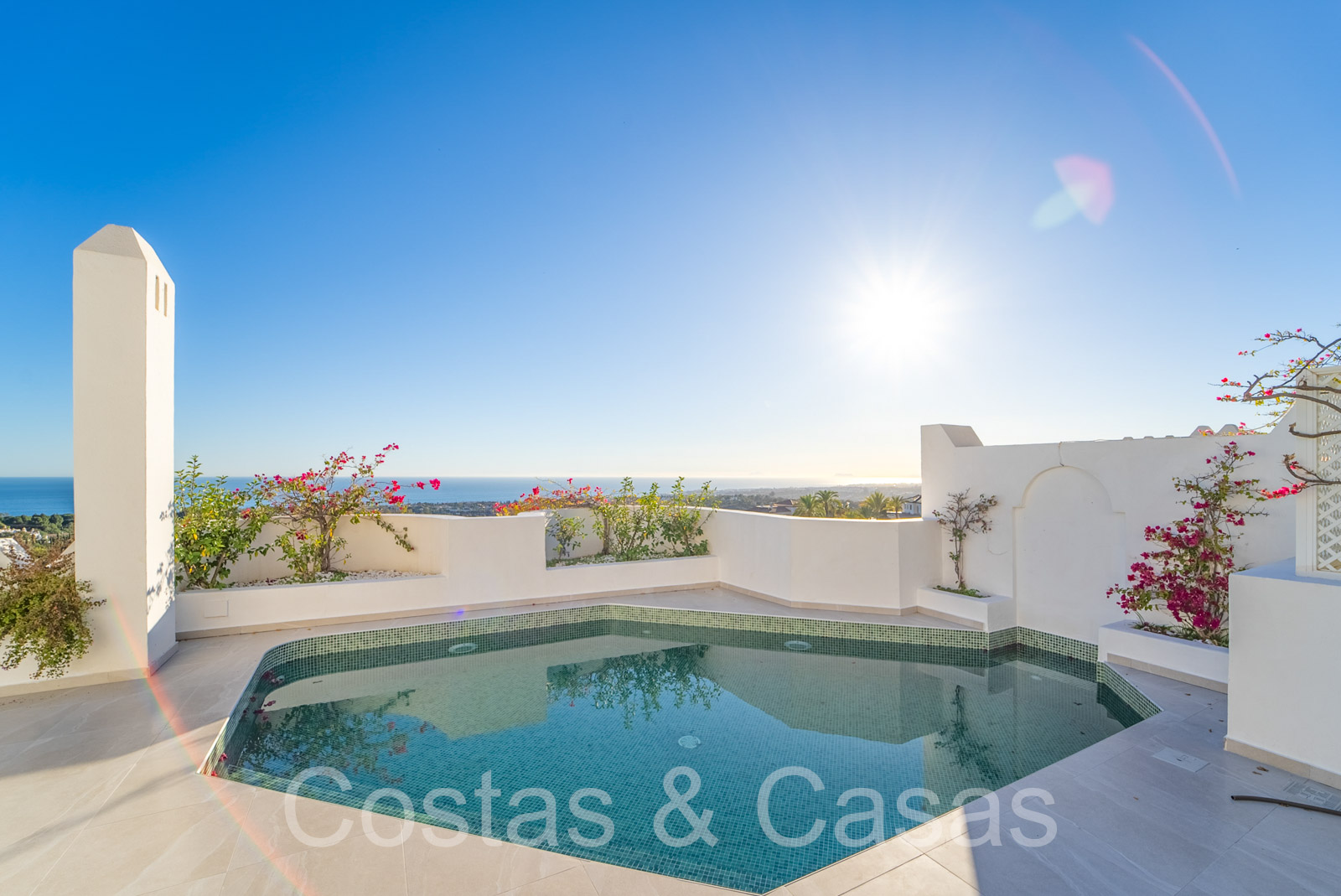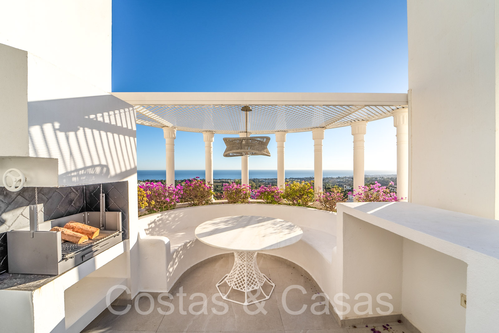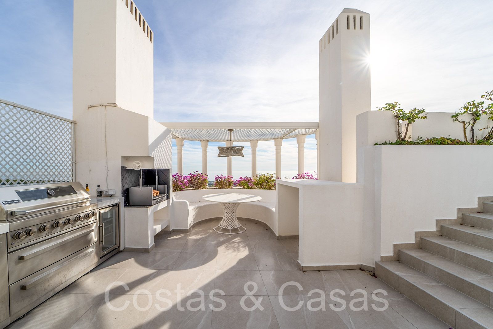 Penthouse méditerranéen de luxe avec piscine privée à vendre avec vue panoramique sur la mer dans les collines du Golden Mile de Marbella