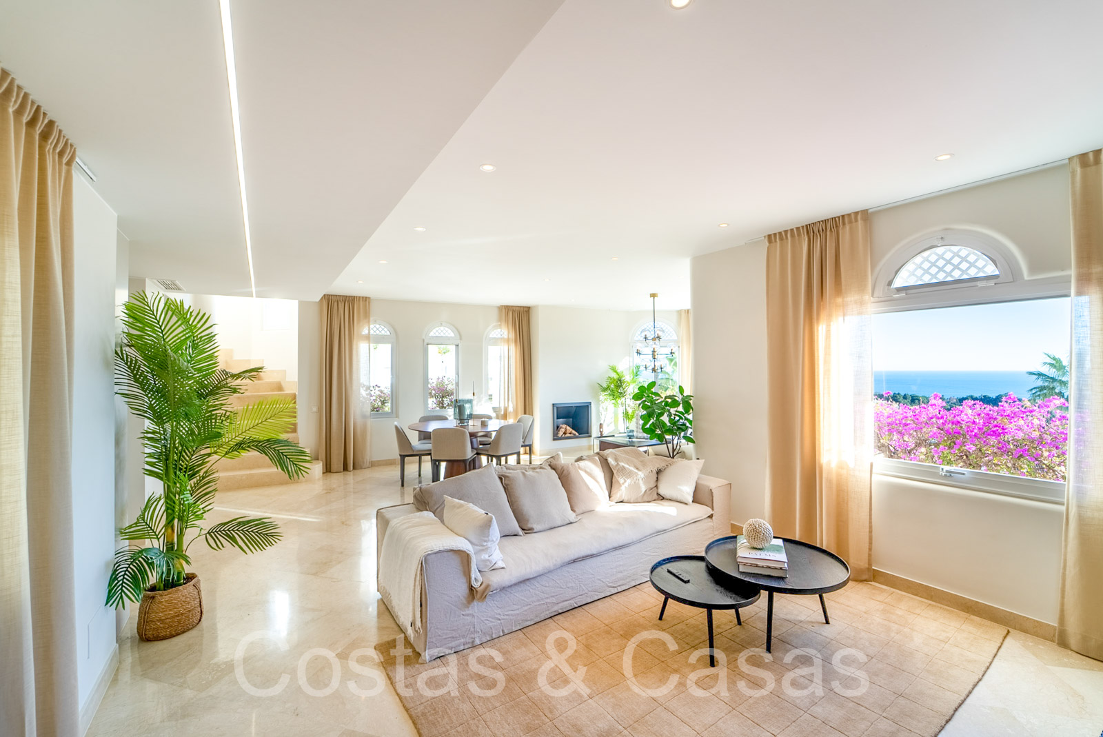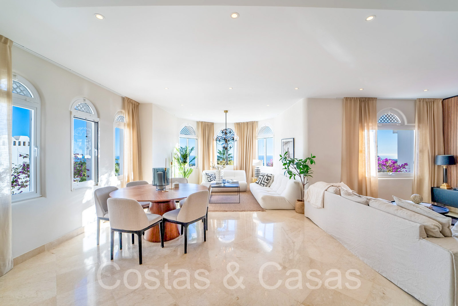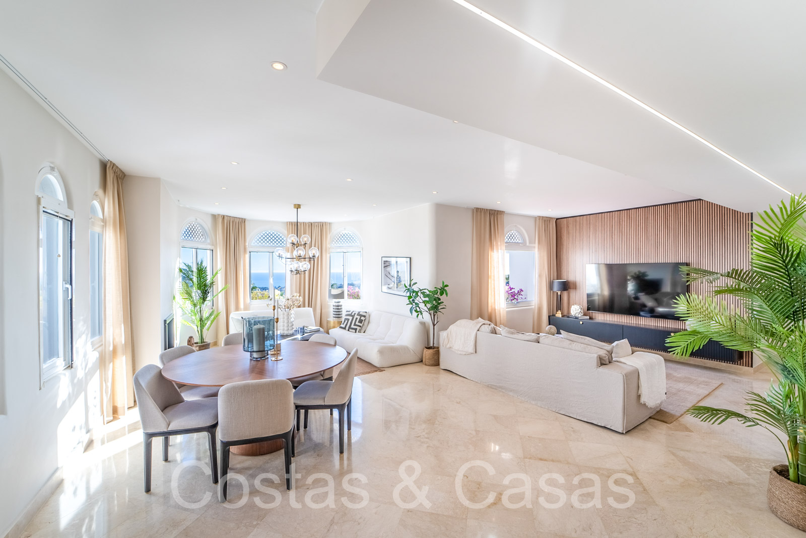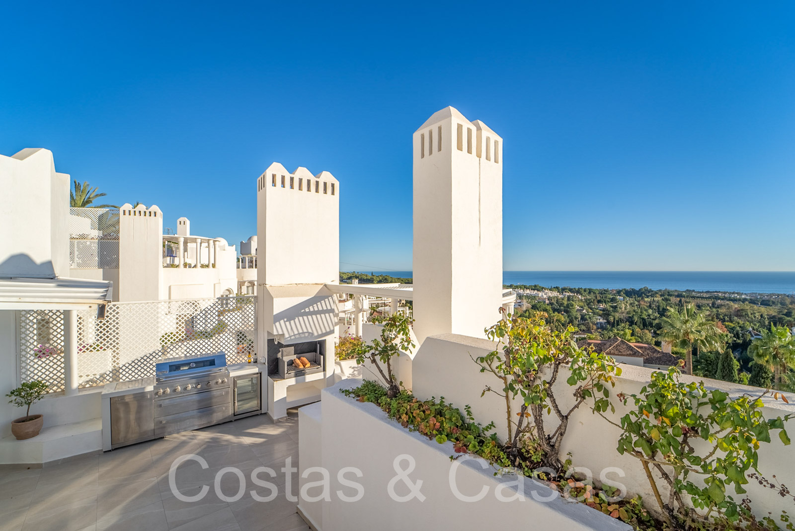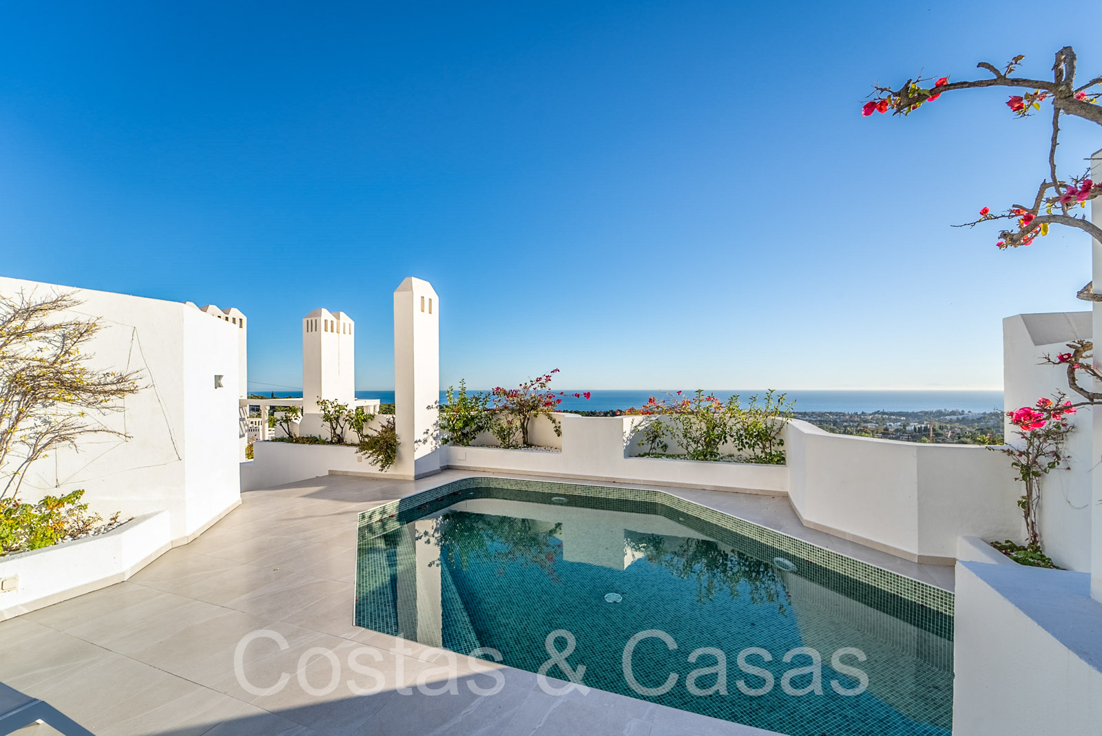 Penthouse méditerranéen de luxe avec piscine privée à vendre avec vue panoramique sur la mer dans les collines du Golden Mile de Marbella
