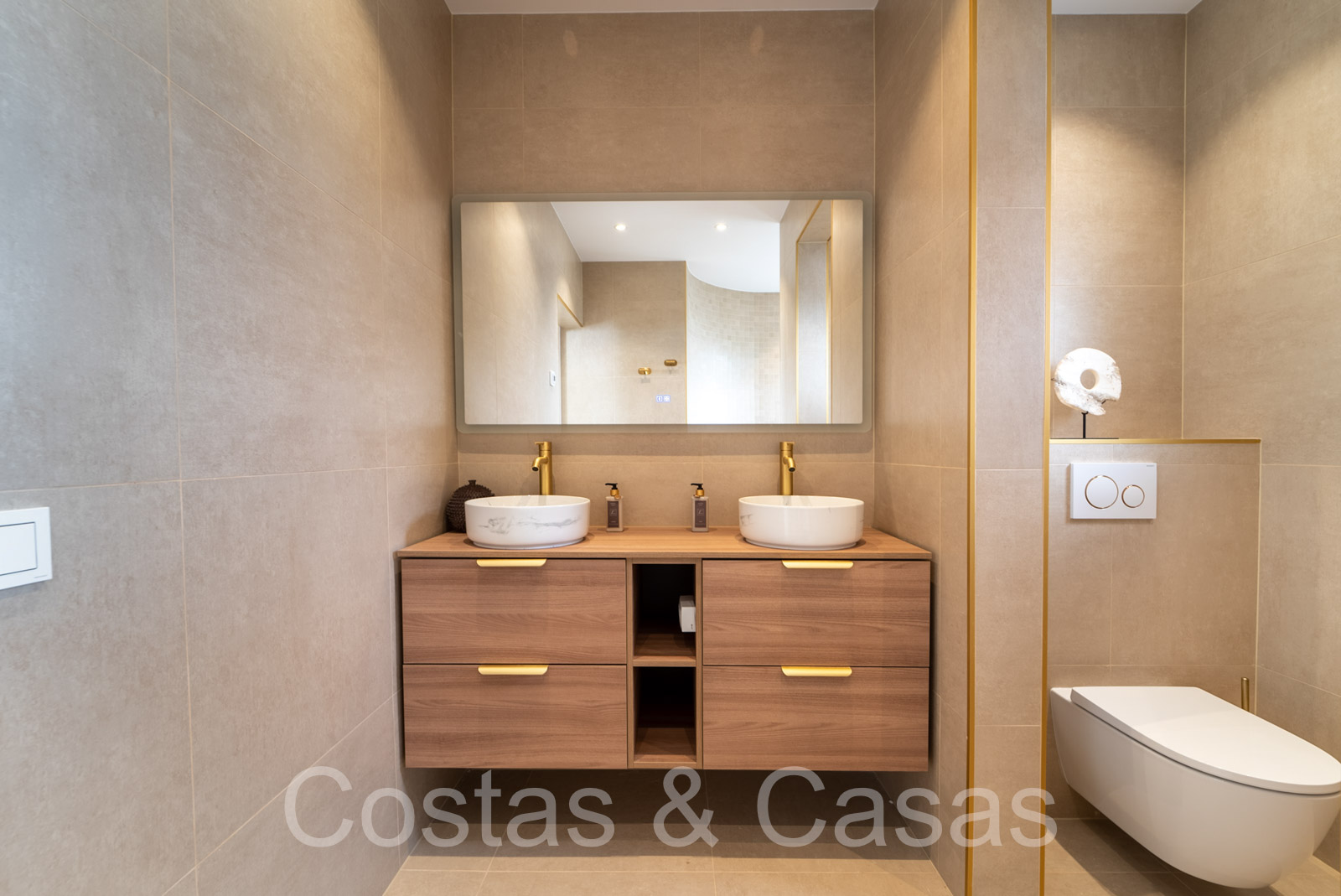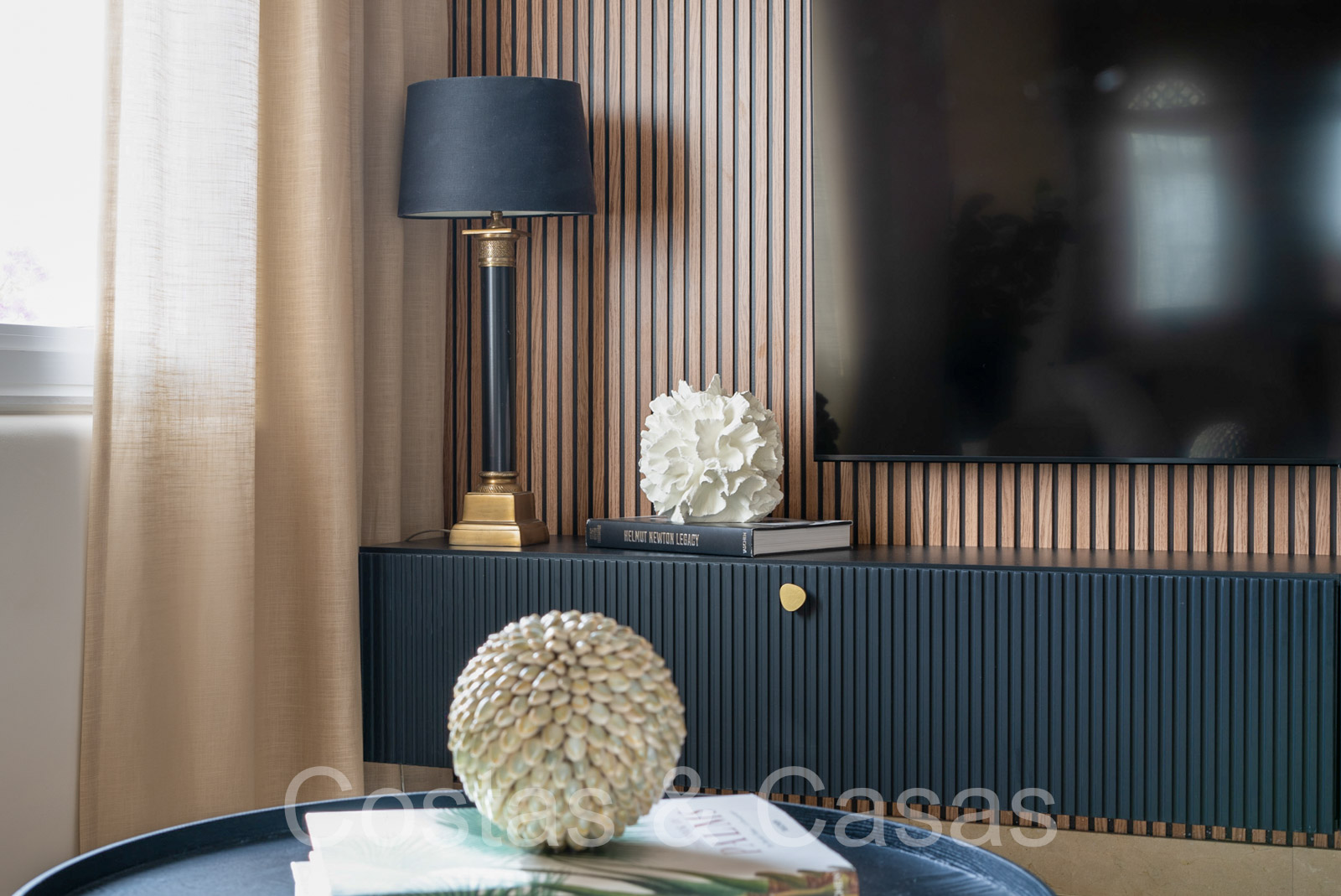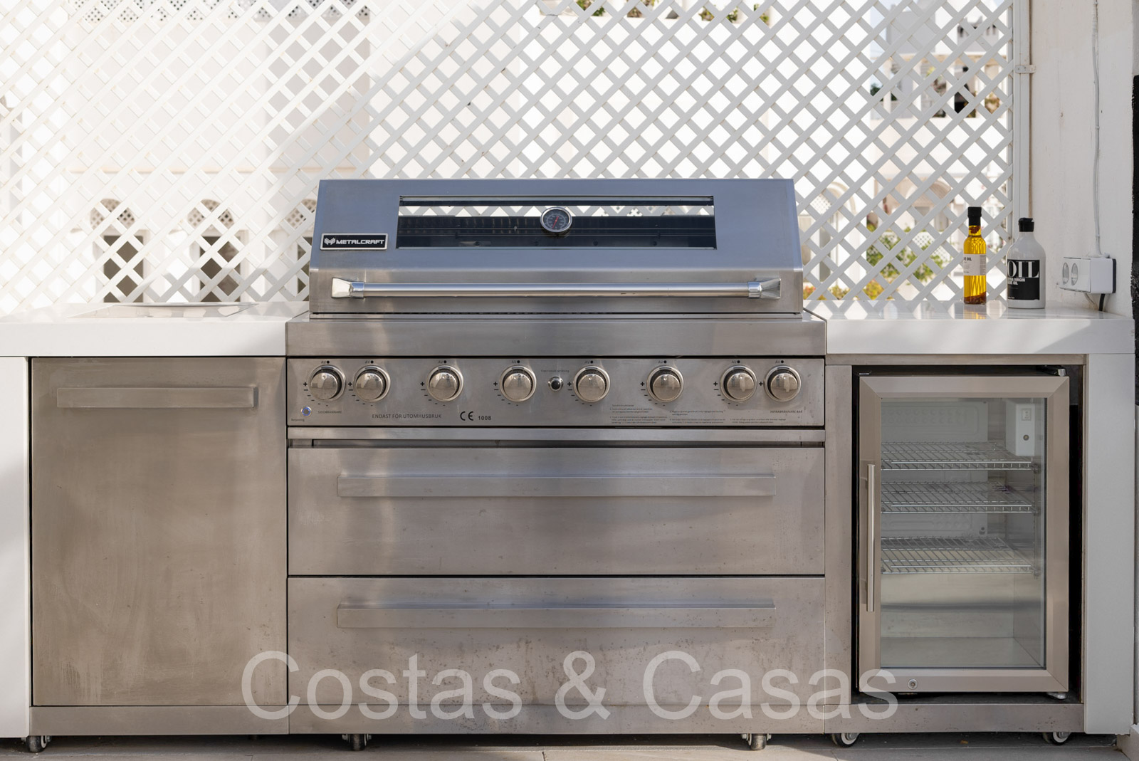 Appartement construit selon des normes élevées. Intérieur confortable avec un agencement ouvert. Orientions sud-ouest. Vue imprenable sur la côte et la mer Méditerranée jusqu'à l'Afrique. Solarium extraordinaire avec espace barbecue et piscine privée. Cuisine entièrement équipée, avec un ascenseur de cuisine. Spacieuse salle de séjour avec salon de télévision, 2ième salon avec cheminée à bois et salle à manger. 2 chambres avec salle de bains au niveau principal, la suite principale à l'étage supérieur. Sols en marbre beige de qualité. Garage spacieux avec parking sécurisé inclus.