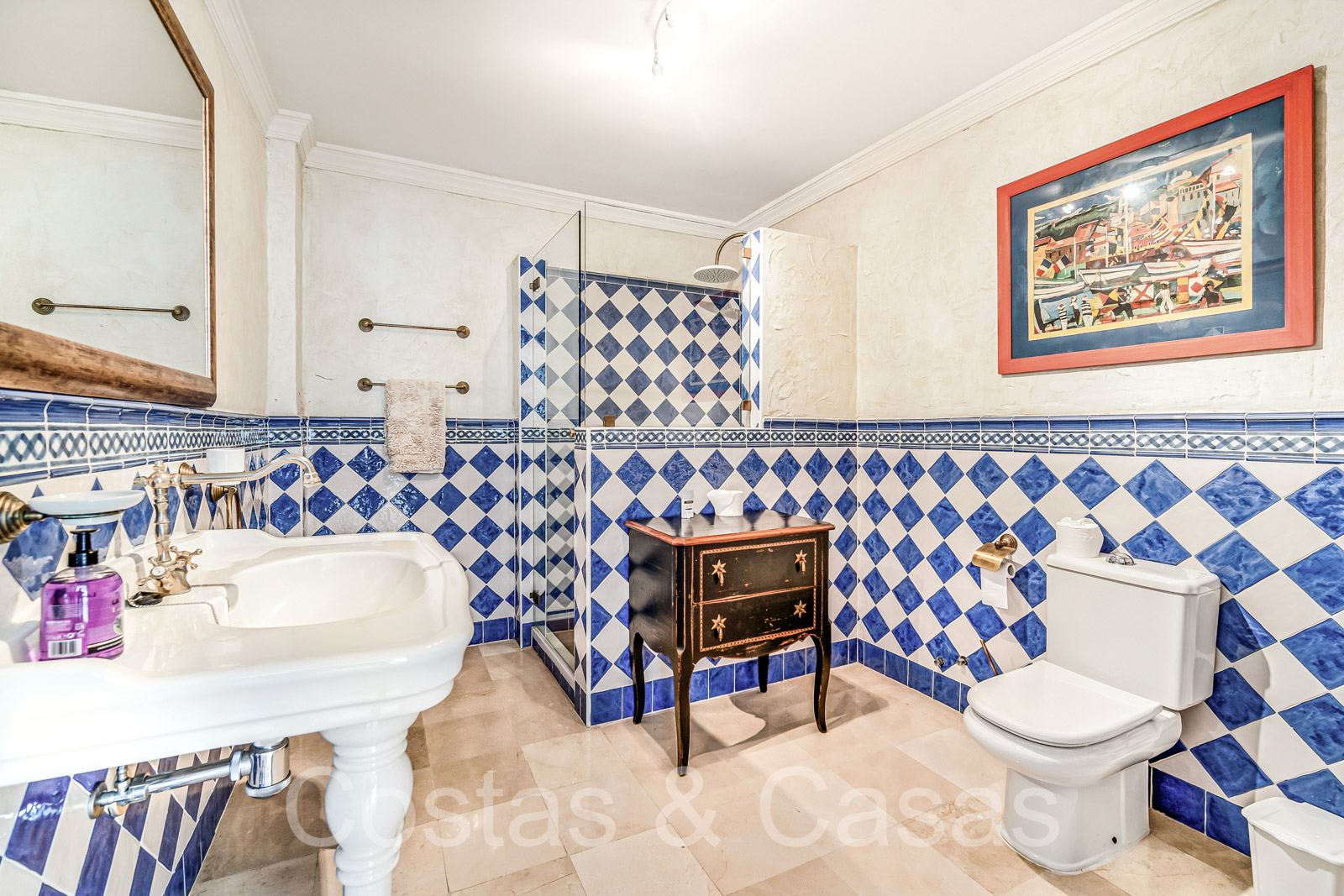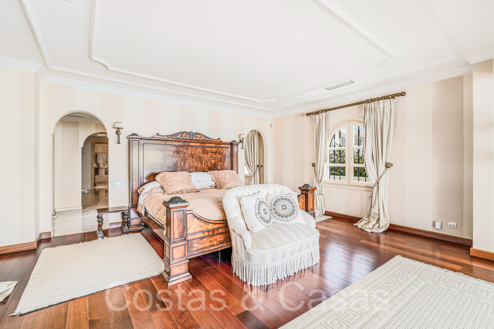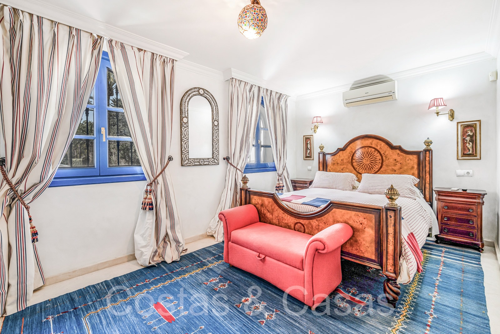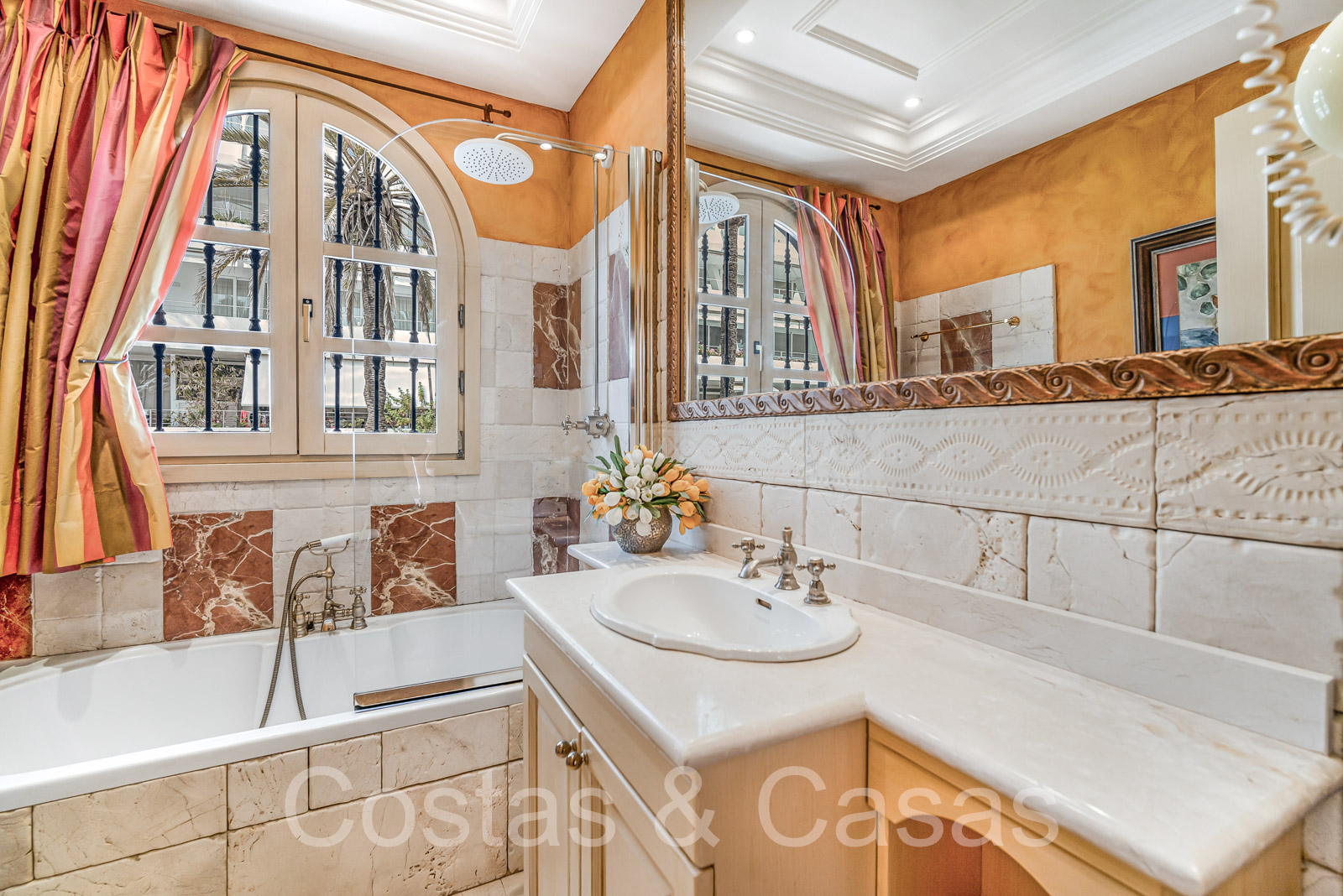 Villa mitoyenne de style andalou traditionnel. Décoration de caractère. Séjour spacieux avec salon TV et coin repas intégré. Cuisine séparée, entièrement équipée d'appareils Miele et avec un îlot central. 2ème chill-out avec cheminée. 6 chambres et 6 salles de bains. Chambre principale avec dressing et salle de bain en suite avec vue mer imprenable. Logement du personnel intérieur. Garage double. Il y a la possibilité de transformer la villa en maison contemporaine.