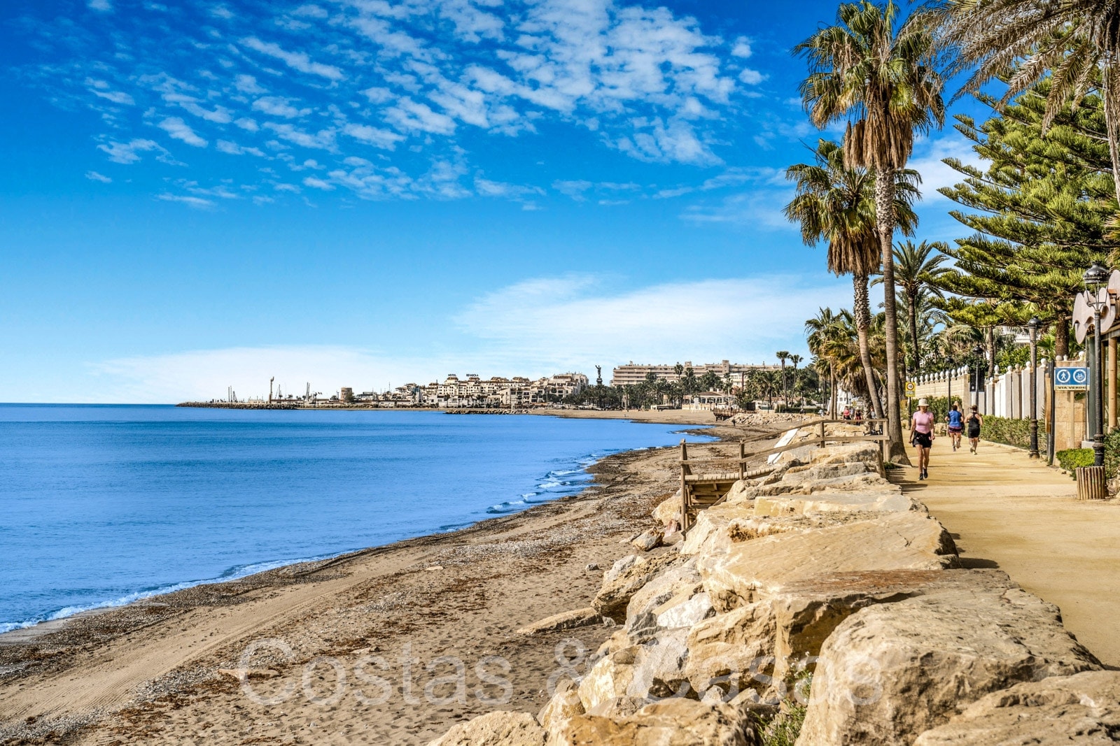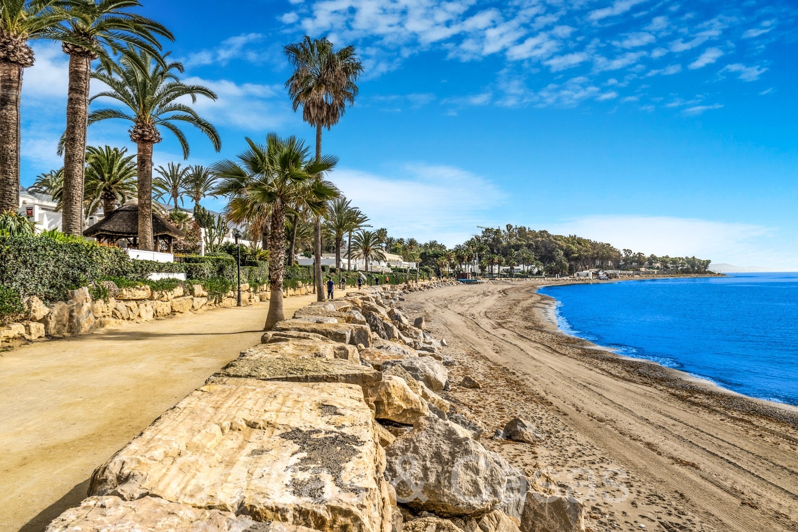 Emplacement imbattable directement sur la plage du prestigieux et populaire Golden Mile de Marbella. À distance de marche et avec accès direct à la plage du Golden Mile et à sa promenade. À quelques pas des clubs de plage haut de gamme, des commodités dont un supermarché, des restaurants et des complexes hôteliers 5 étoiles Puente Romano et Marbella Club. À distance de marche de Puerto Banus avec ses nombreuses boutiques et sa marina élégante. A 7 minutes en voiture du centre de Marbella, à 5 minutes en voiture de la vallée du golf.